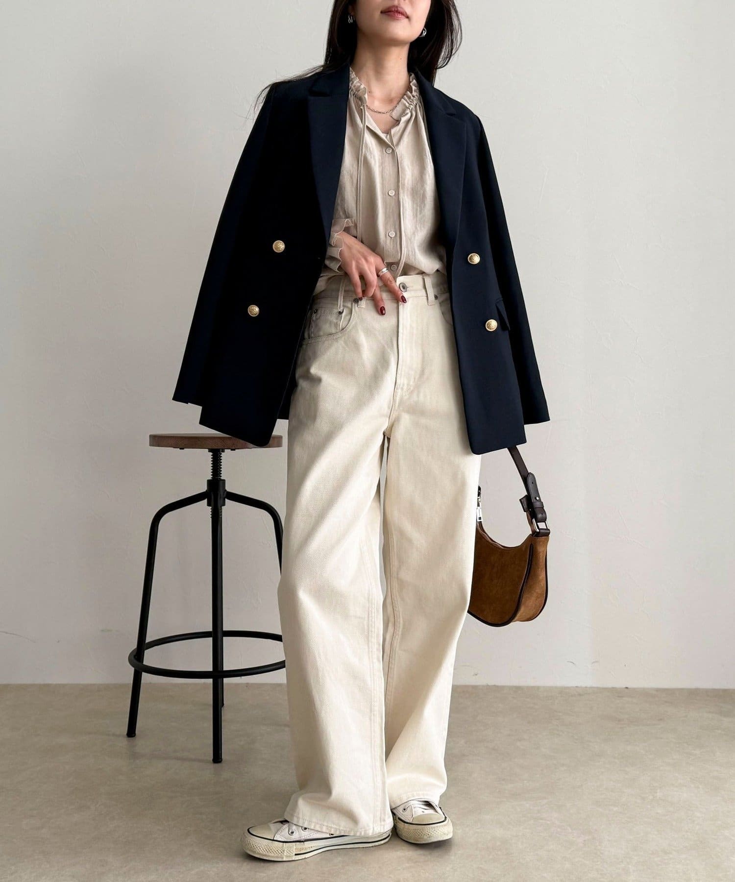 デニムでカジュアルにも、きれいめボトムでお仕事寄りにも着回せそうです◎