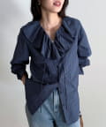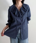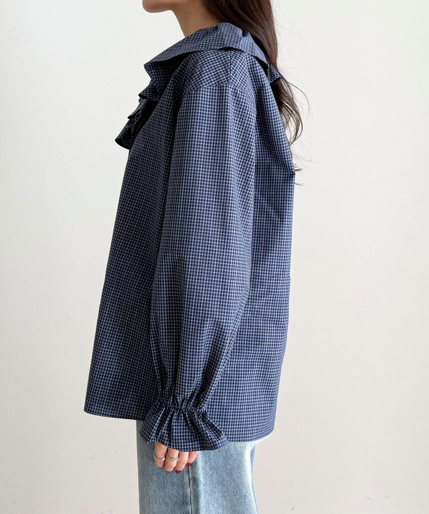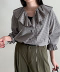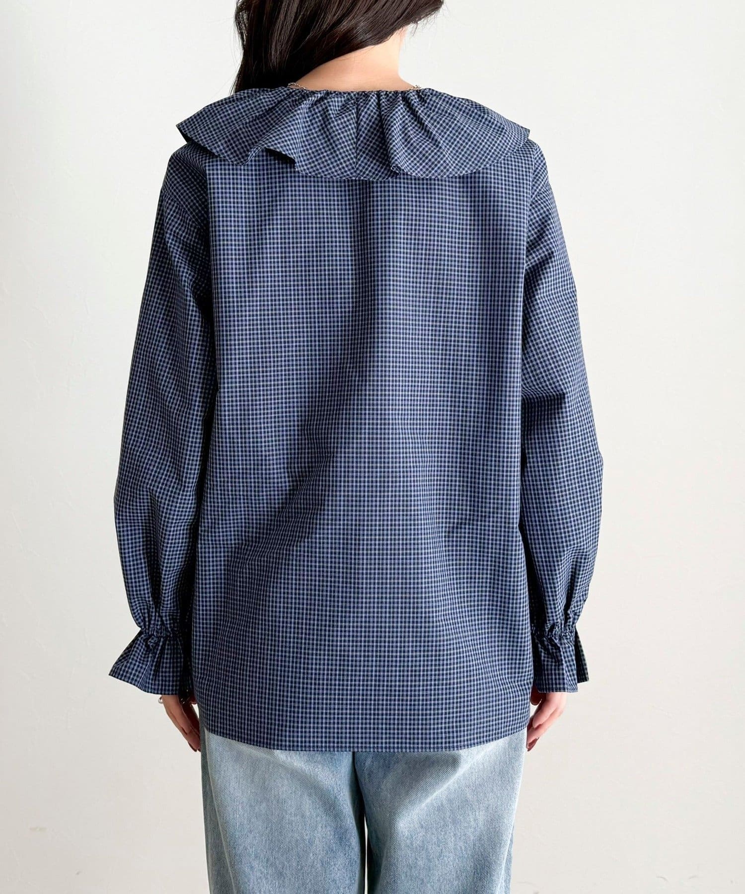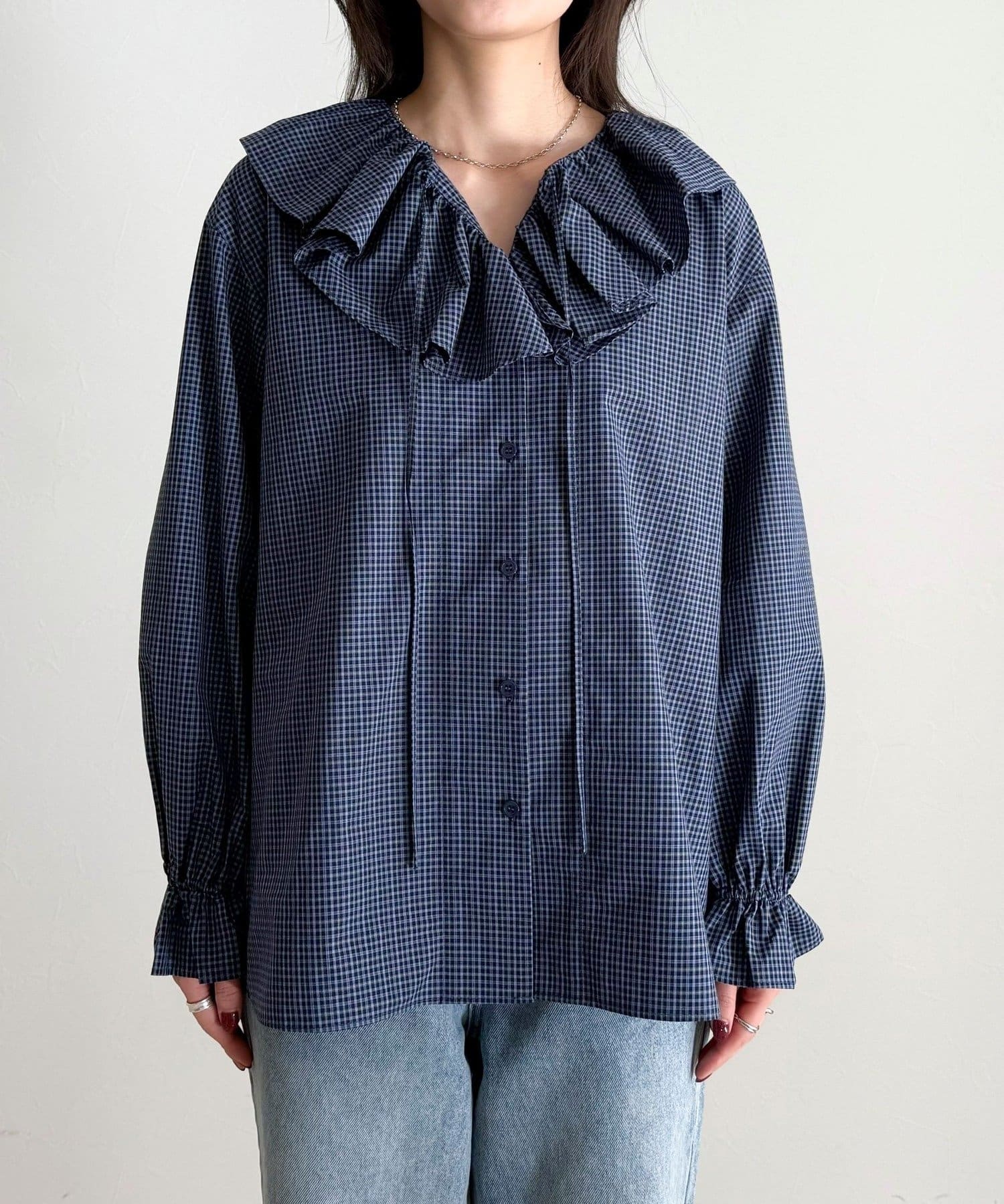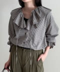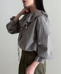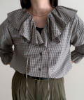 チェックフリルカラーブラウス
