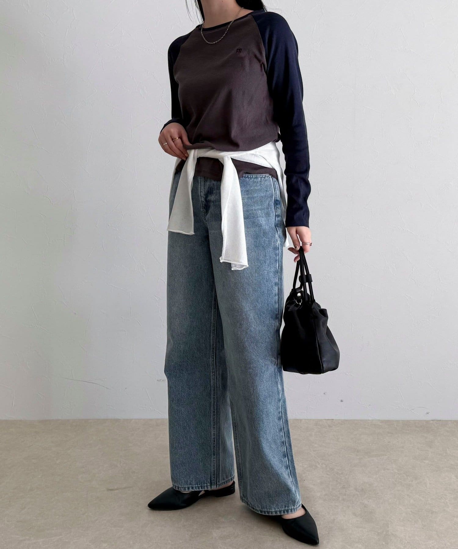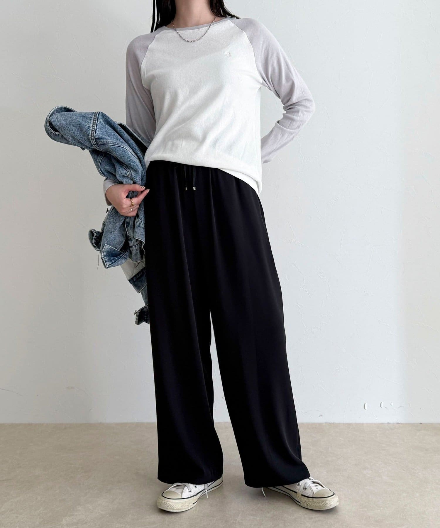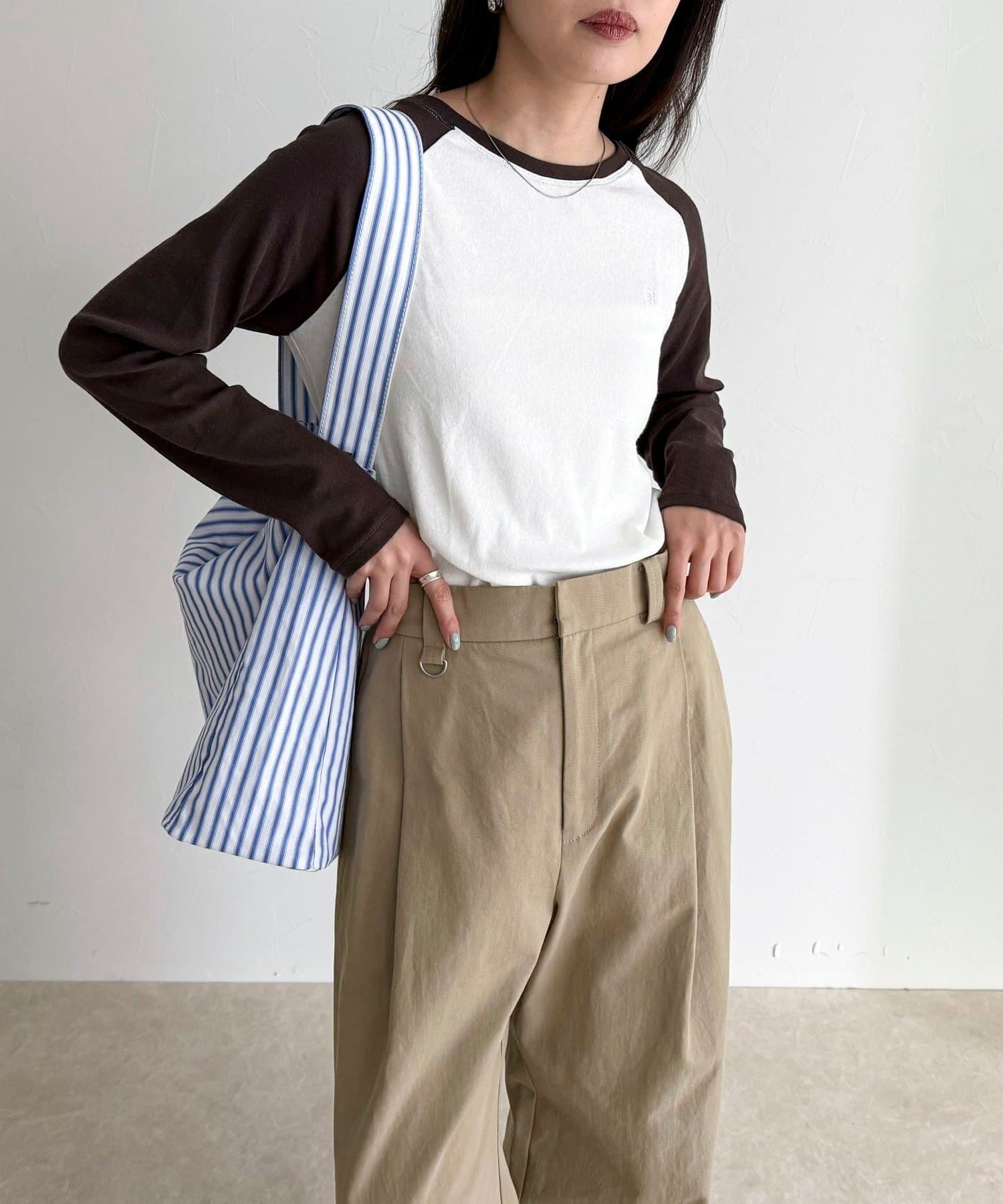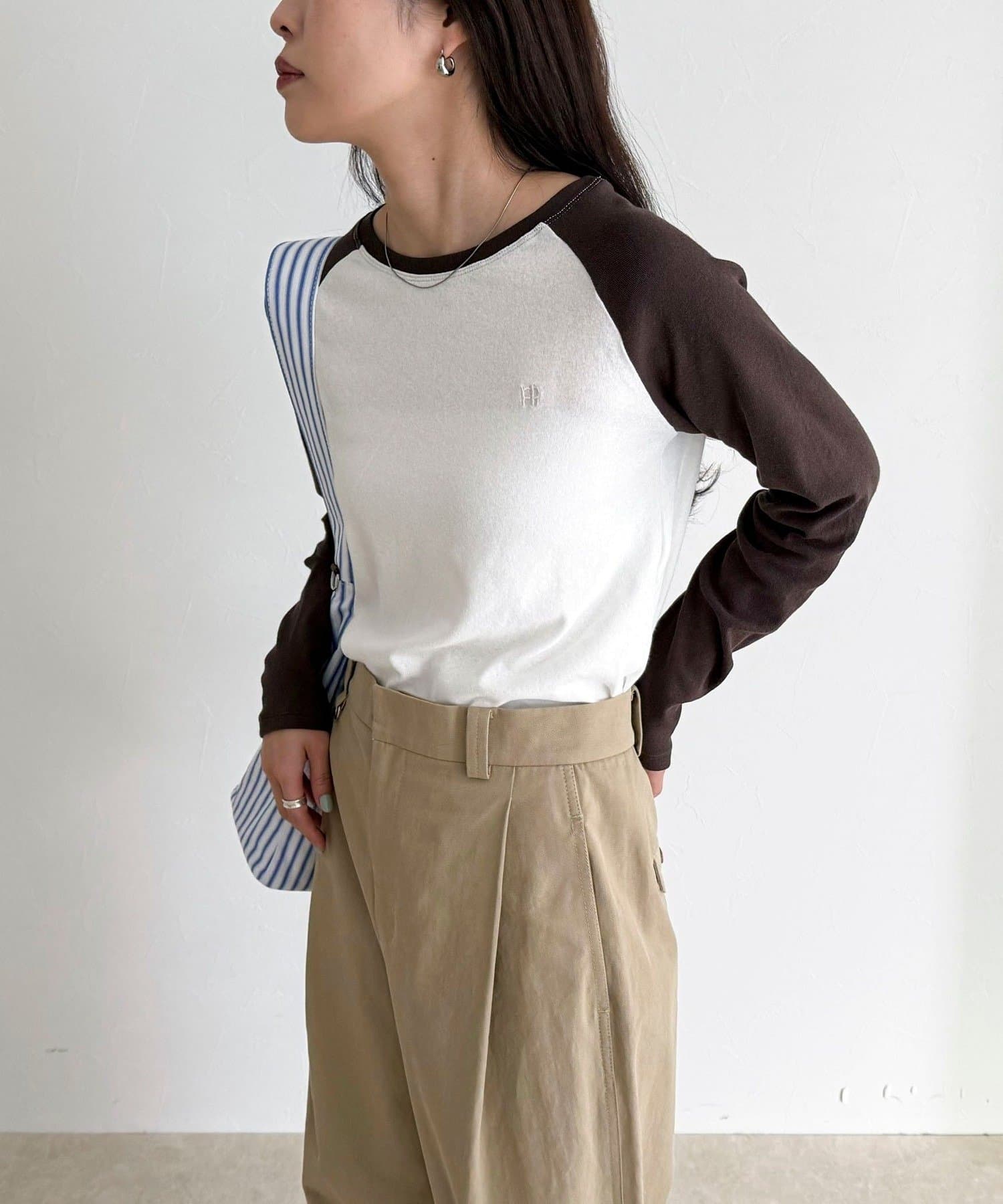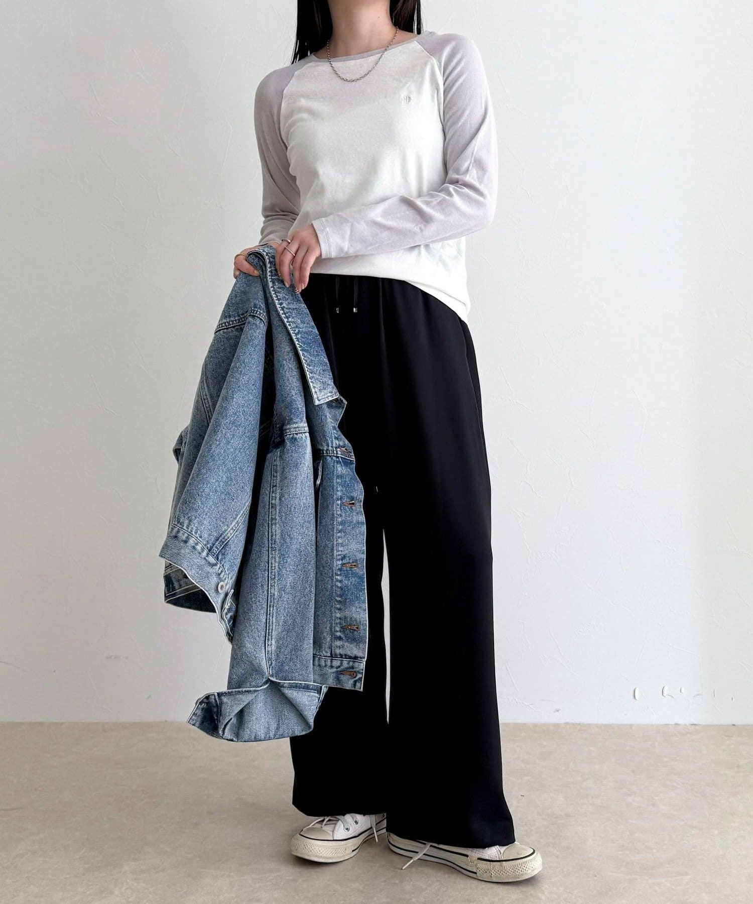 ・メンズライクなラグランロンTはシアー素材とタイトなサイジングで女性らしく