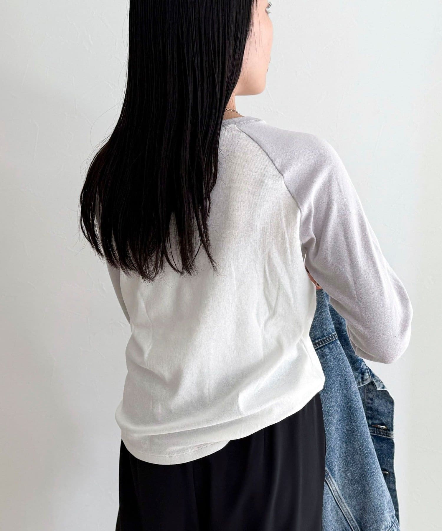 ・ほんのり透け感のあるシアー素材が、軽やかな印象を与えるラグランロンT