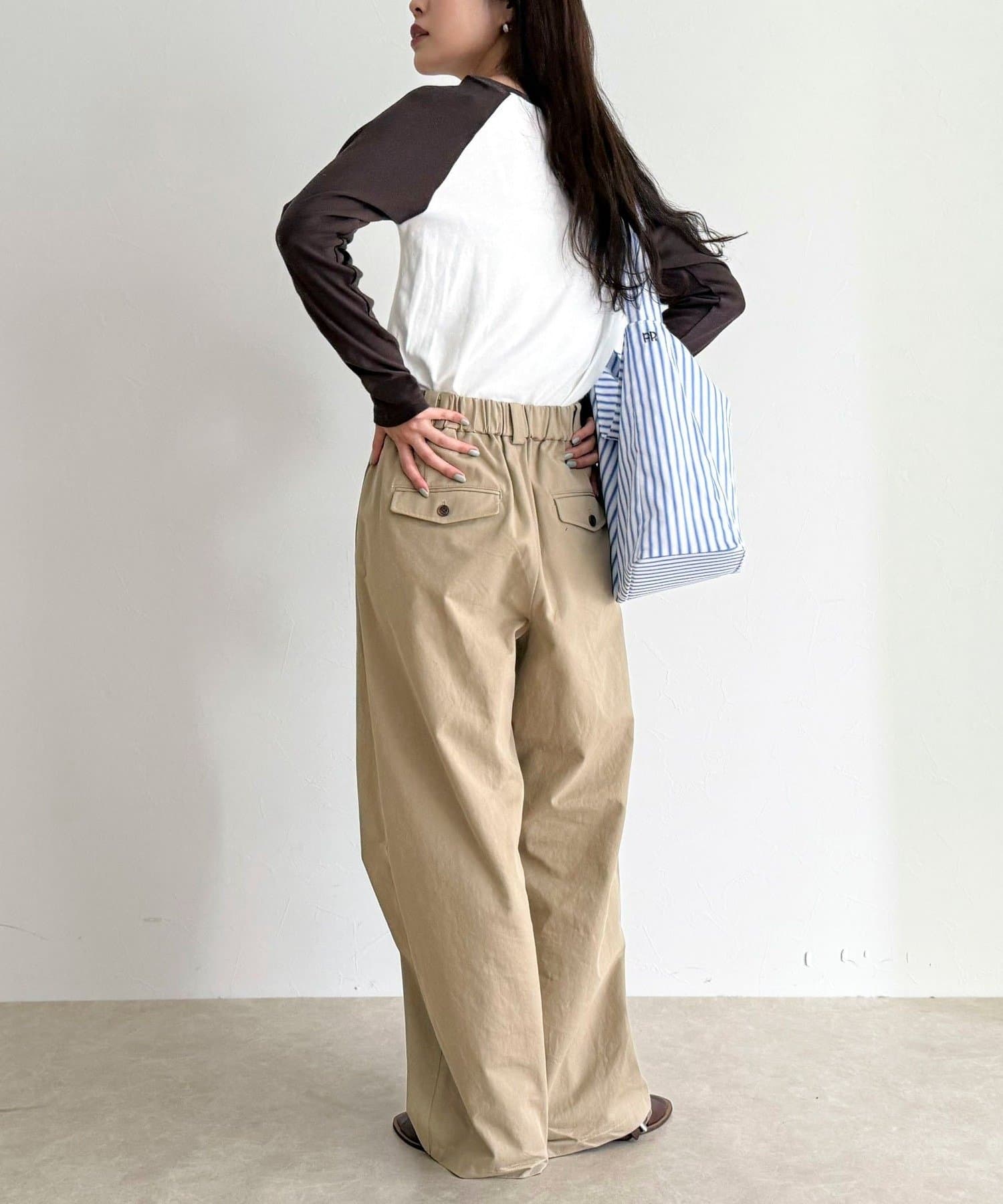 *この製品は、生地の特性上引っかかると糸が飛び出しやすい傾向があります。着用時にはベルトやバック、周囲の壁など表面の粗いものとの摩擦や引っかかりにご注意ください。