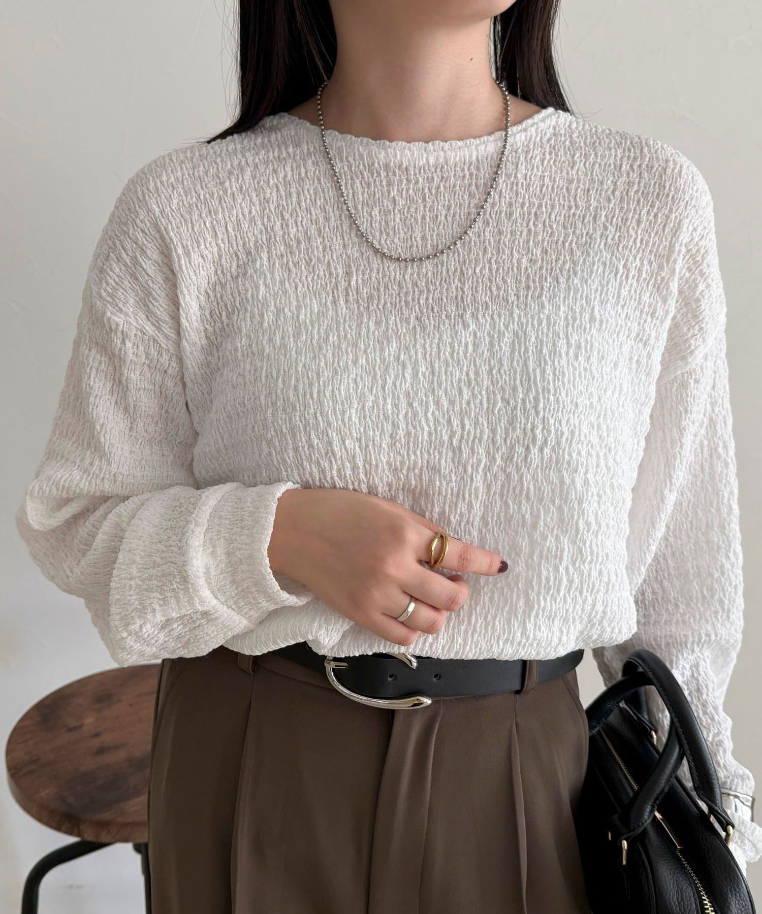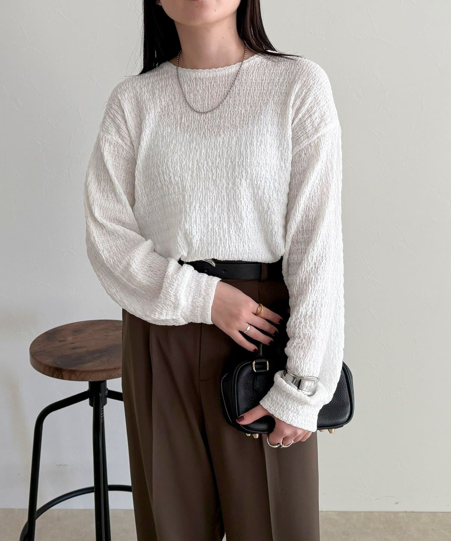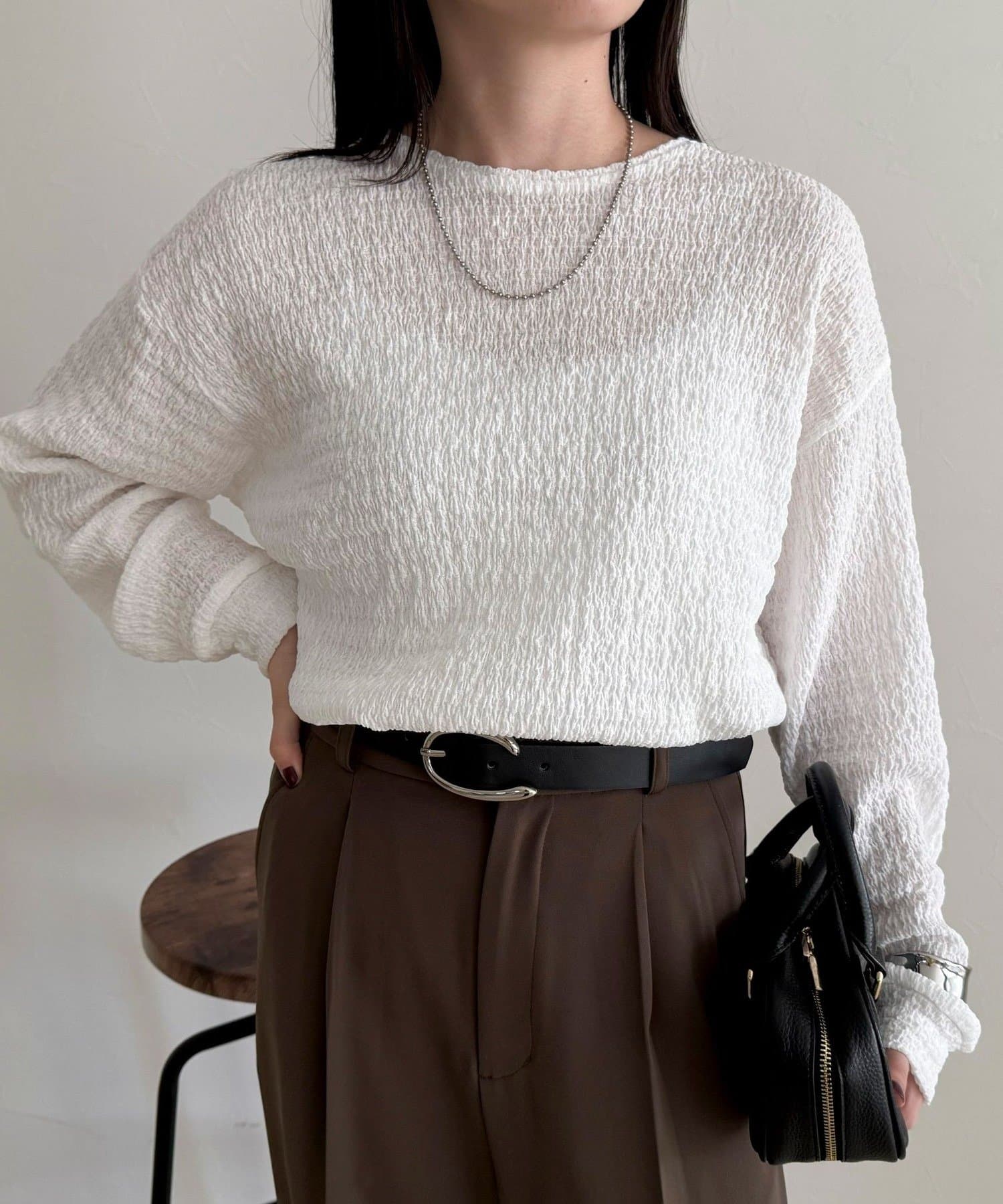 ・スラックスやタイトスカートなどのきれいめアイテムとも好相性でオンオフ問わず幅広いスタイリングに活躍する一枚です