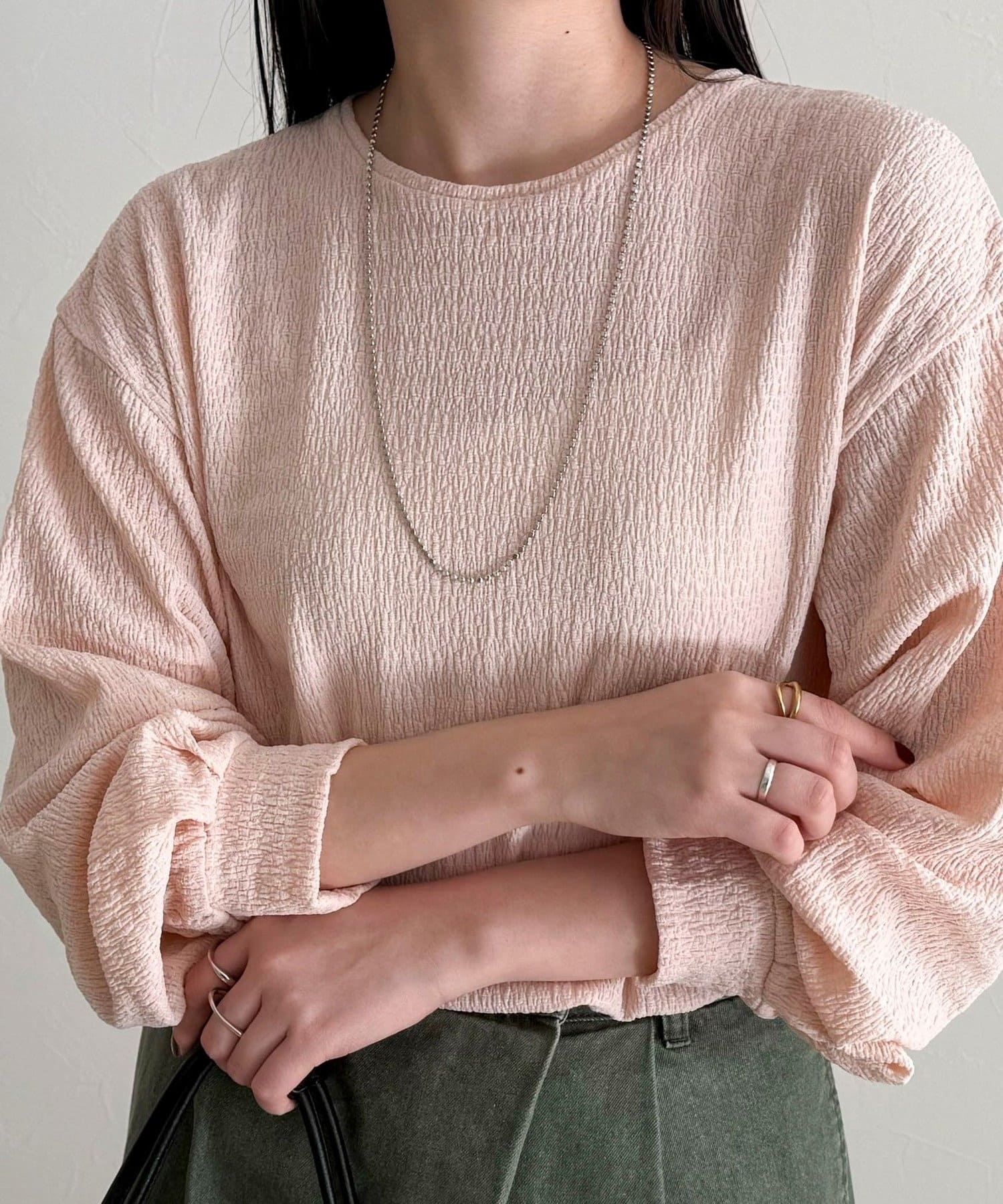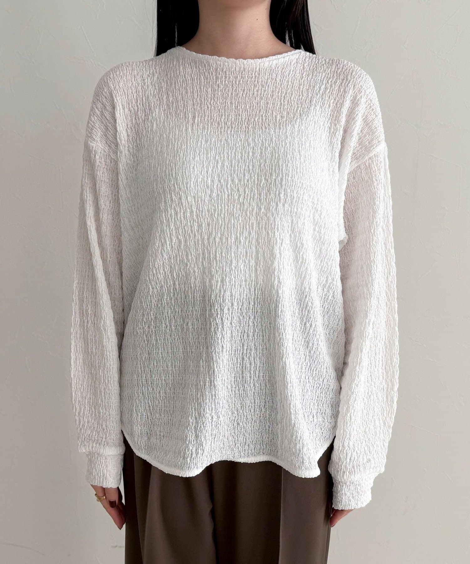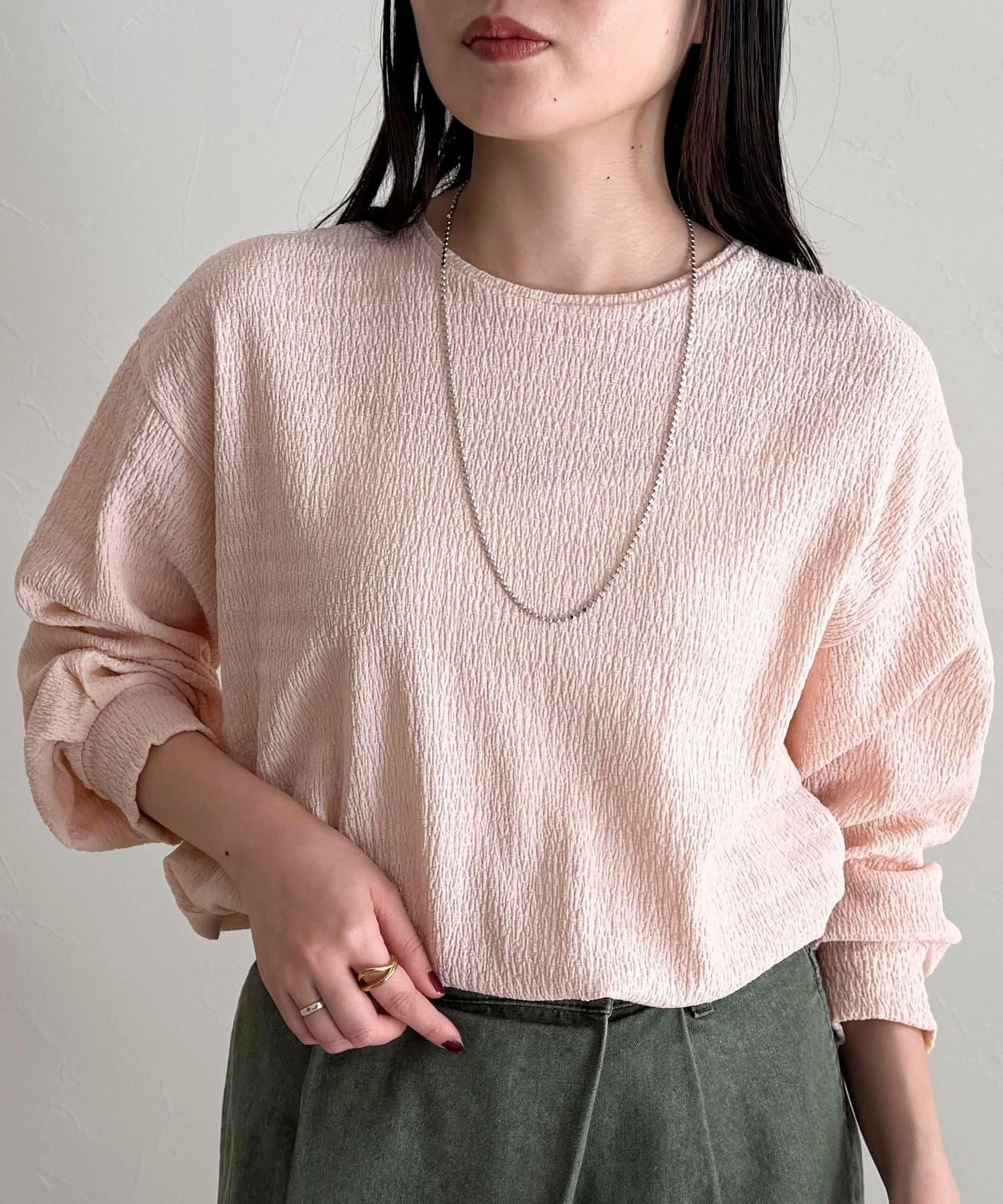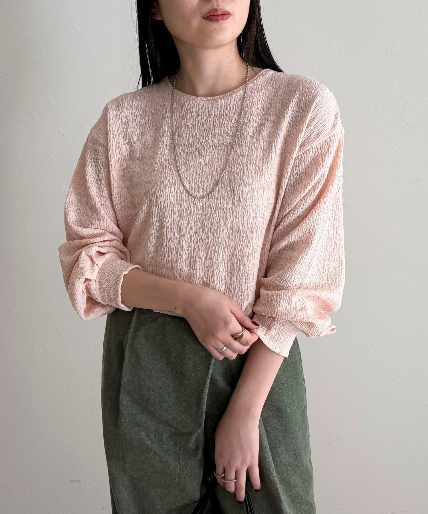 ・表面感のある生地を使用した、ブラウス見えが叶うカットソー