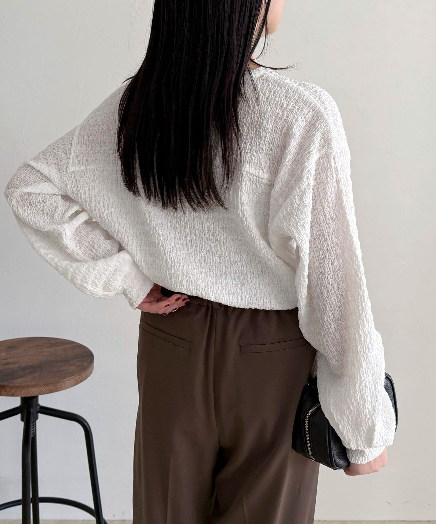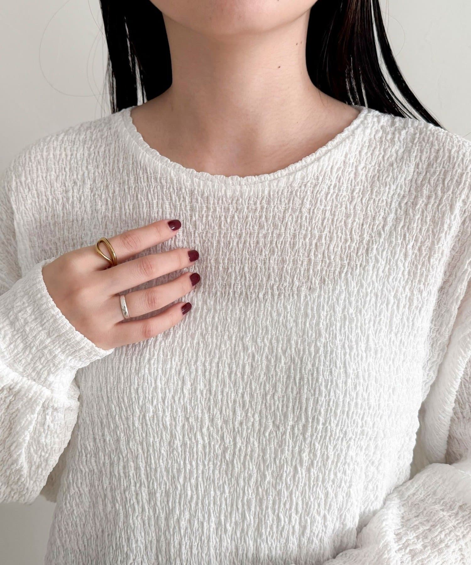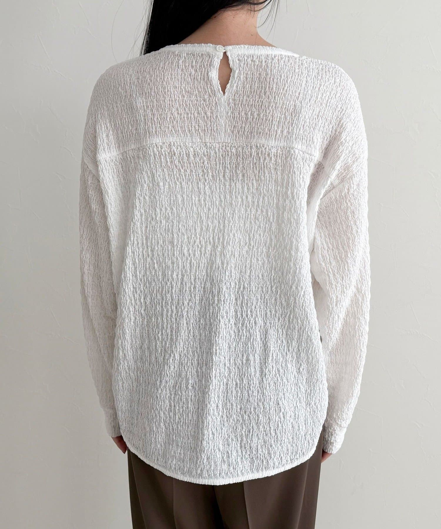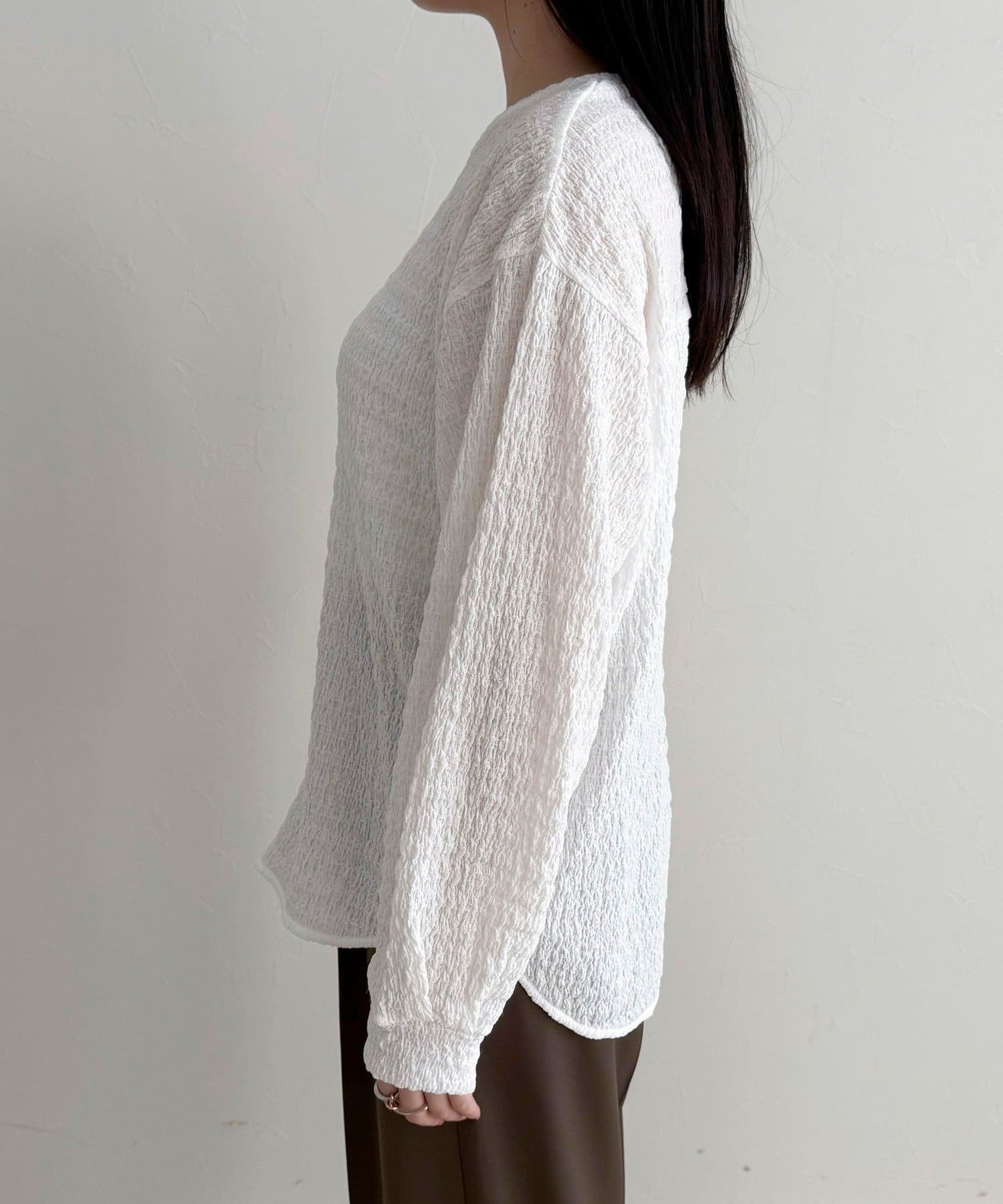 ・表面感のある生地を使用した、ブラウス見えが叶うカットソー