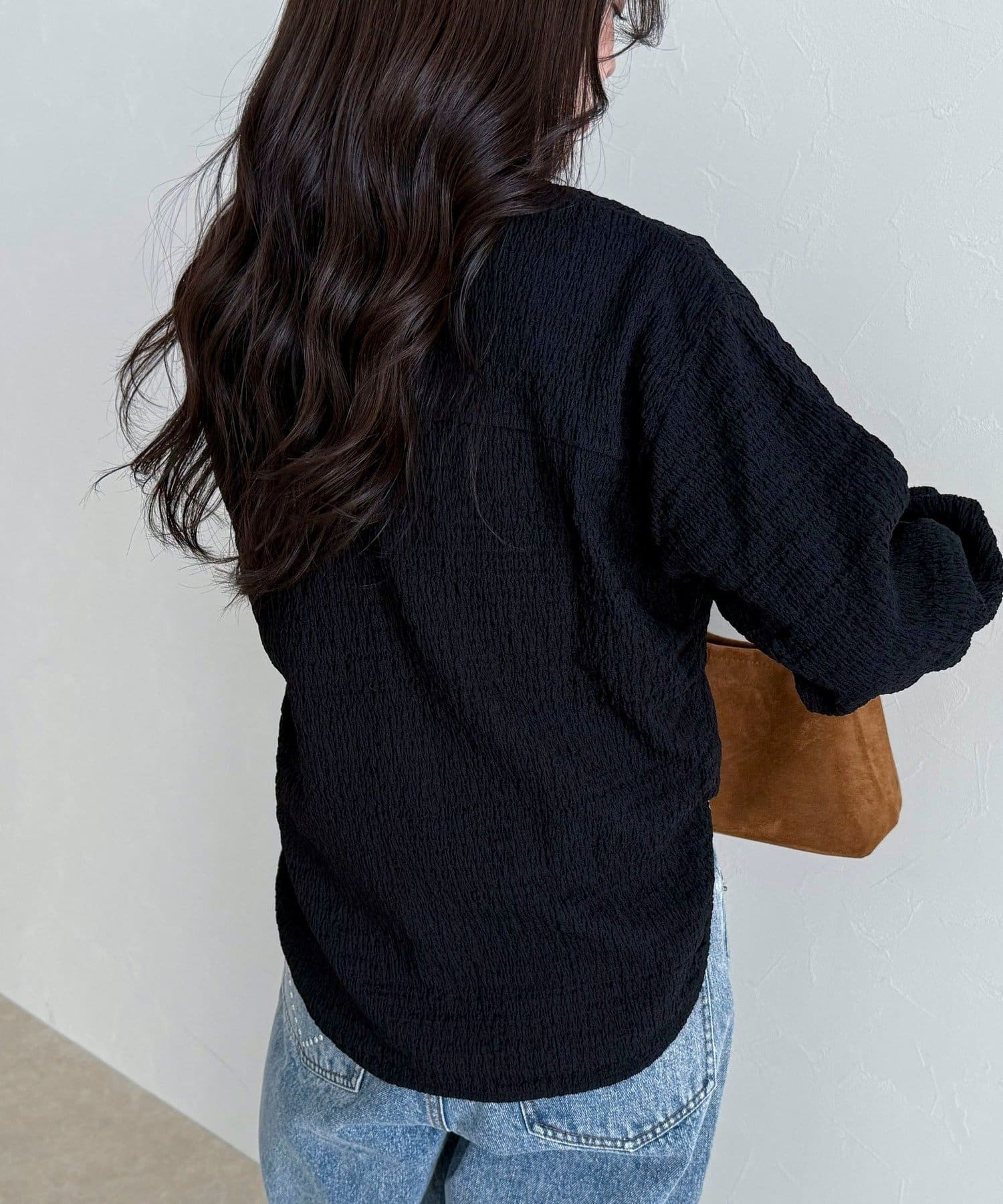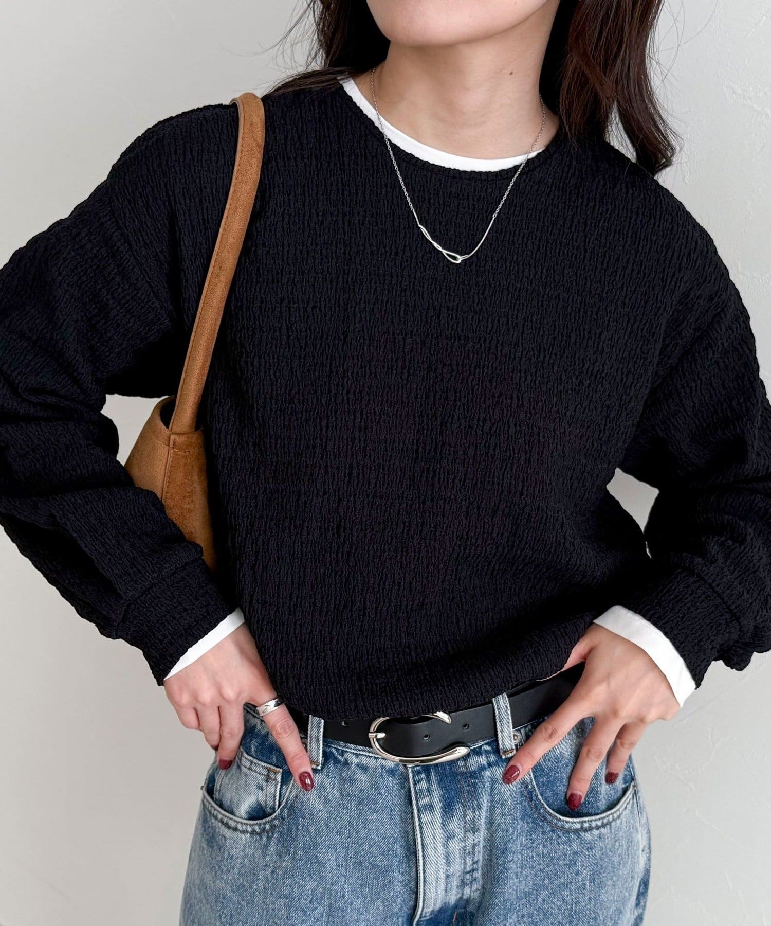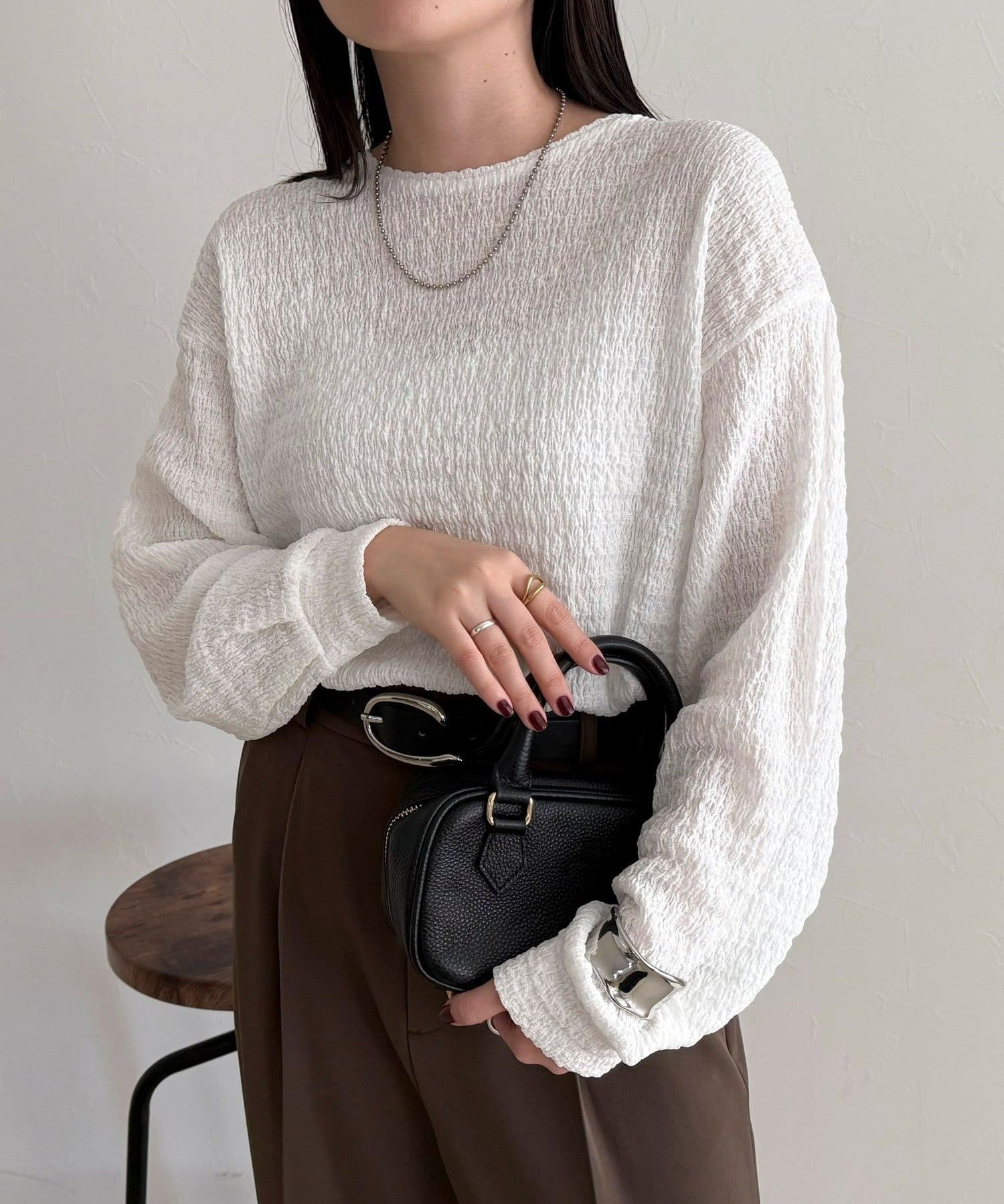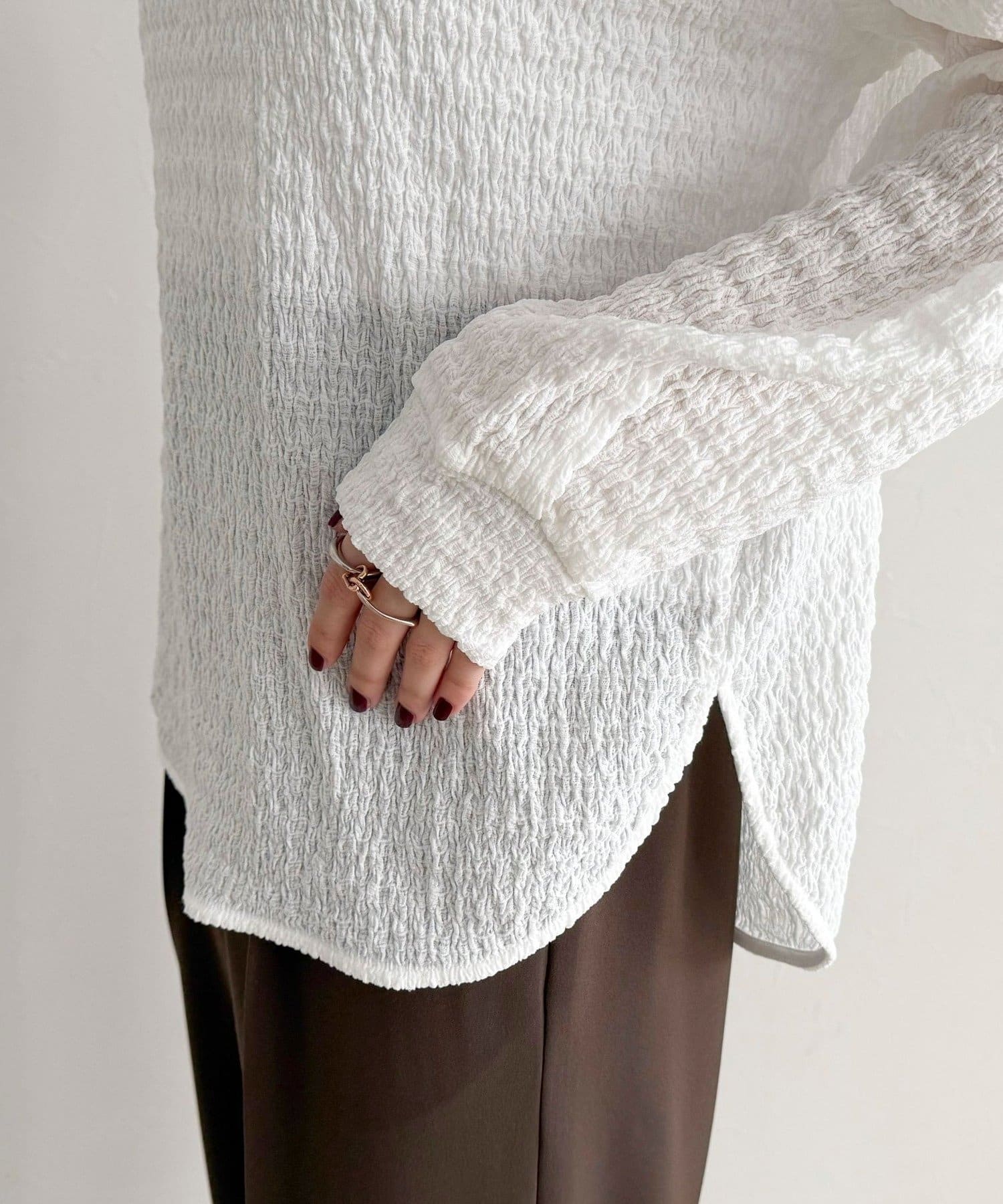 ・表面感のある生地を使用した、ブラウス見えが叶うカットソー