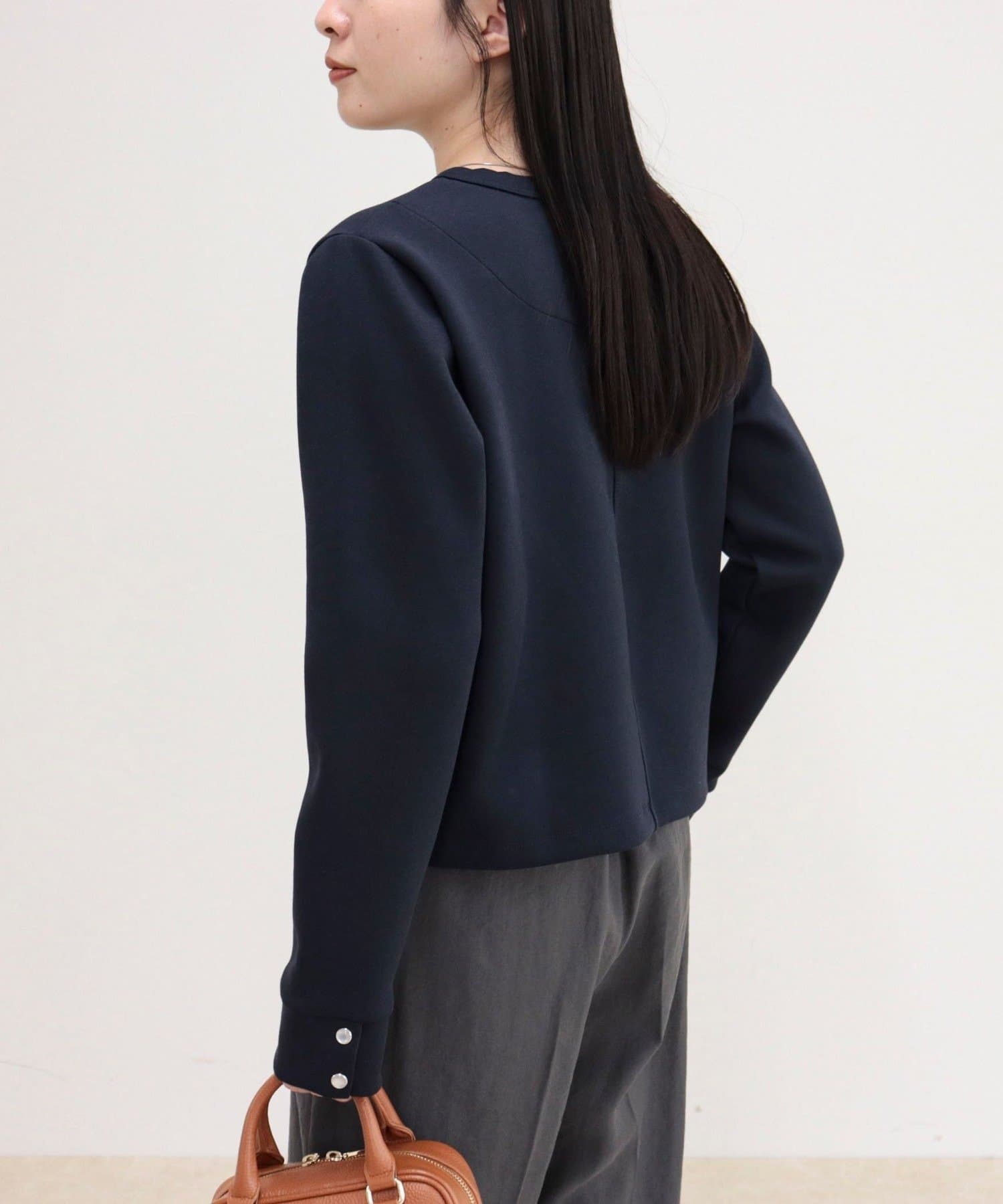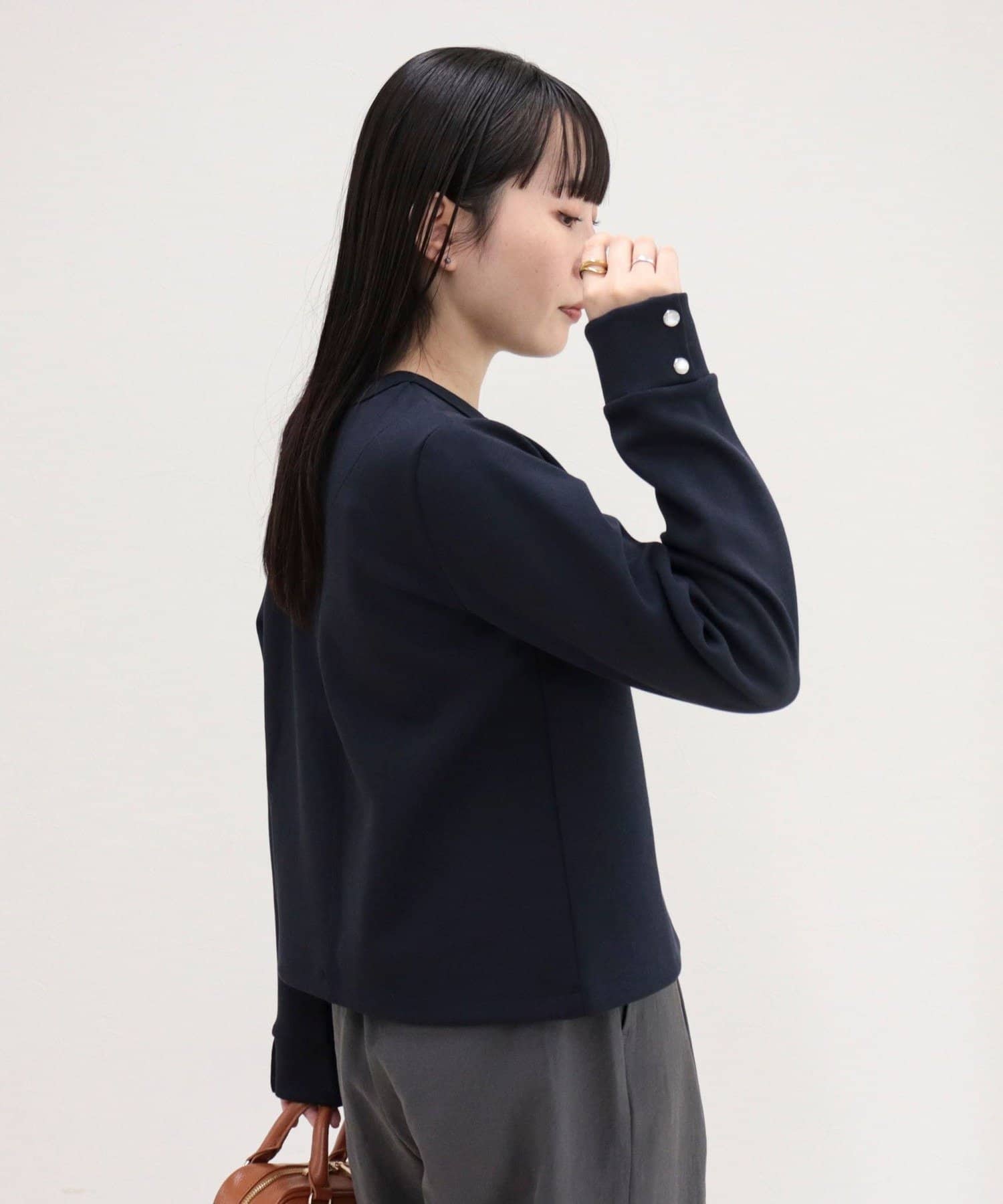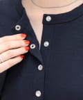 ・艶のあるドット釦がアクセントになり、シンプルなデザインにさりげない華やぎをプラス