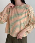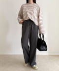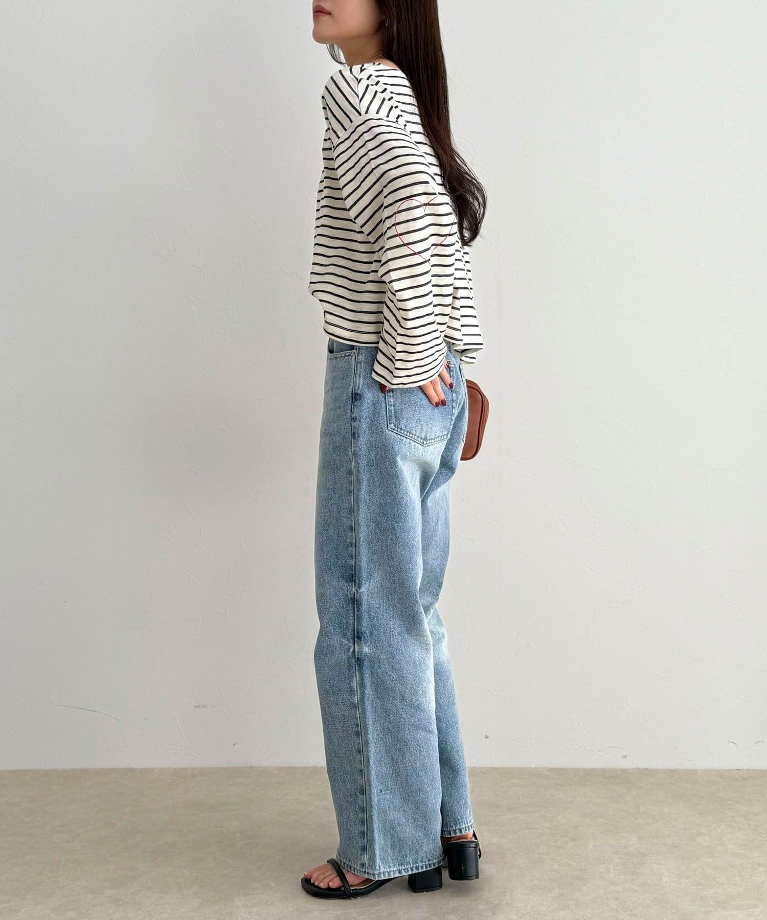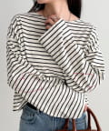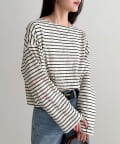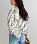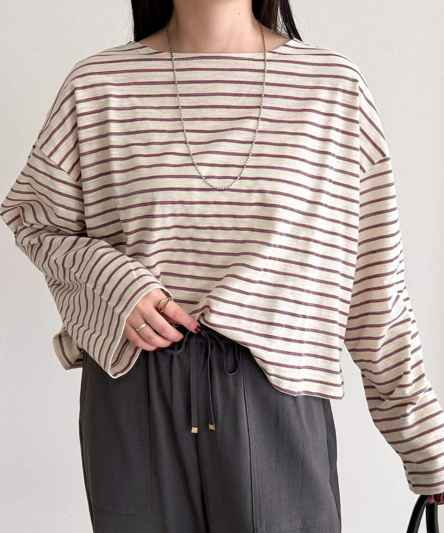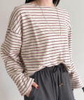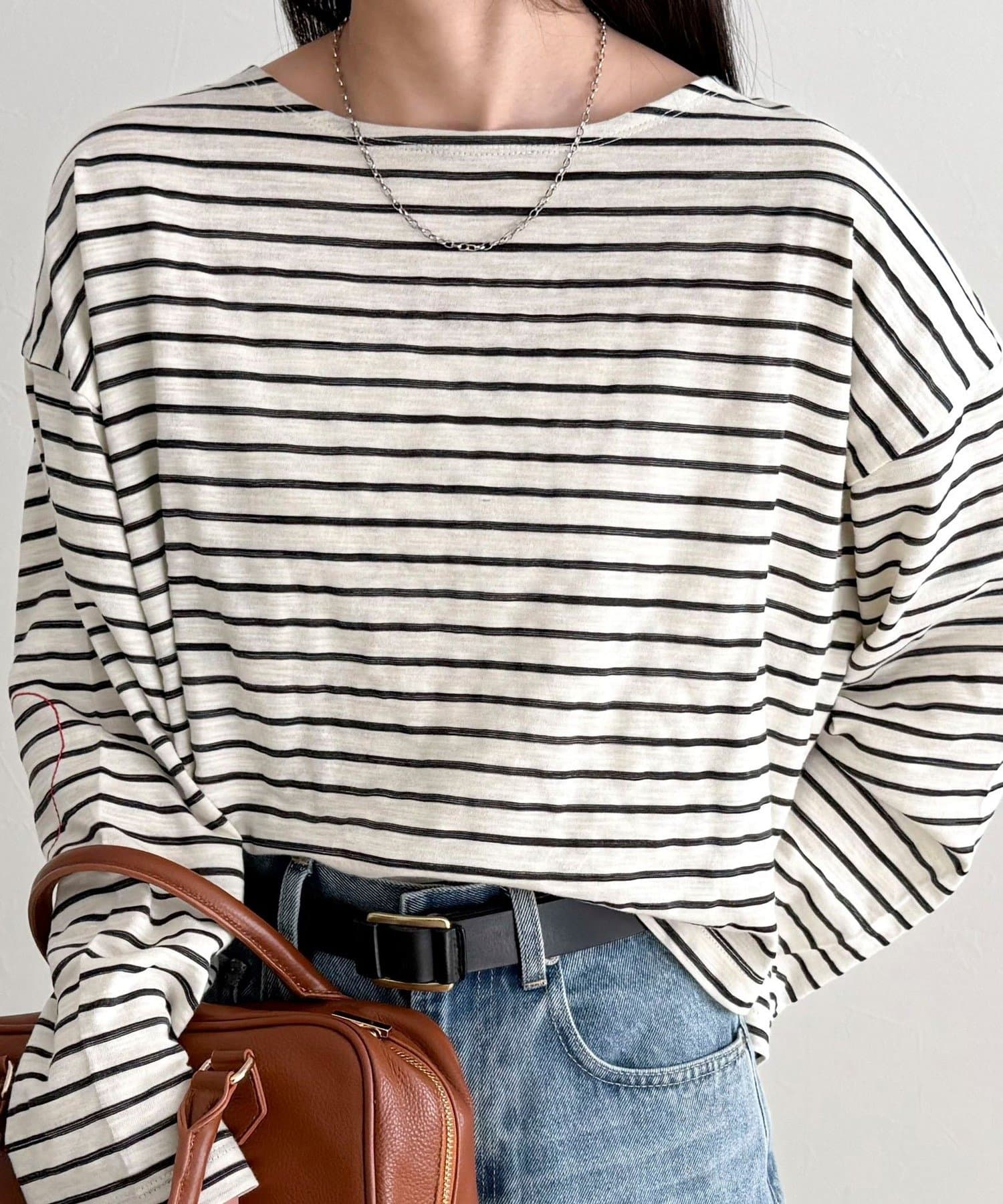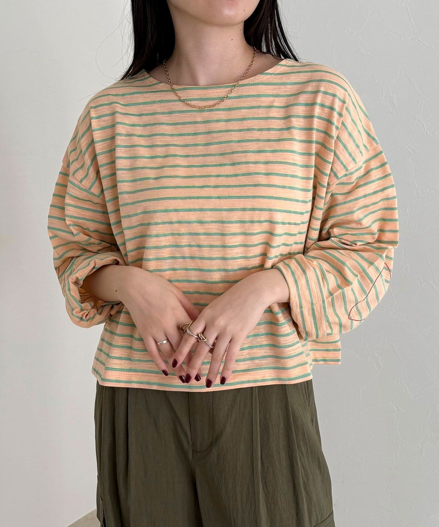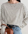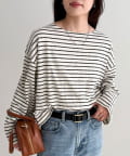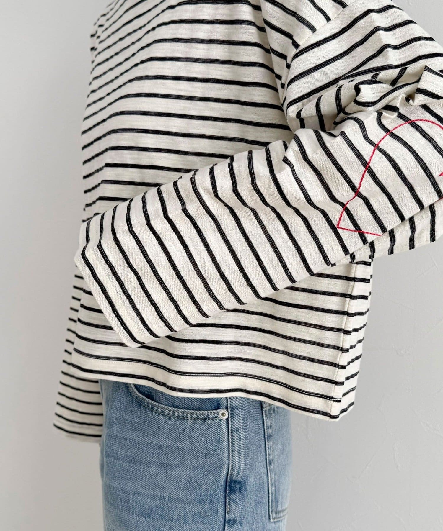 ・ボーダー柄にさりげなく効かせたハートステッチが大人の遊び心を添えるルーズロンT