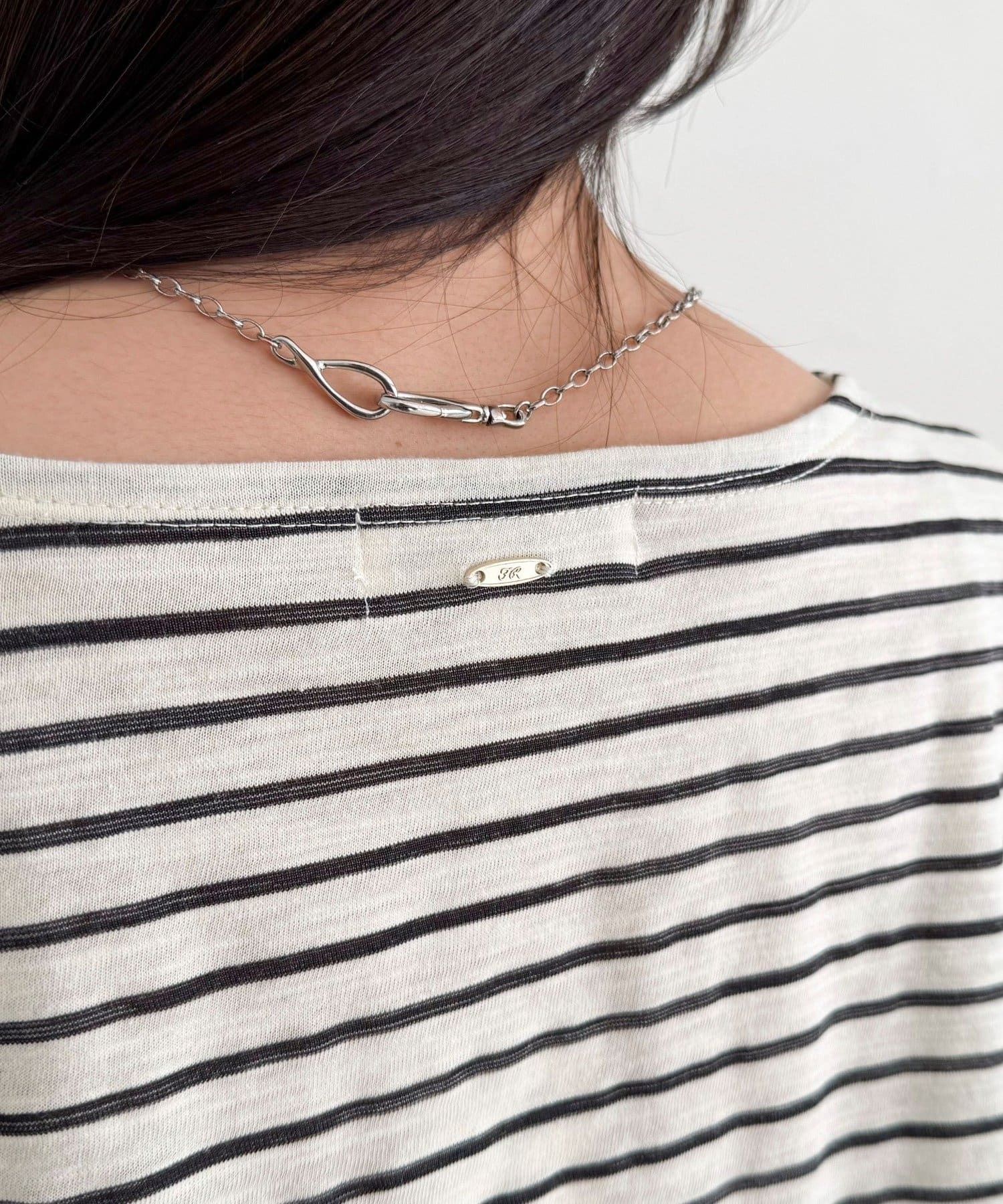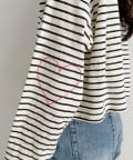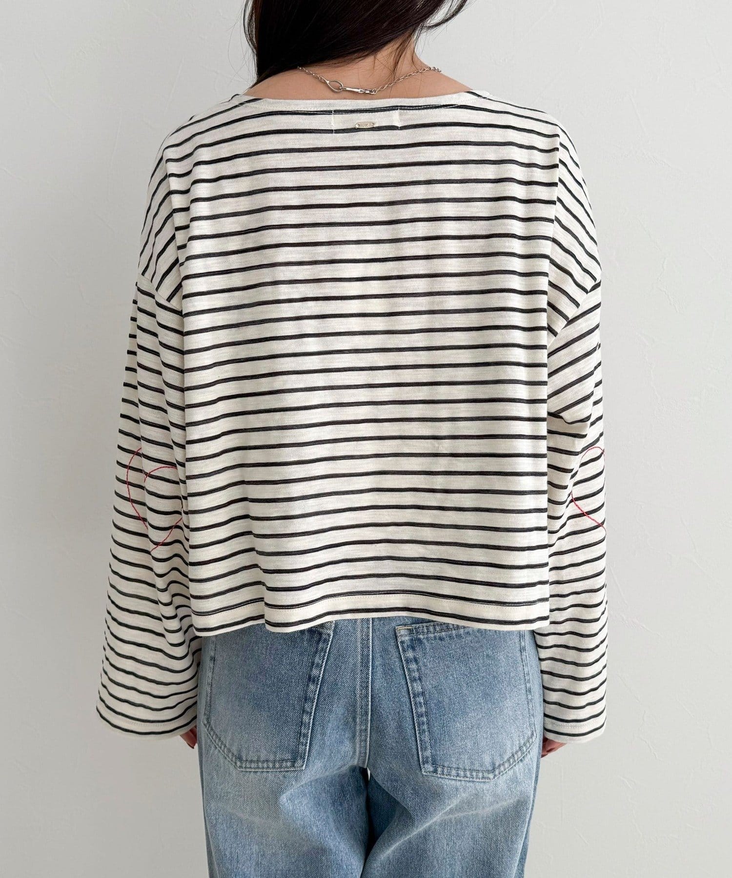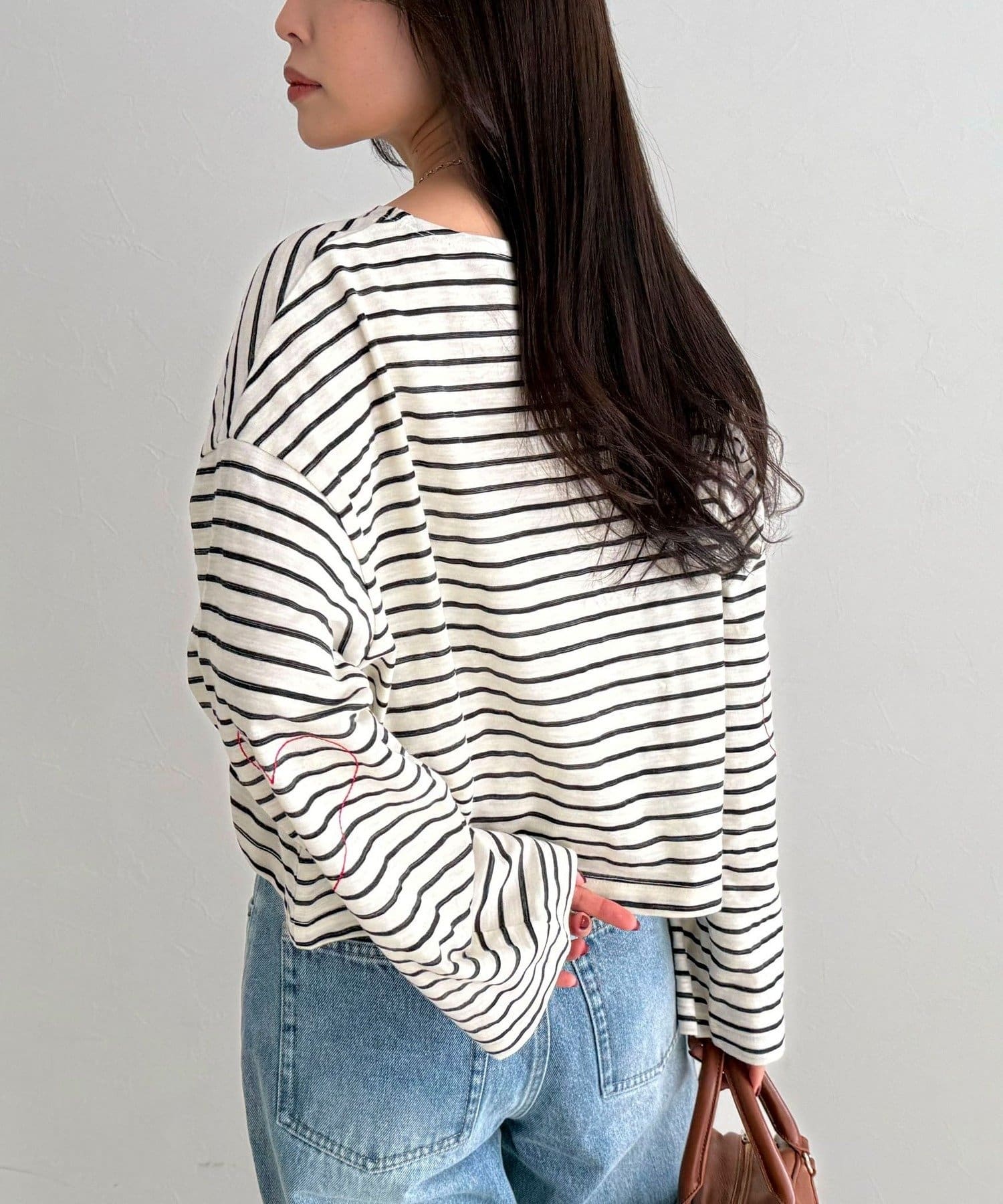 【人気商品の新型】ボーダーハートステッチルーズロンTシャツ