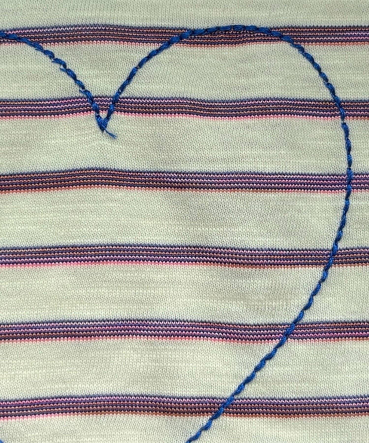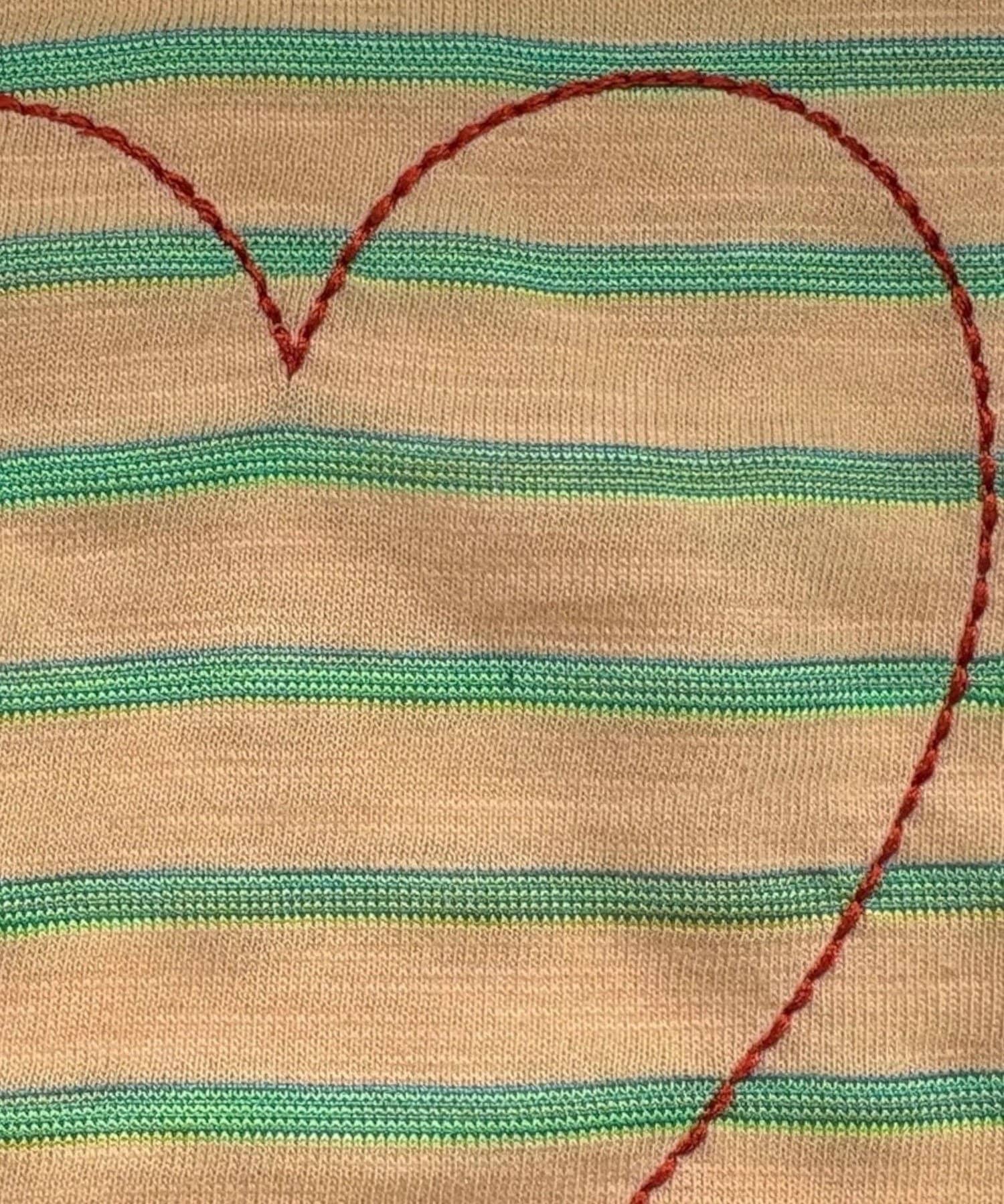 ・袖に入った配色ハートステッチがさりげないアクセントに