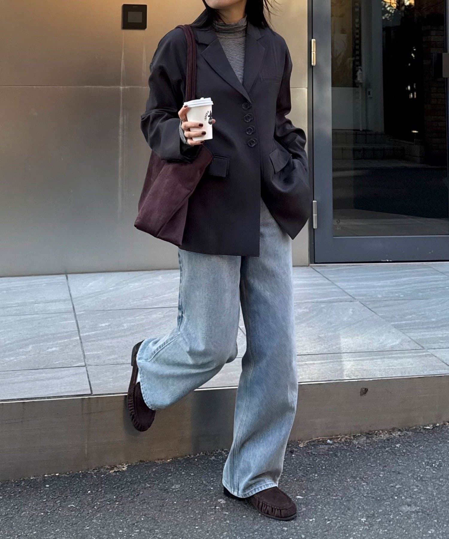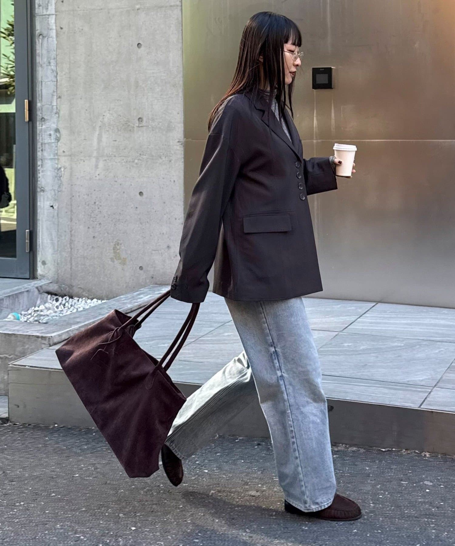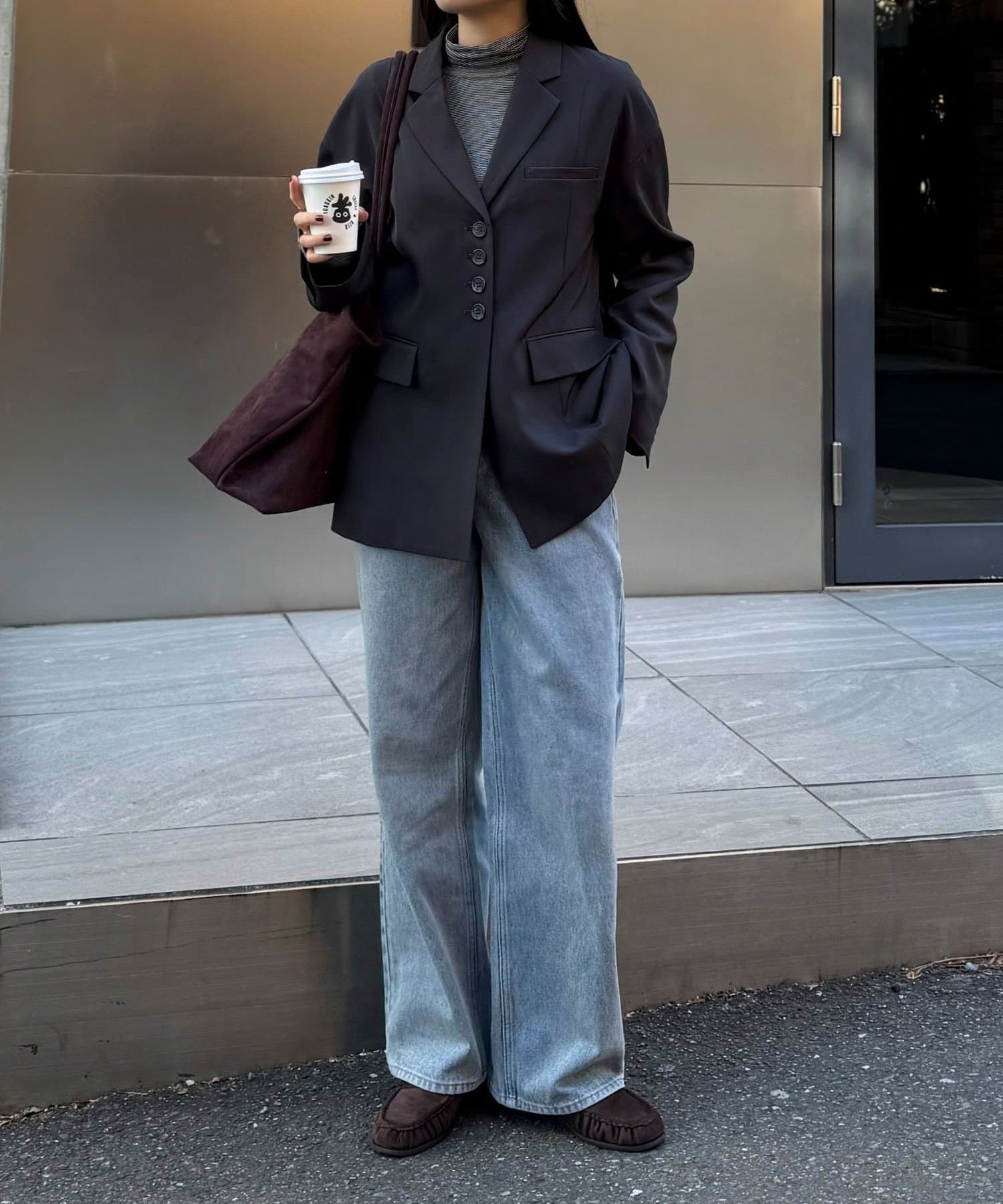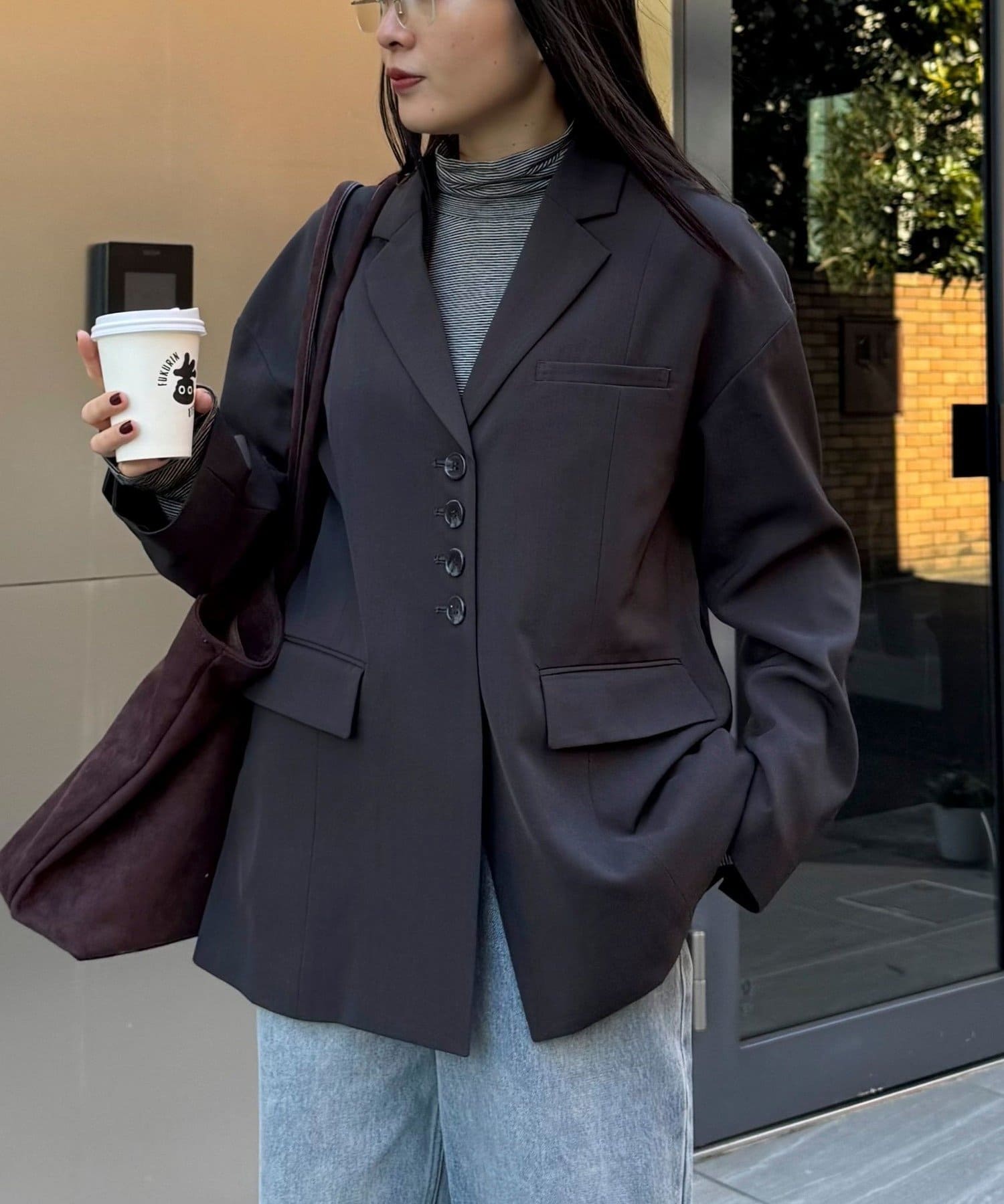 ・程よくゆとりのあるオーバーシルエットのシングルテーラードジャケット