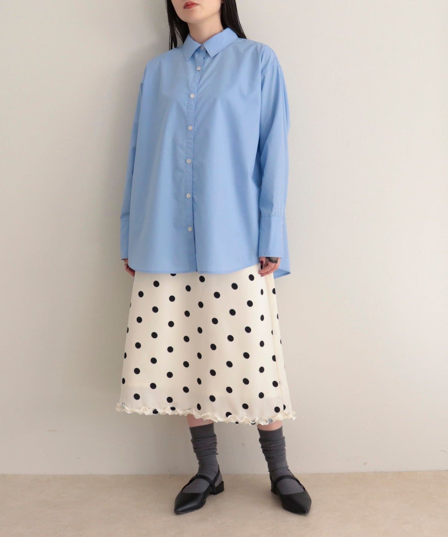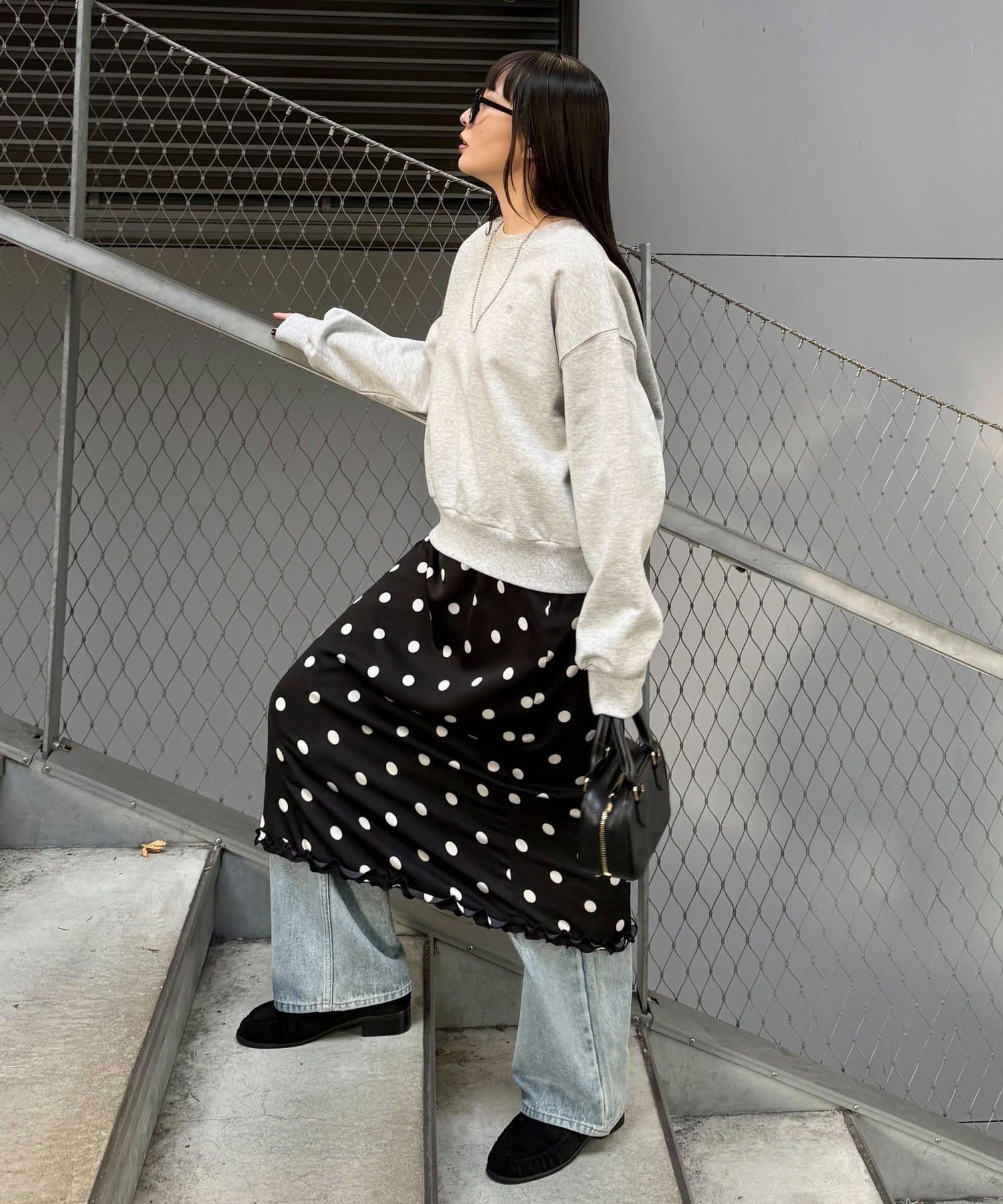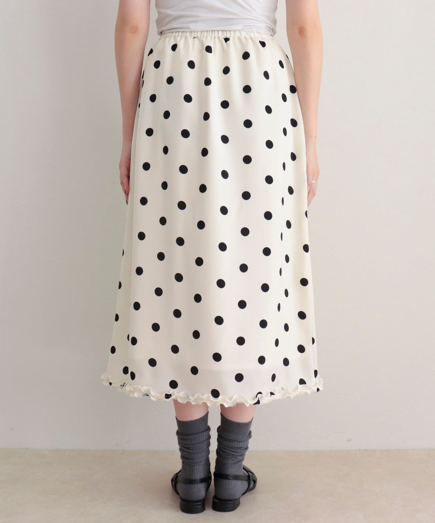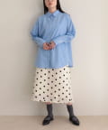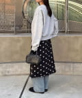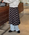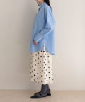 ・サテン素材にドット柄をあしらったミディ丈スカート