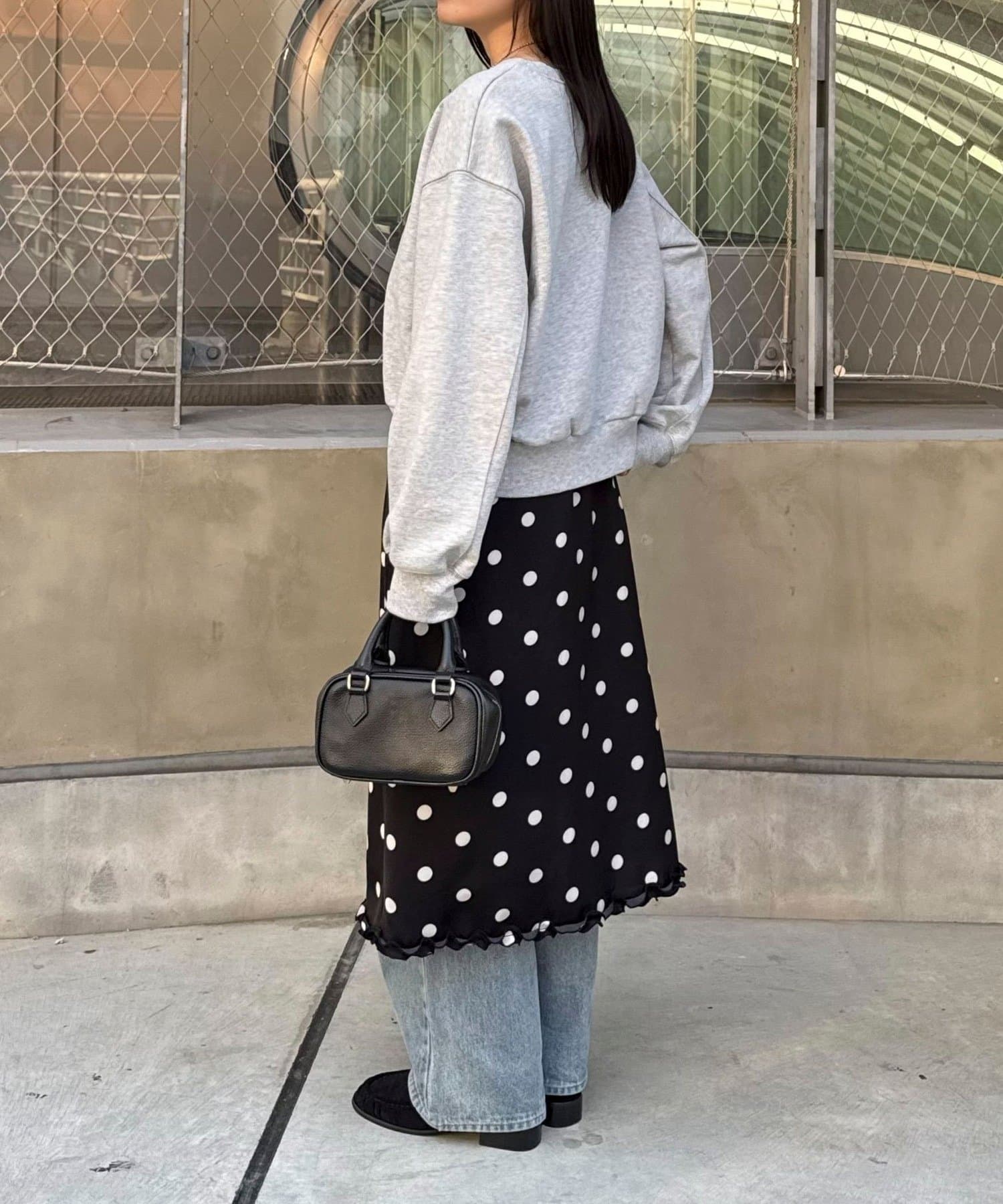 サテンドットミディスカート