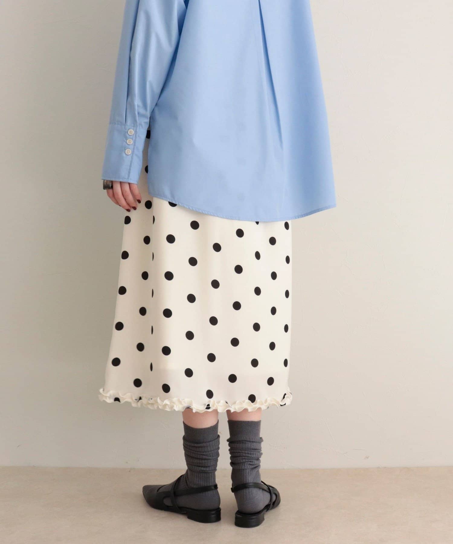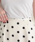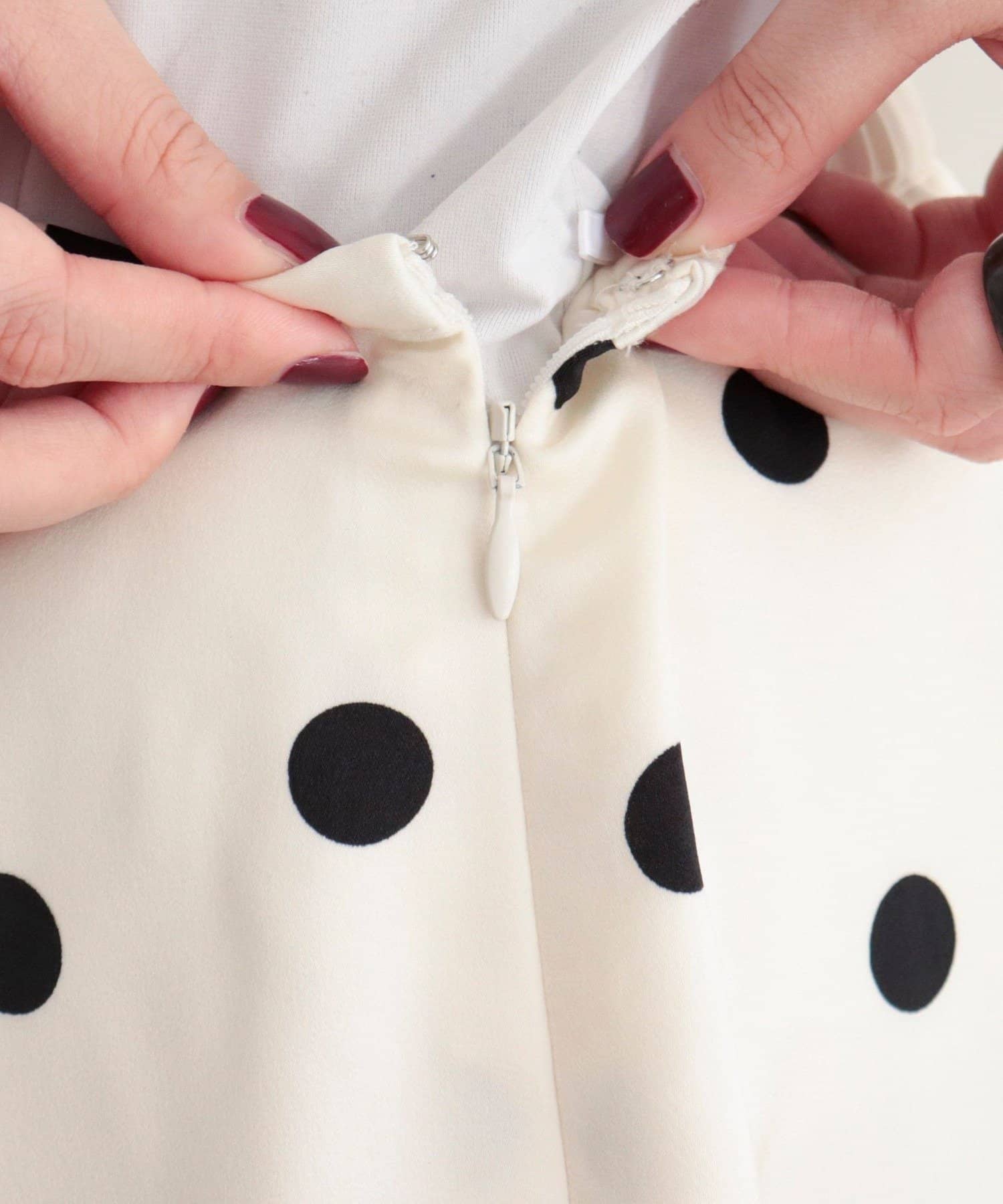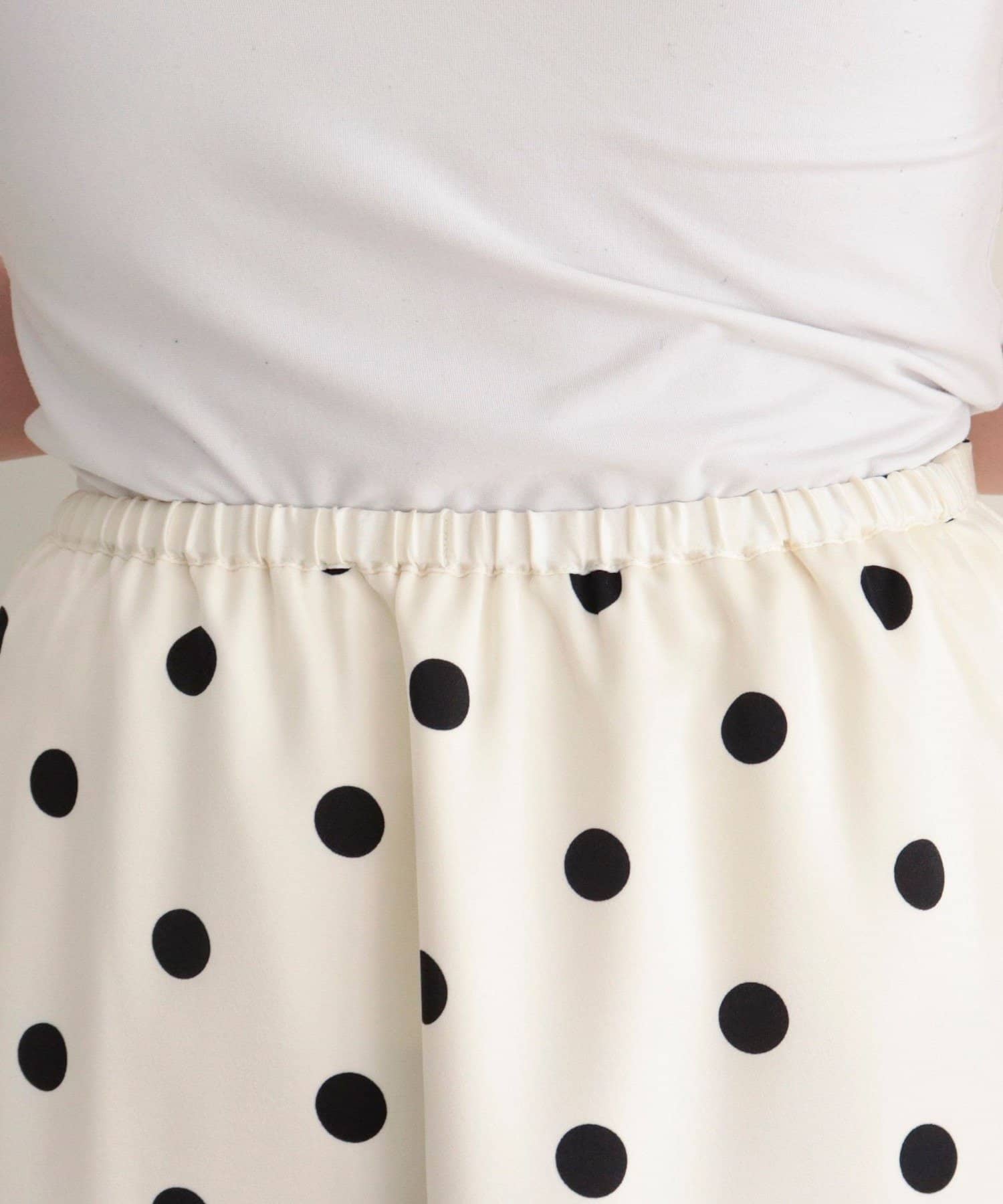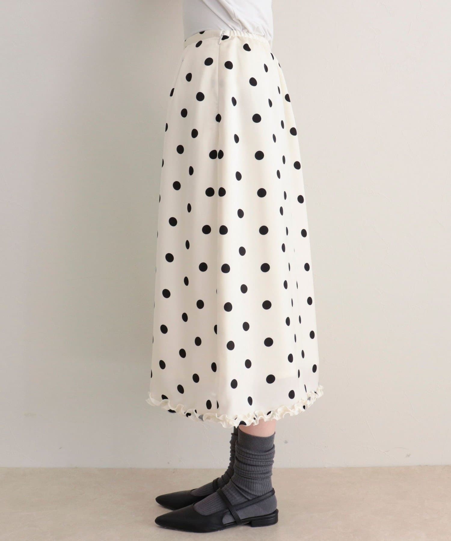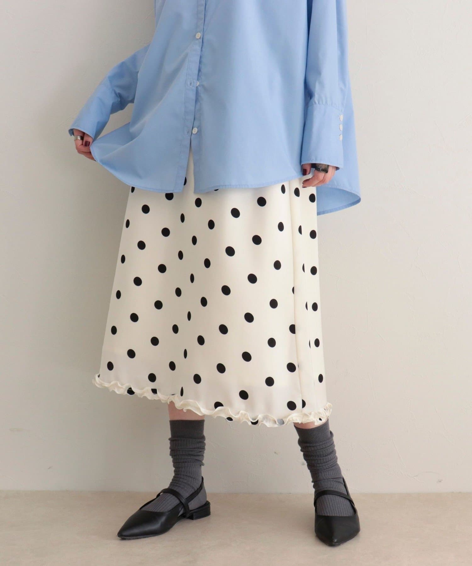 ・サテン素材にドット柄をあしらったミディ丈スカート
