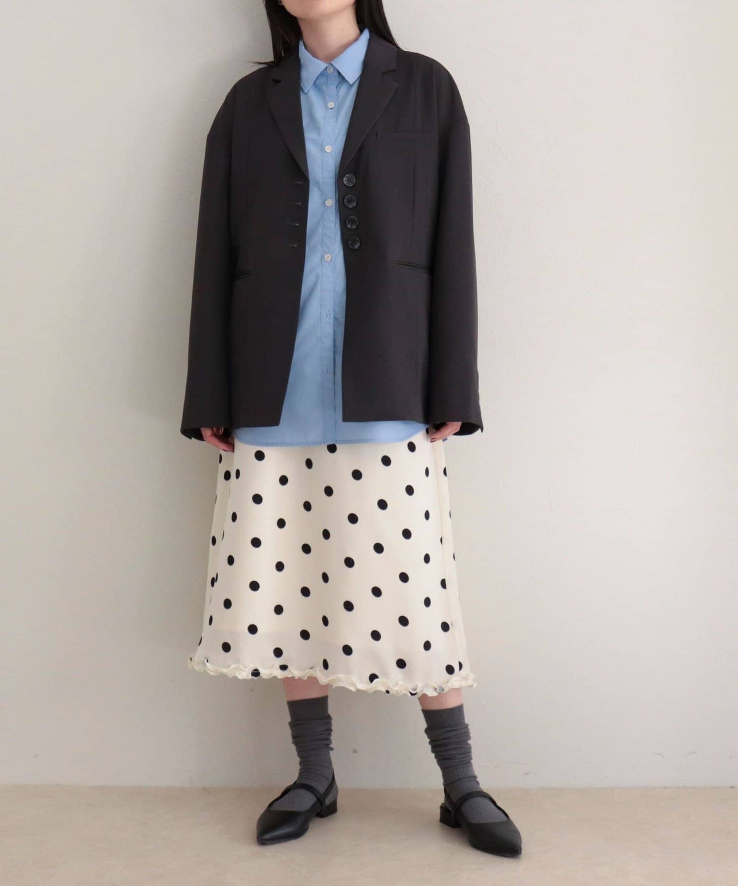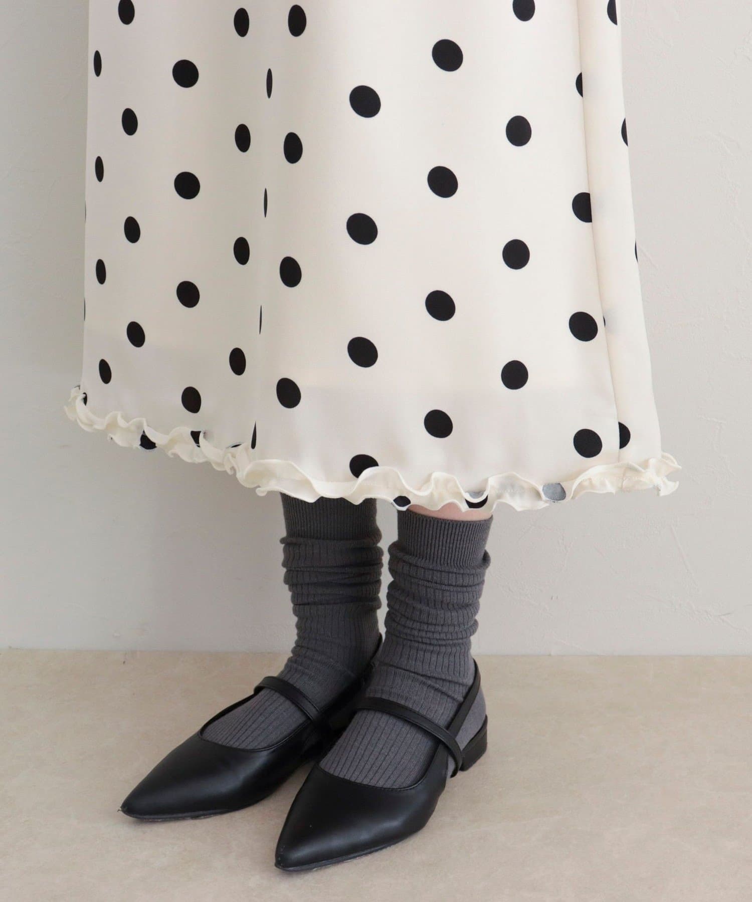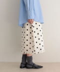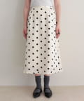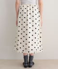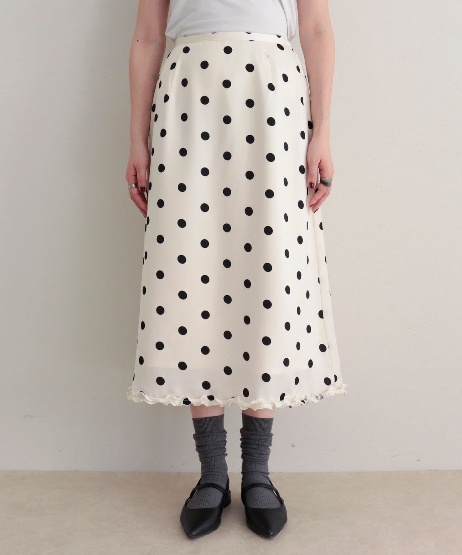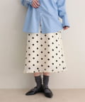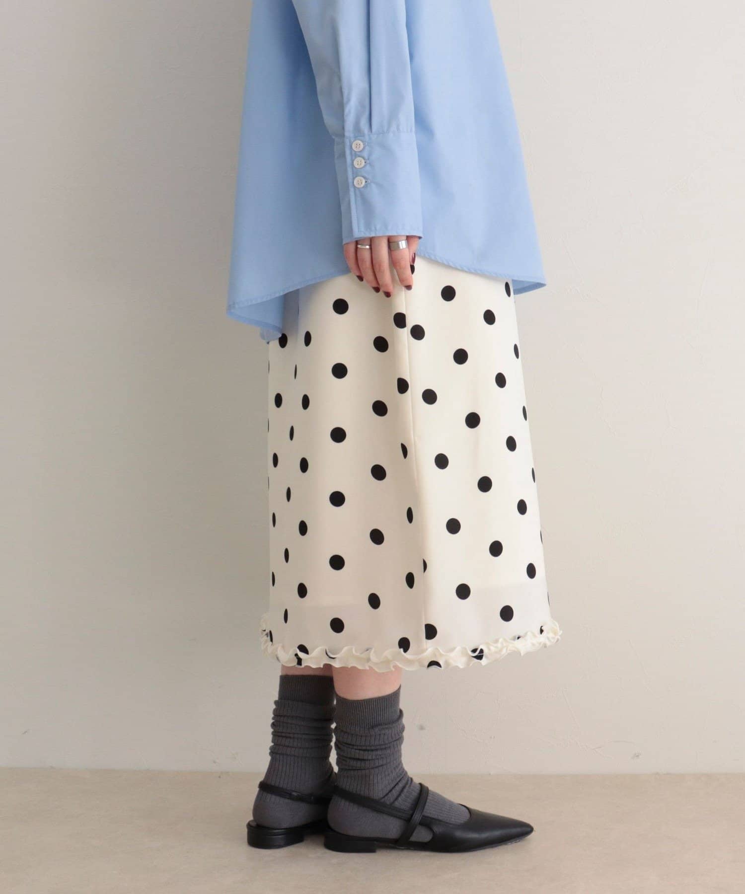 ・サテン素材にドット柄をあしらったミディ丈スカート