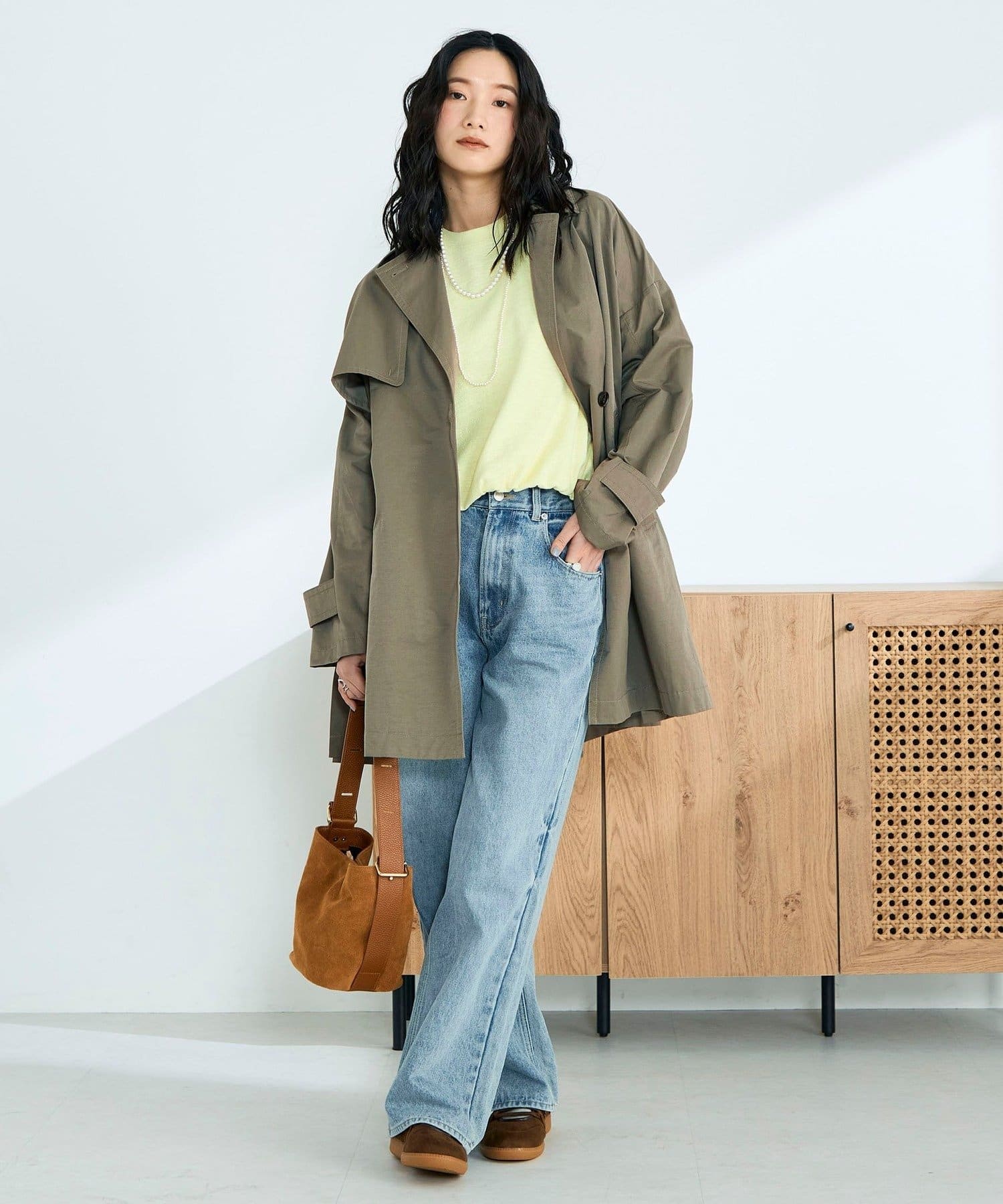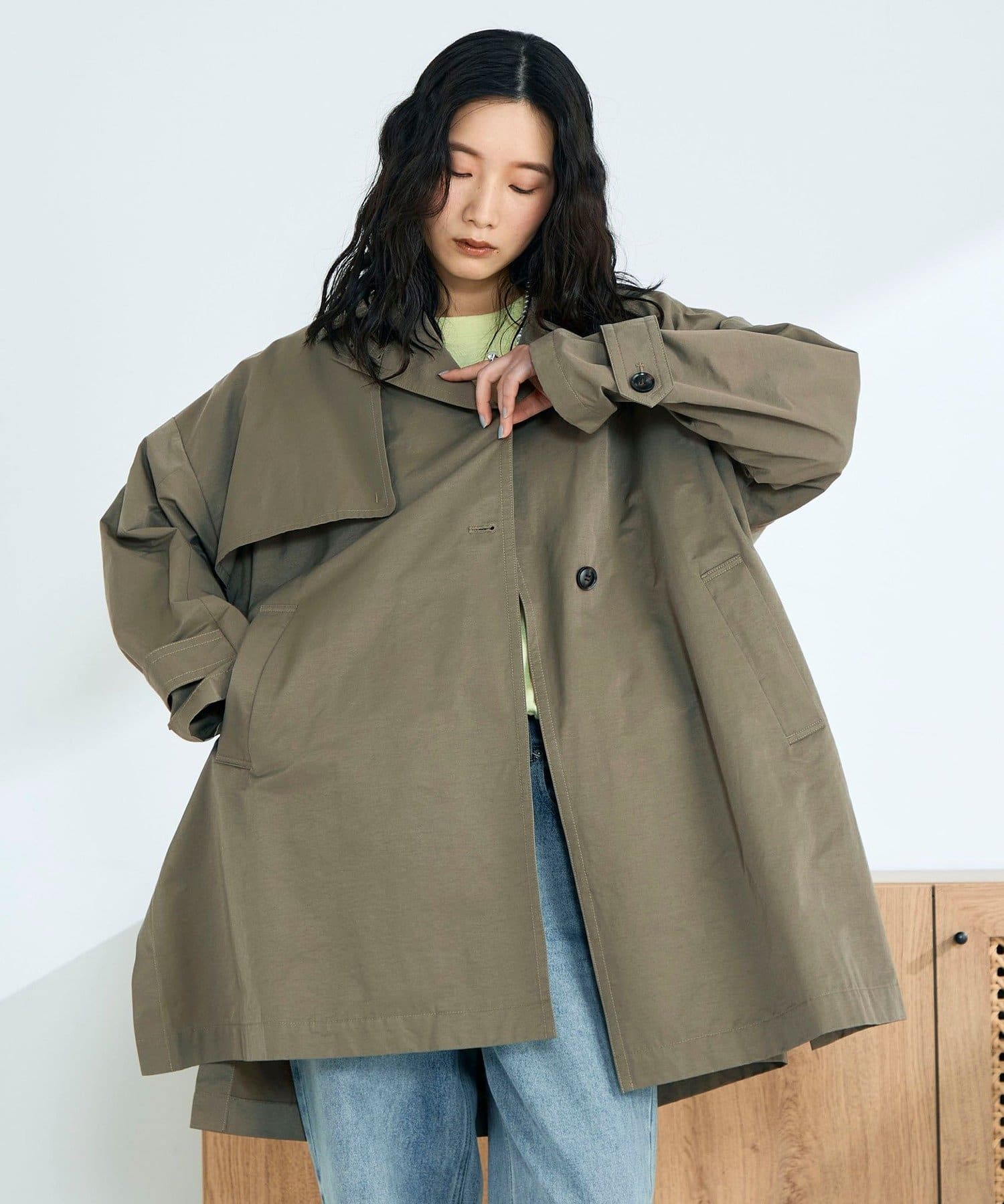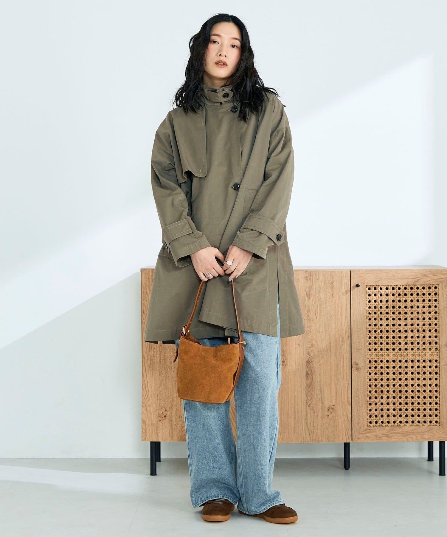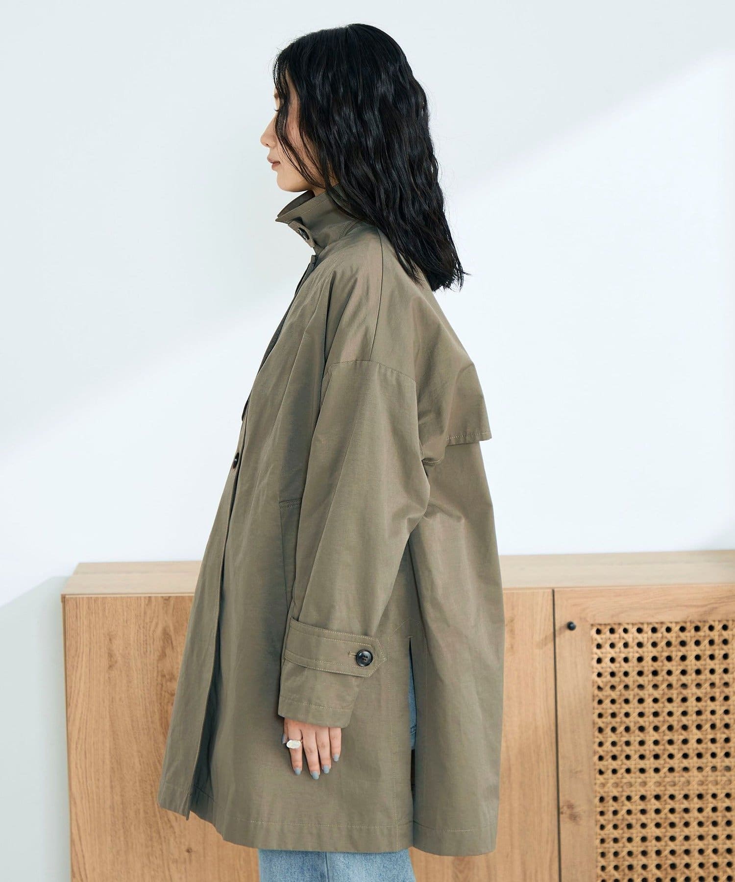 ・程よくゆとりのあるオーバーシルエットが今っぽいバランスを叶えるミドル丈トレンチコート