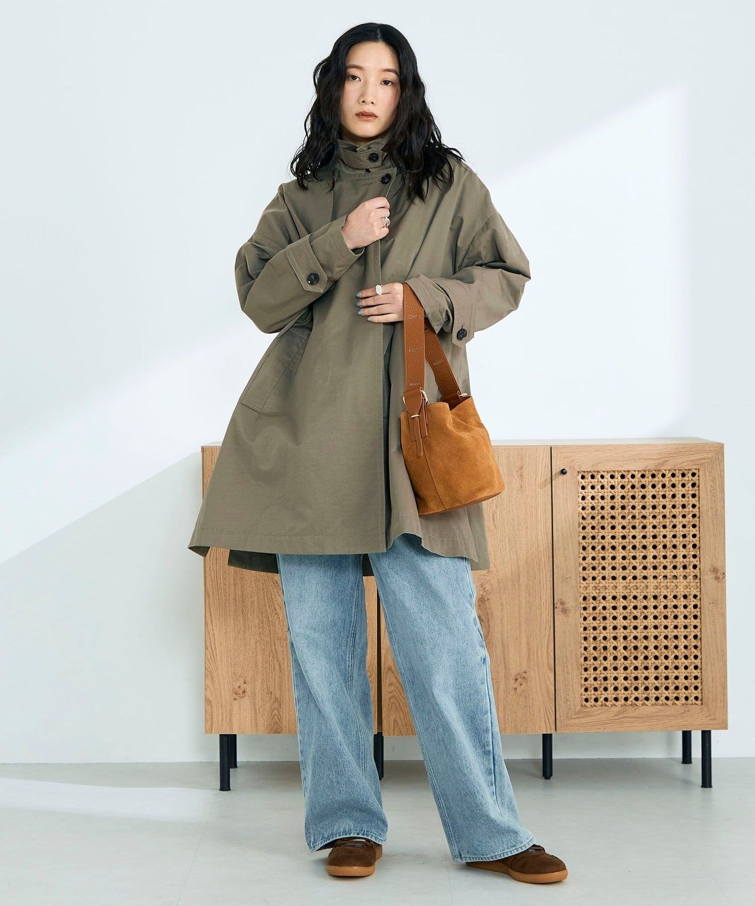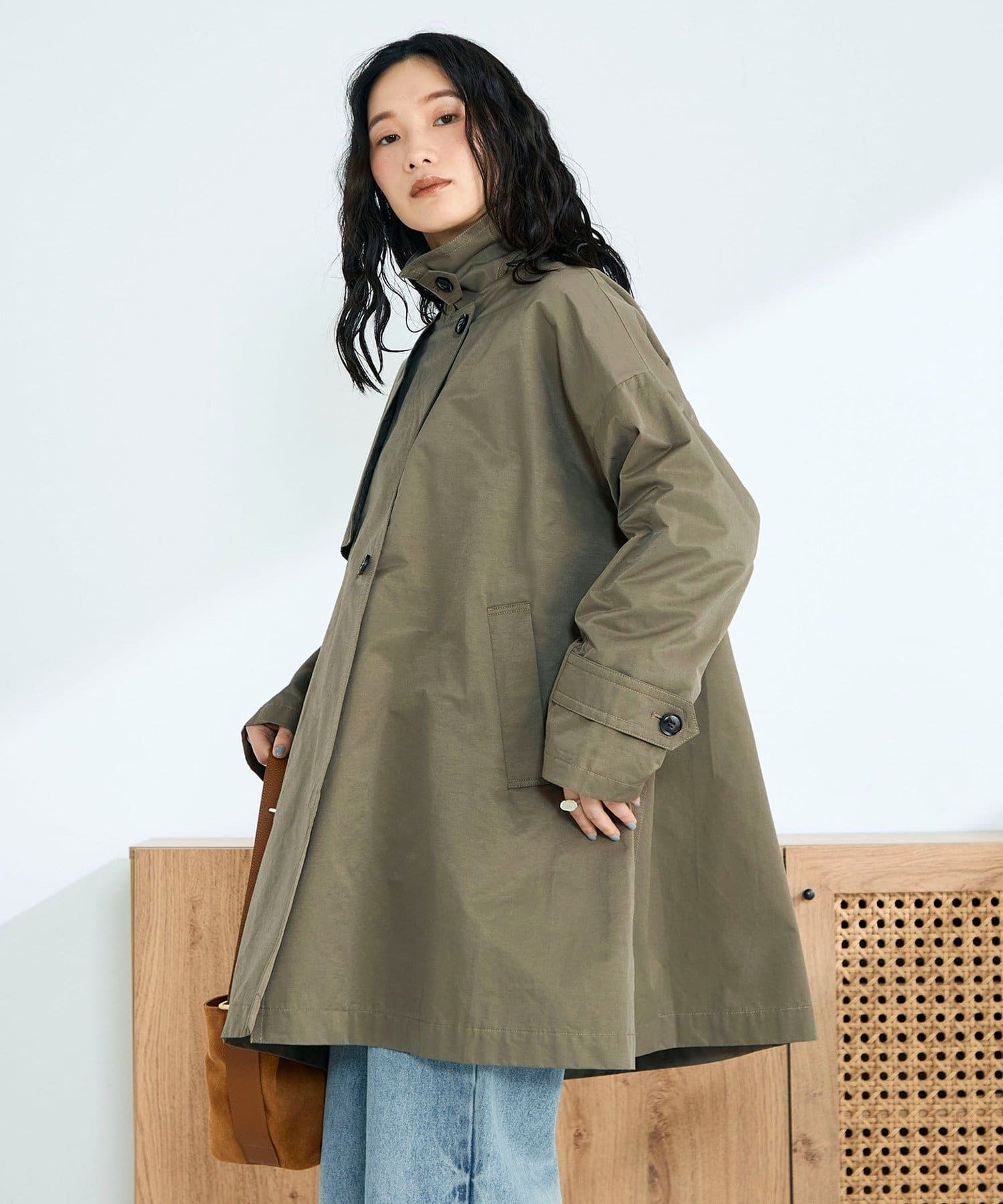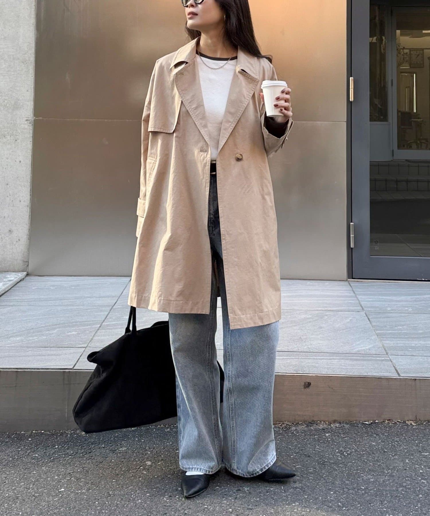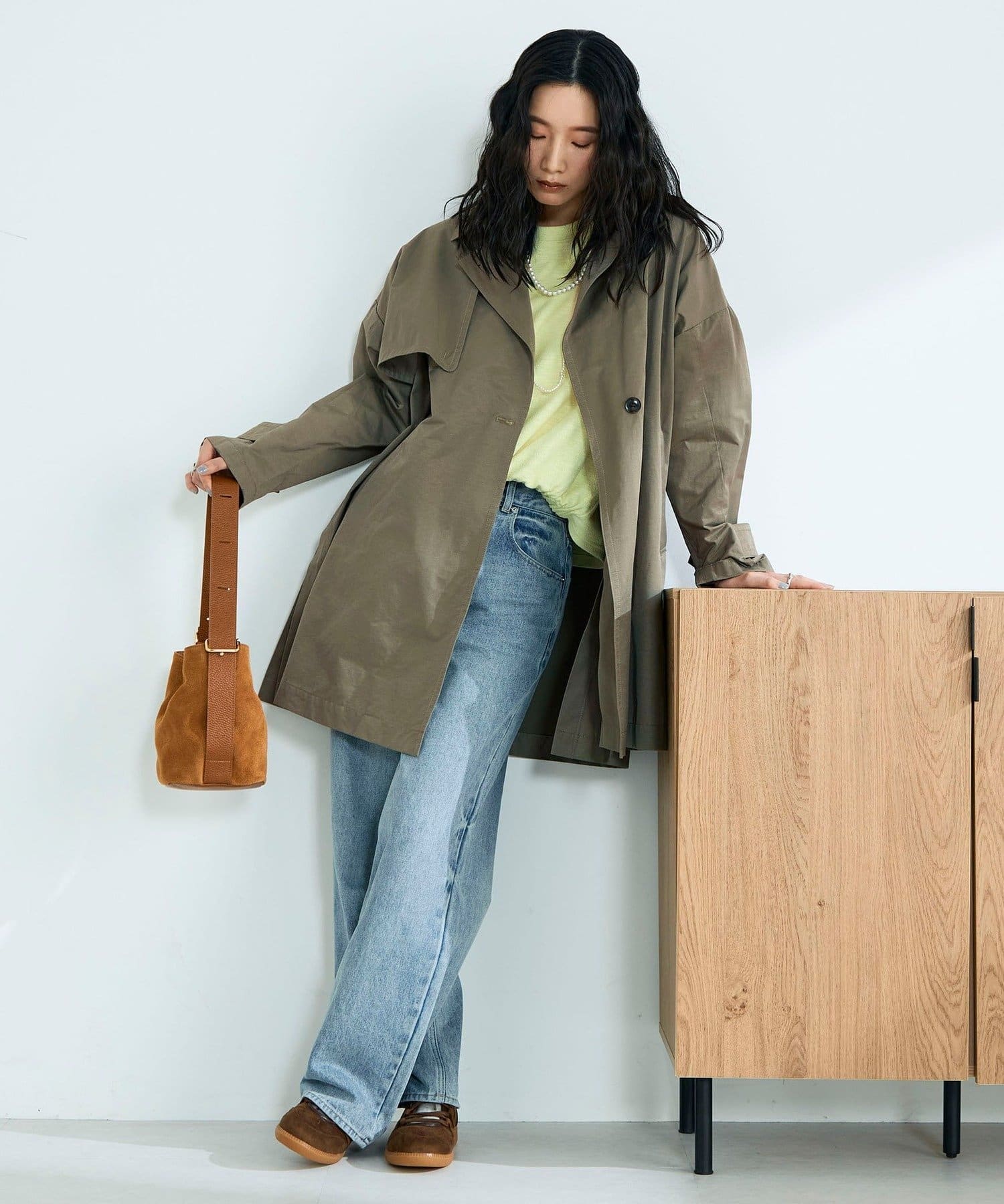 ・程よくゆとりのあるオーバーシルエットが今っぽいバランスを叶えるミドル丈トレンチコート