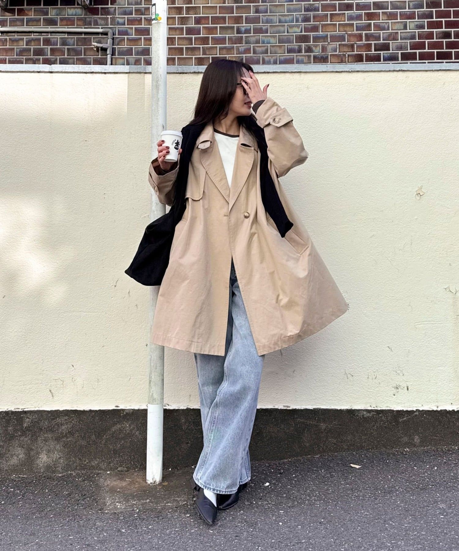 羽織るだけで今っぽいミドル丈オーバートレンチ