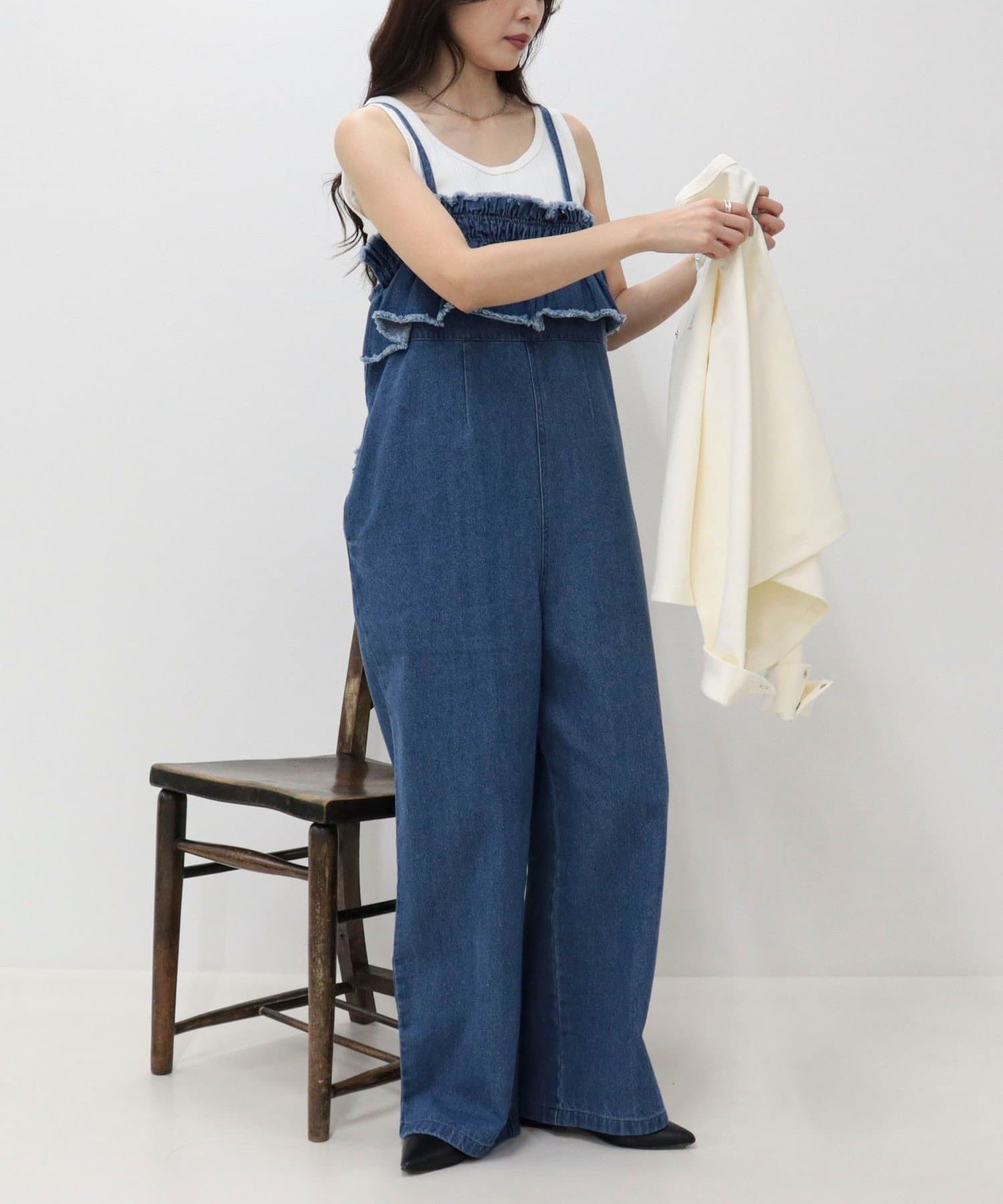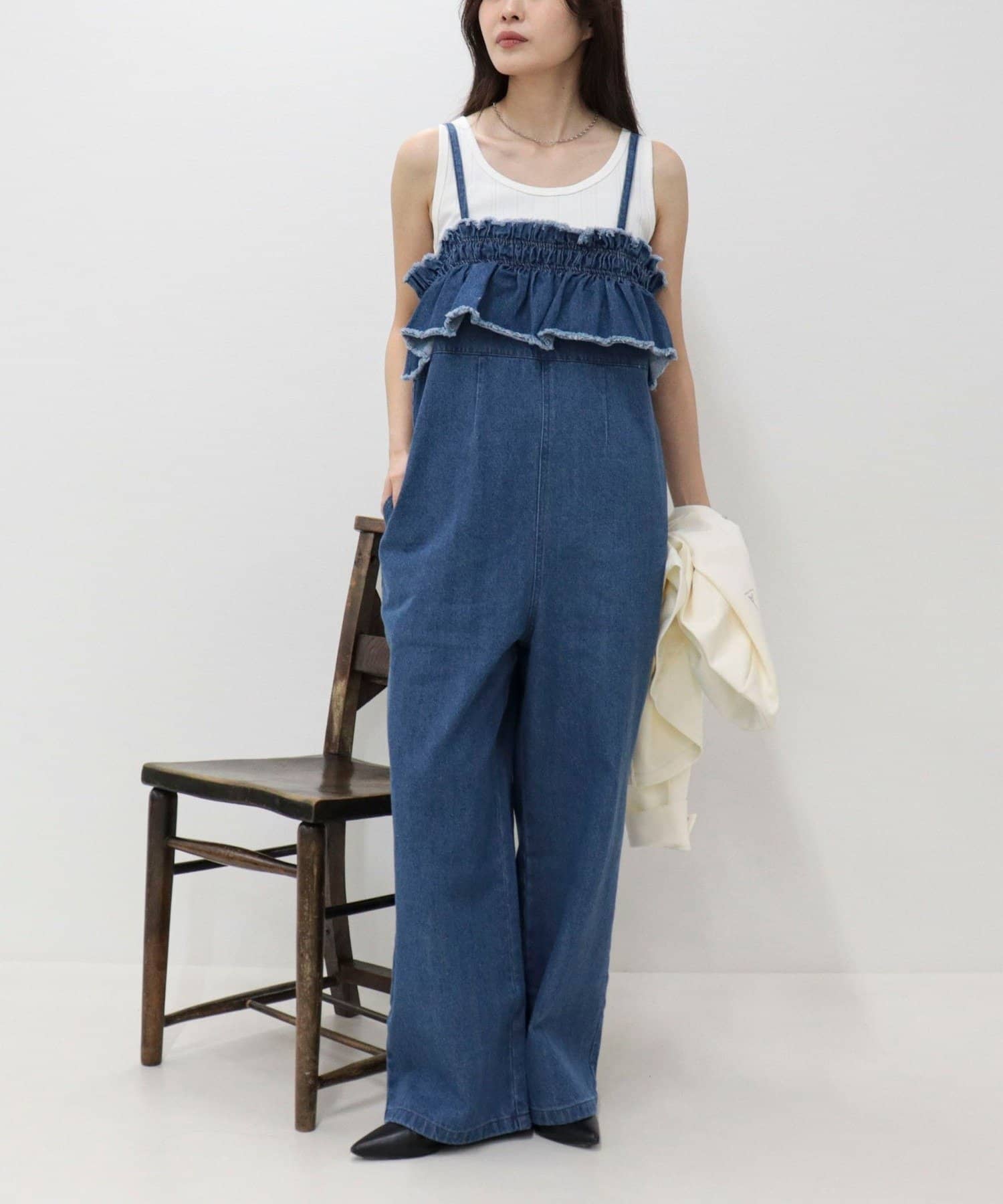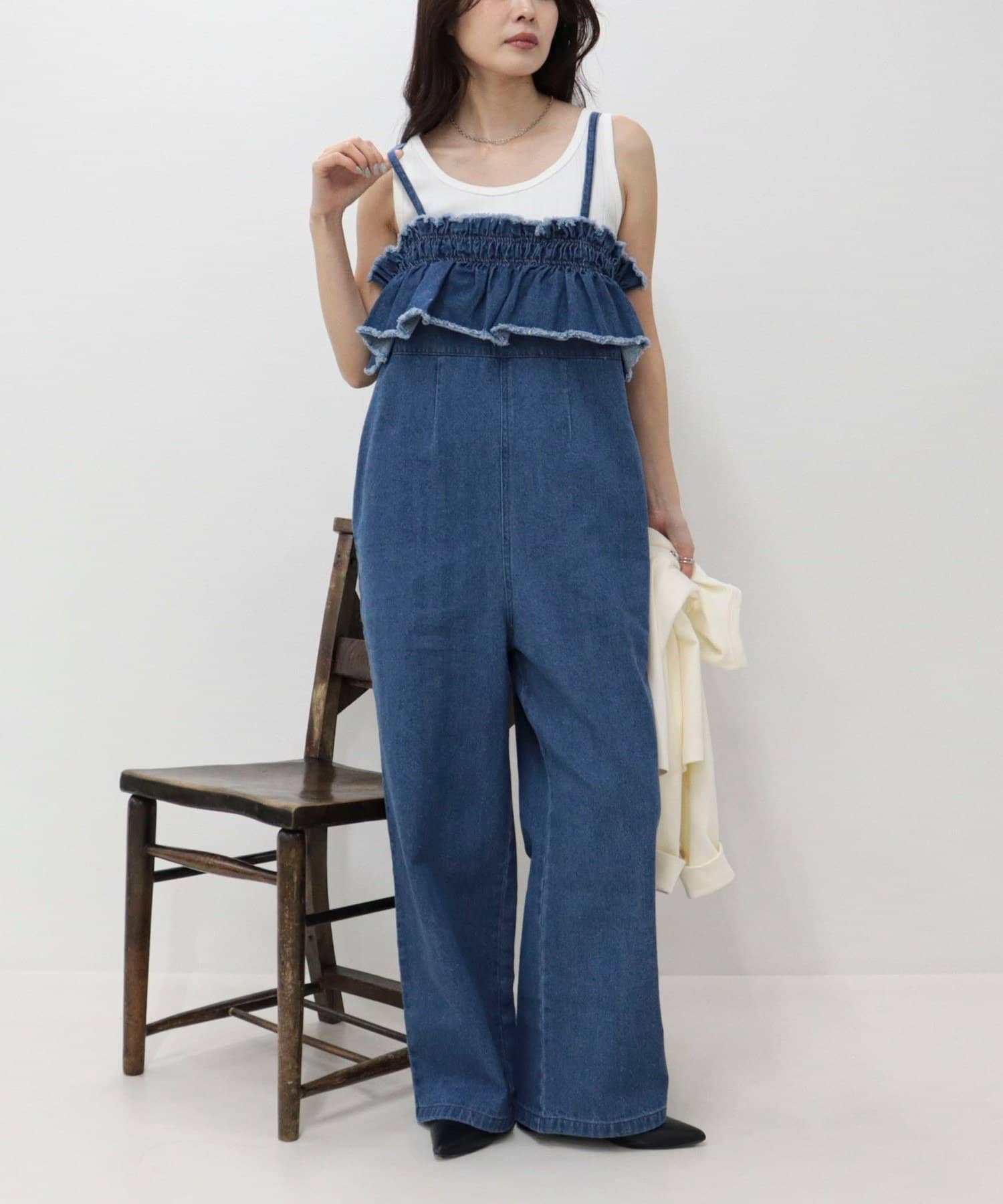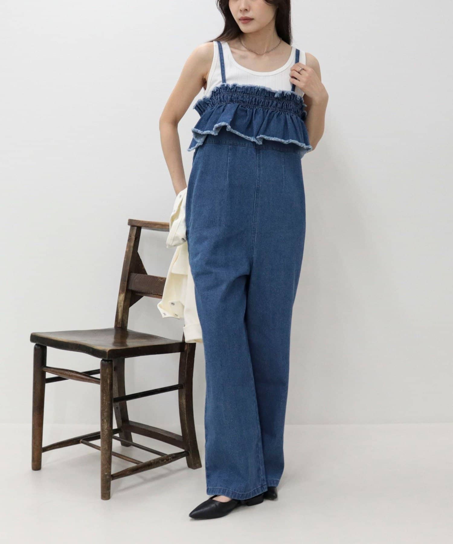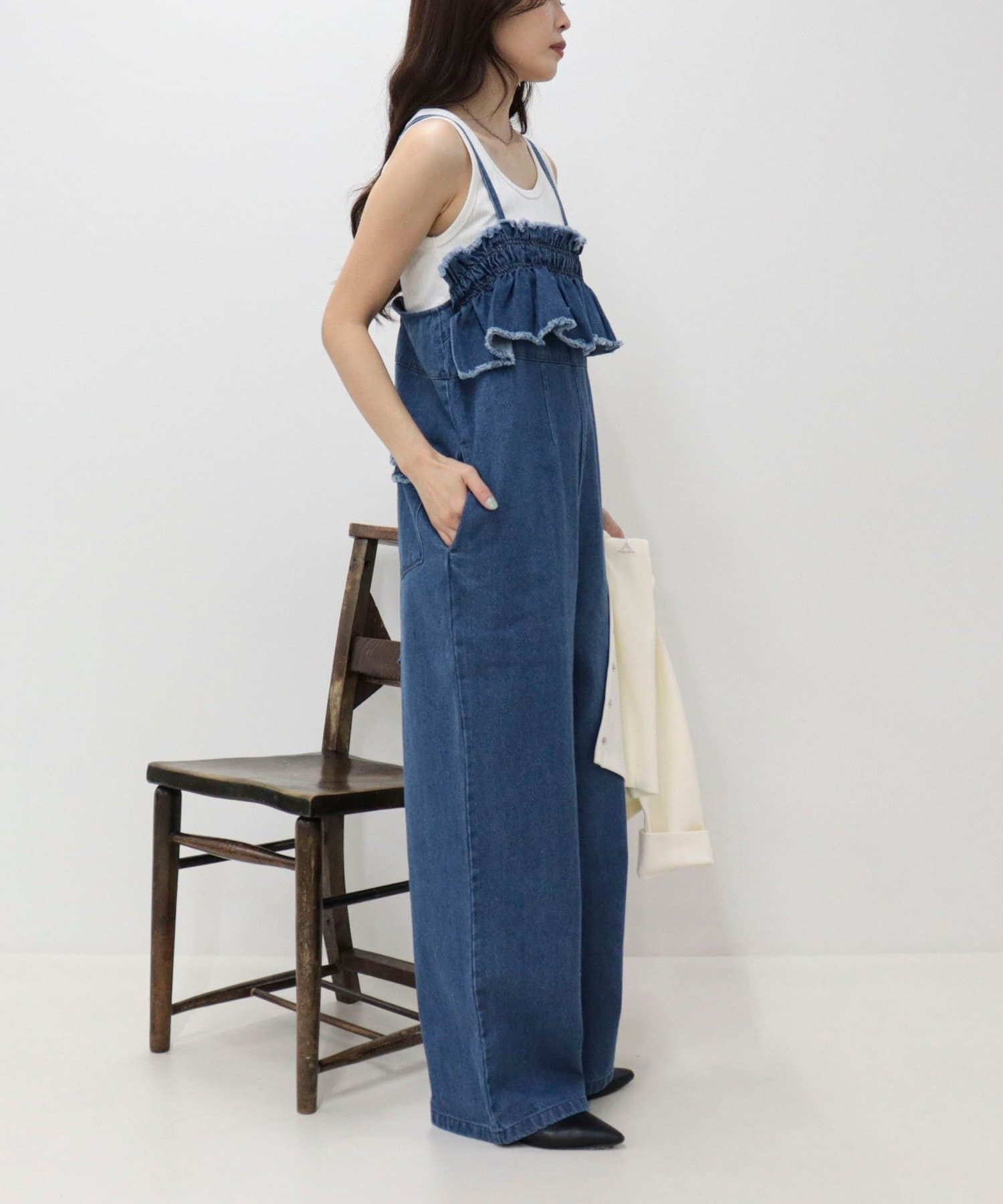 ・甘さとカジュアルのバランスが絶妙なフリルデザインのデニムサロペット