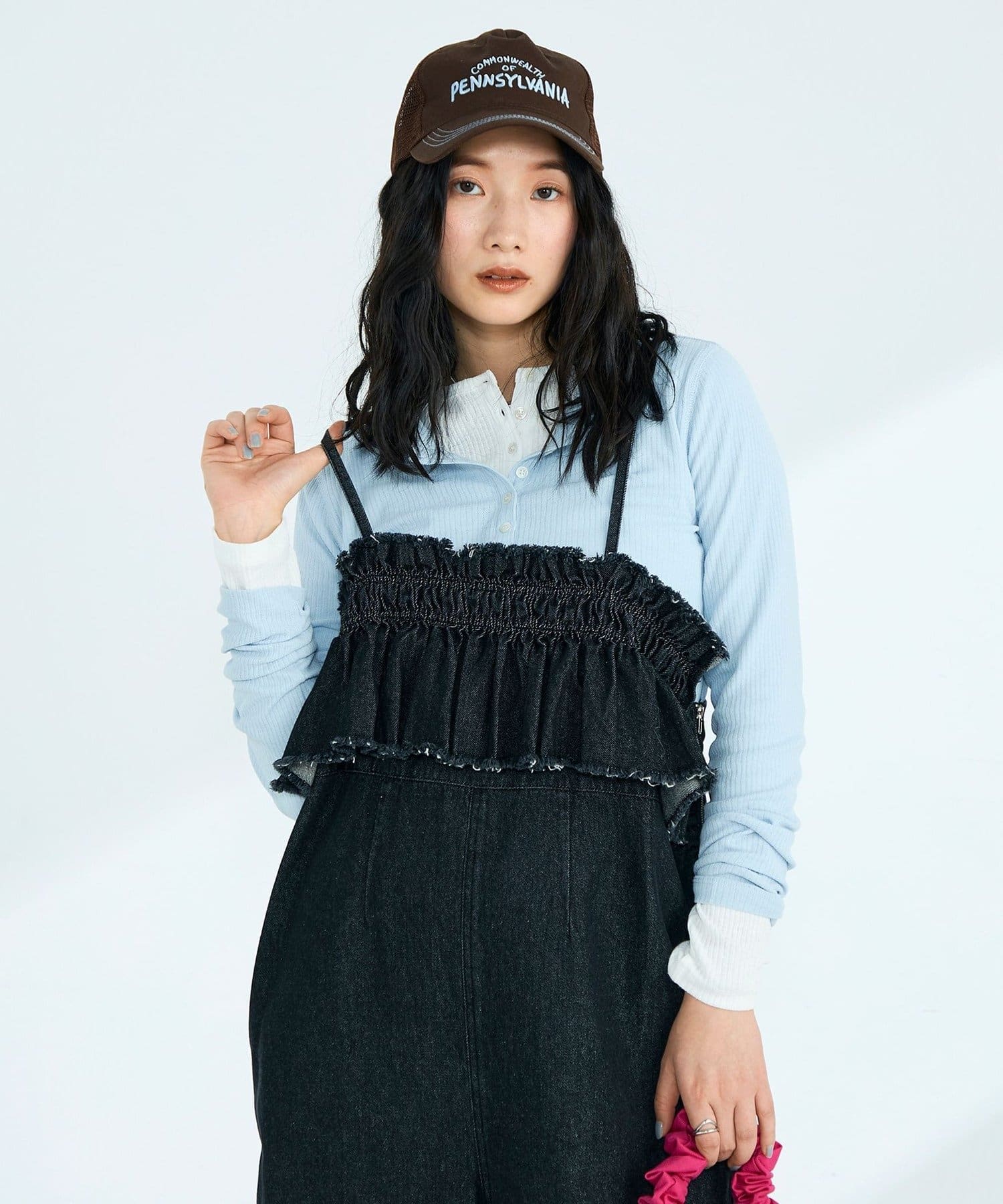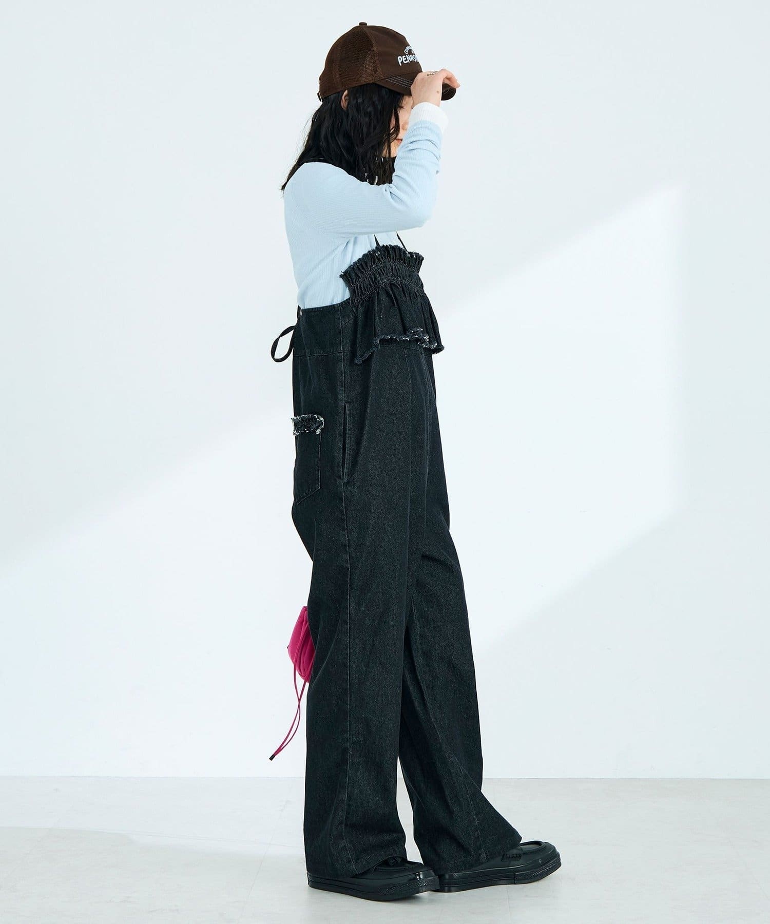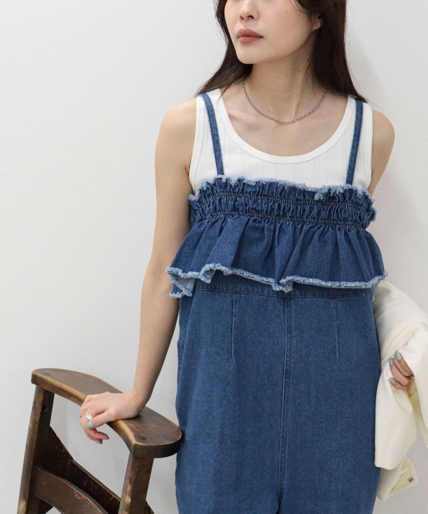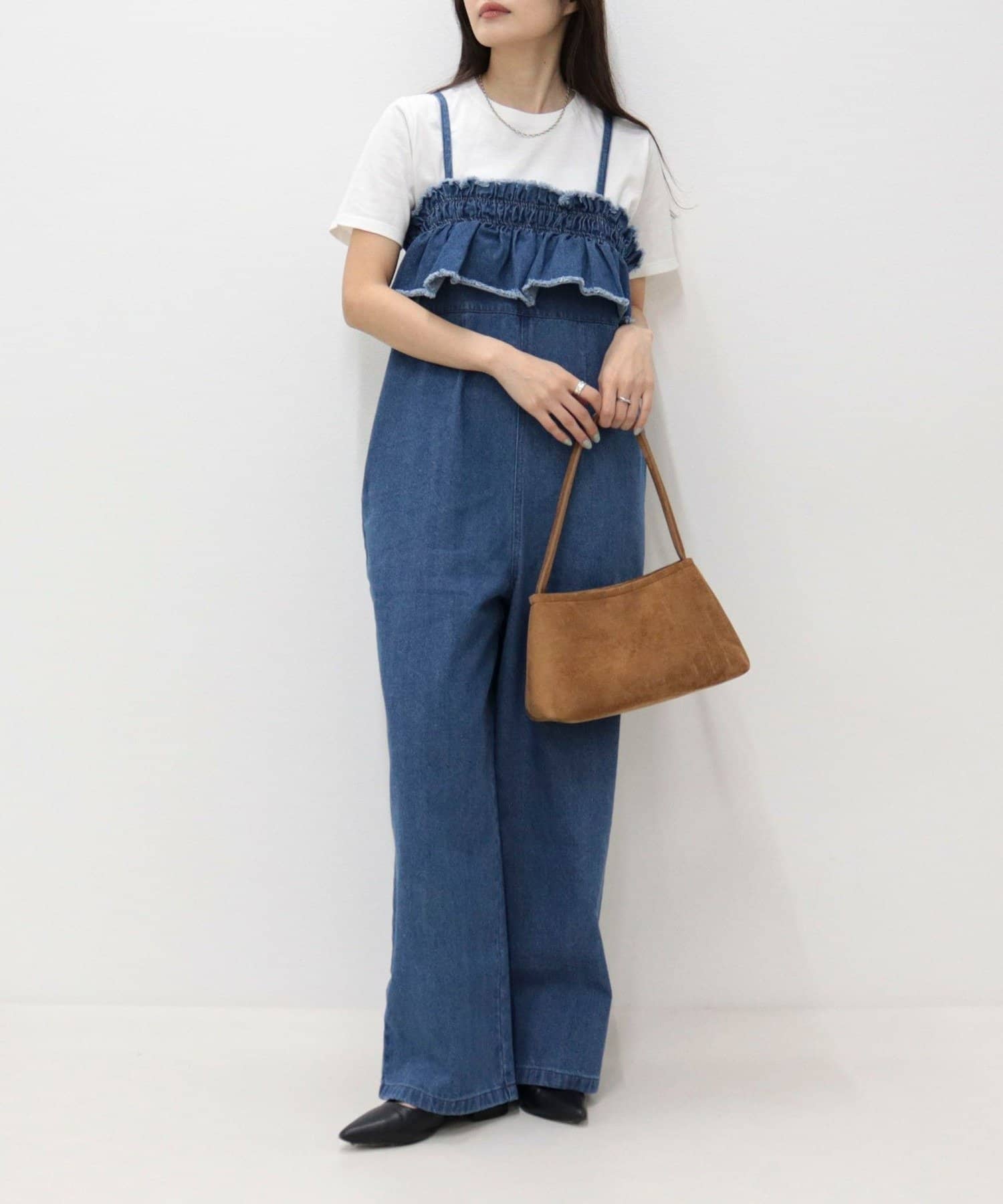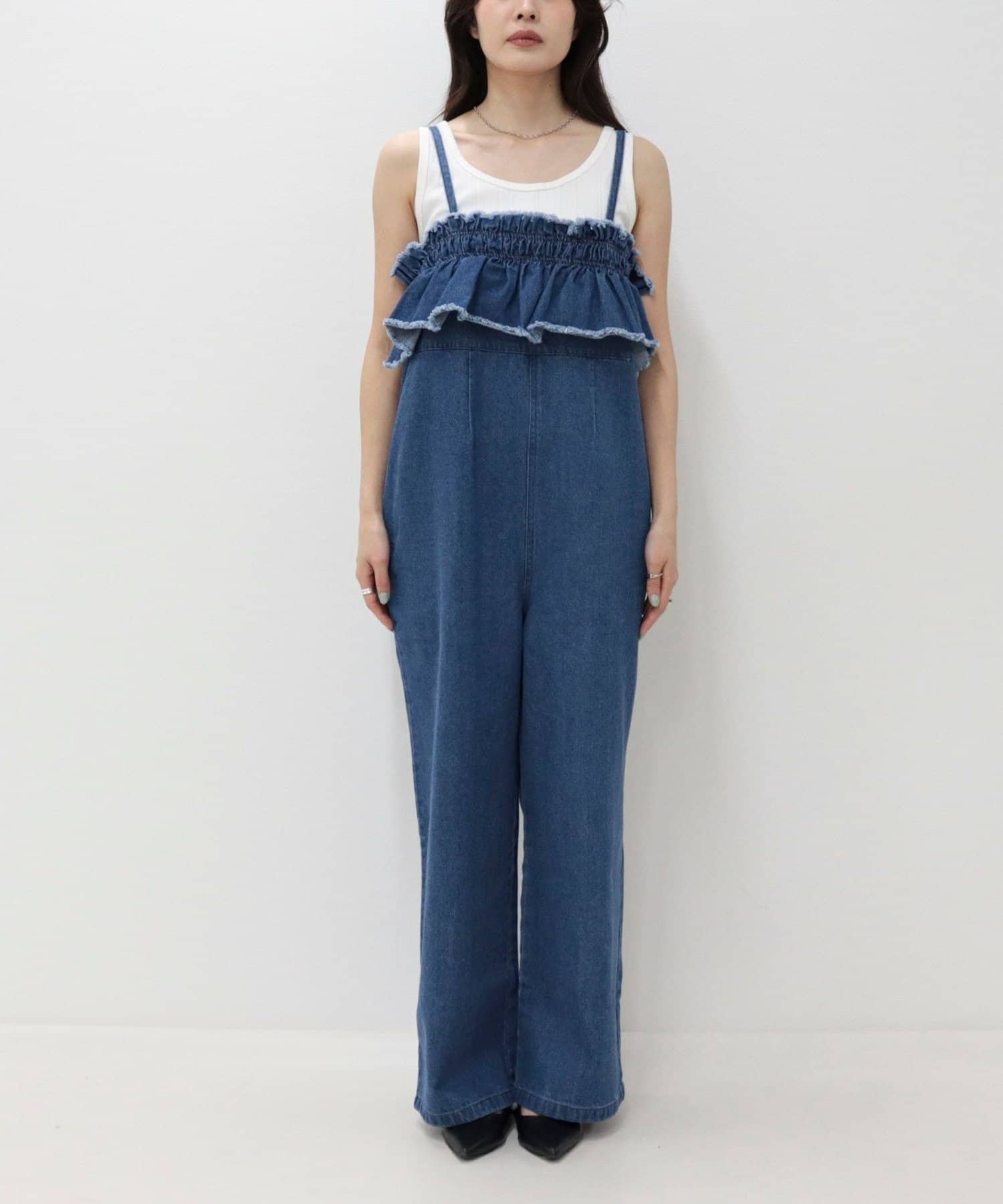 ・甘さとカジュアルのバランスが絶妙なフリルデザインのデニムサロペット