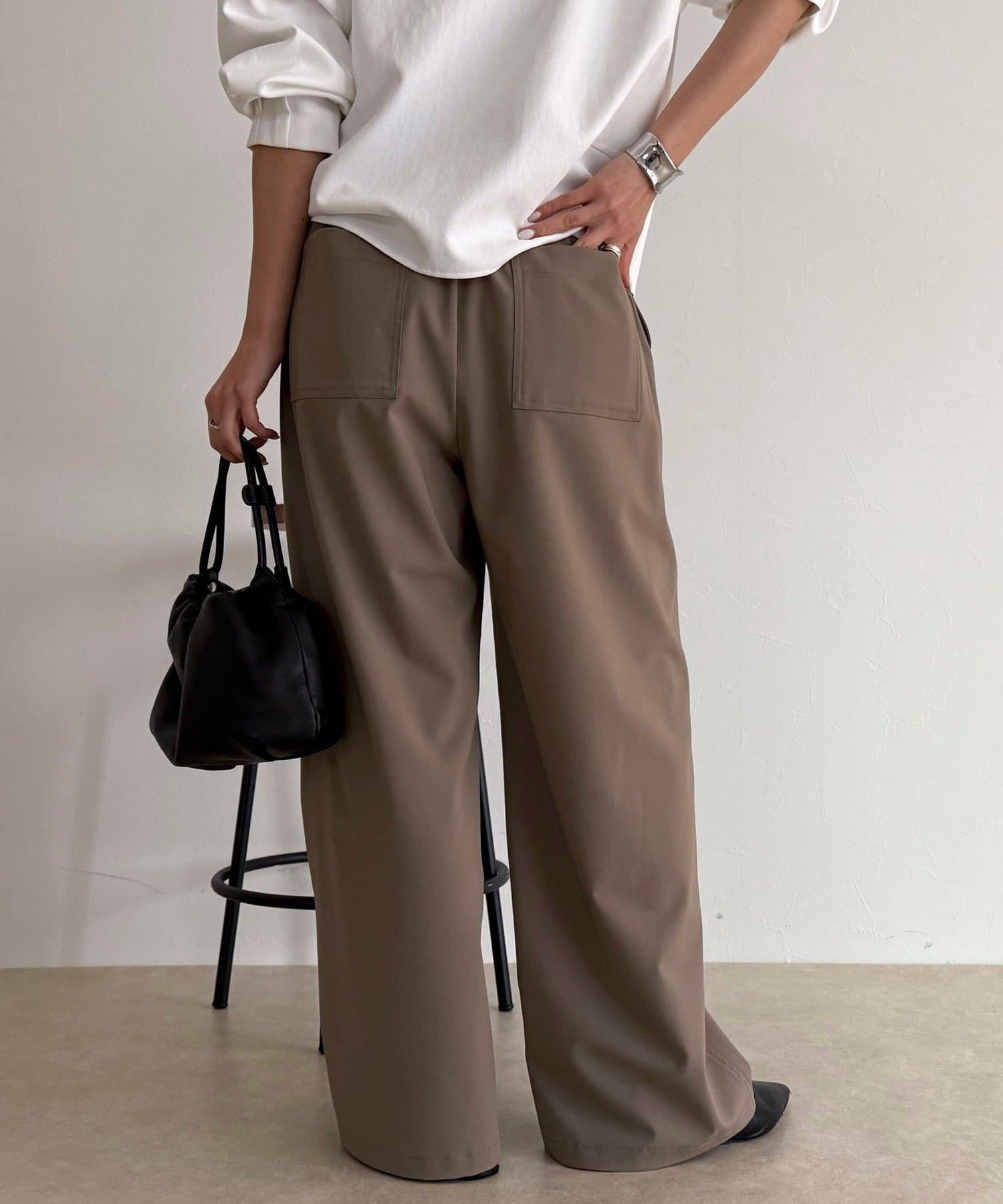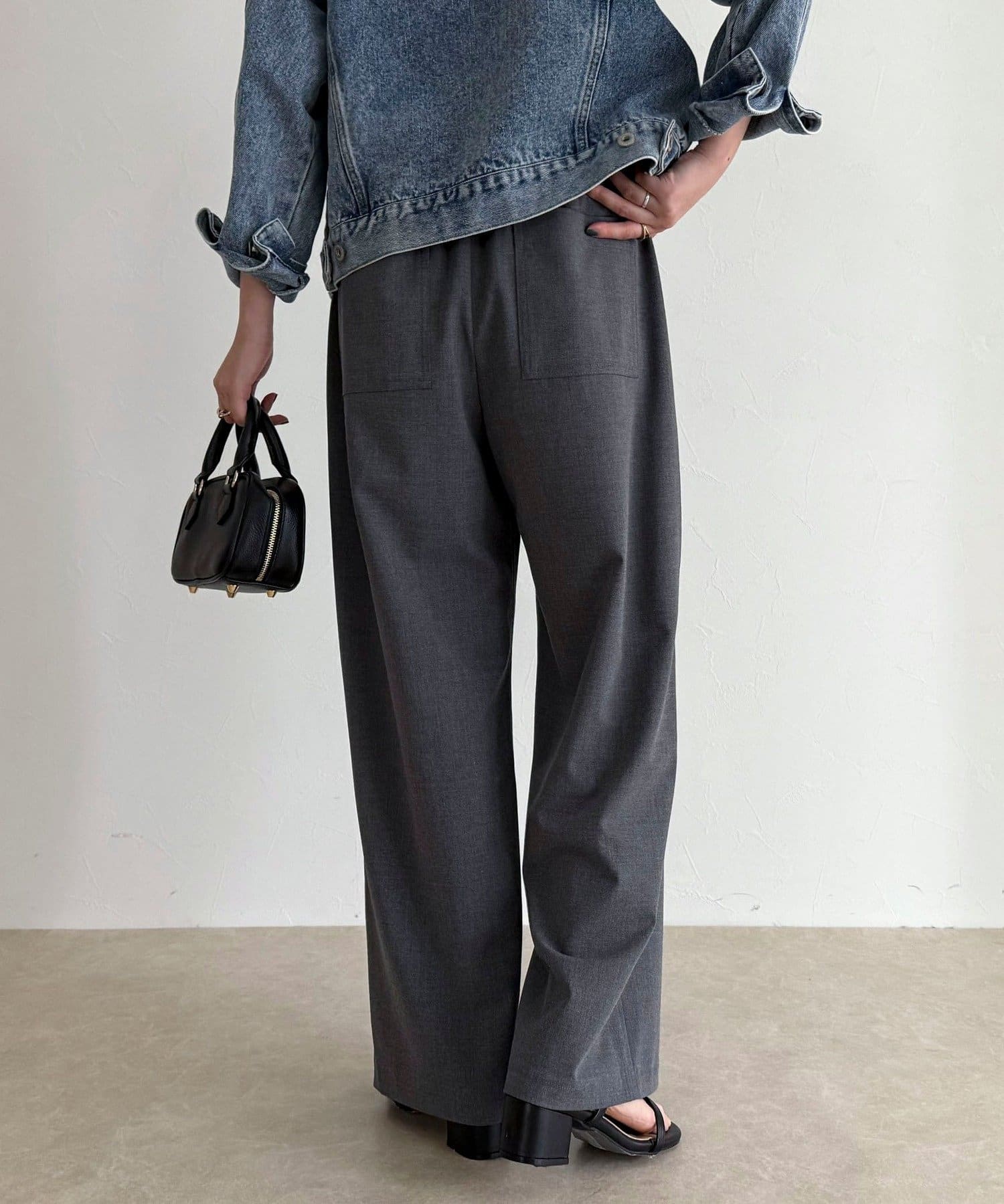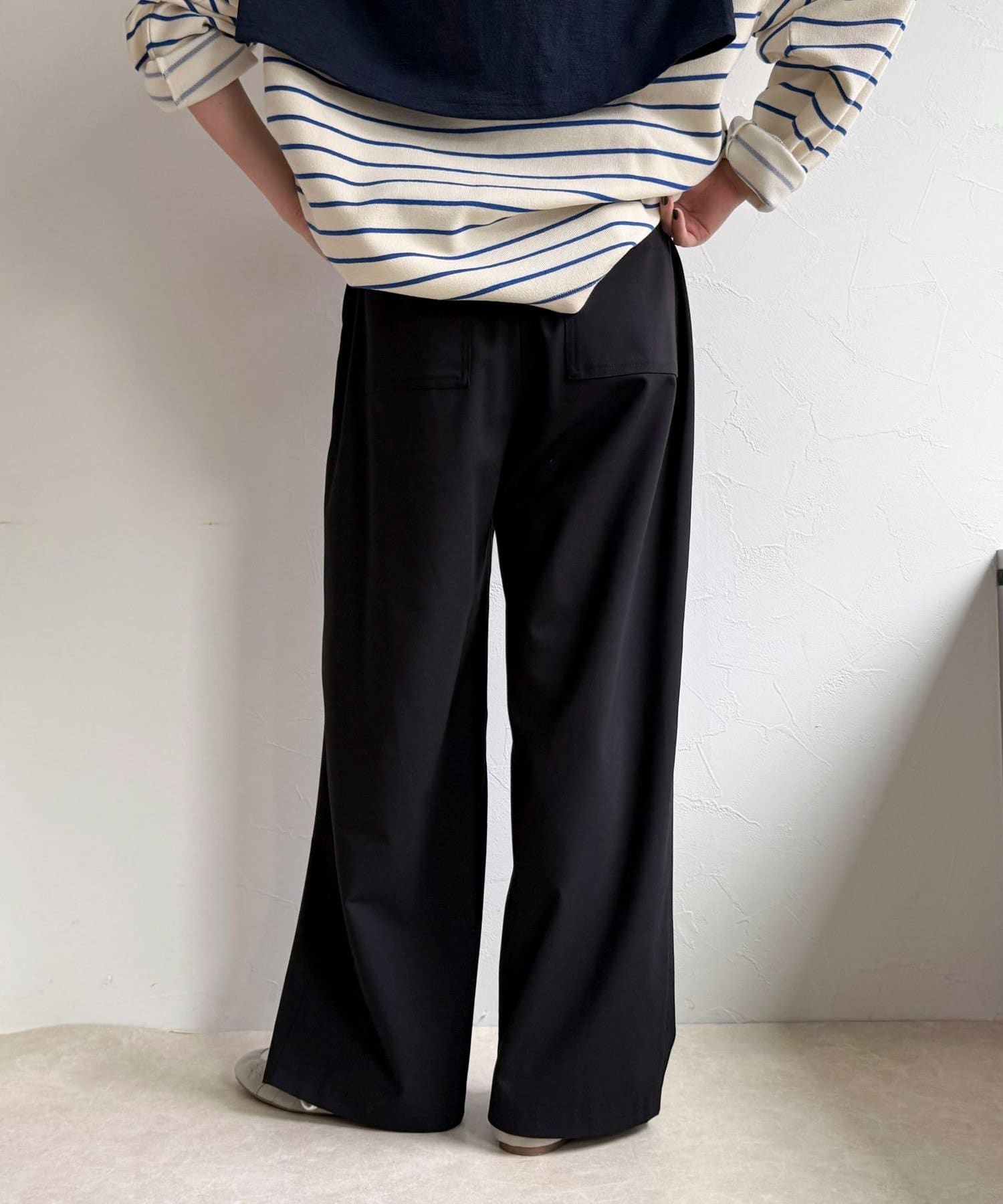 ・スラックス見えするTR素材を使用したイージー仕様のセミワイドパンツ