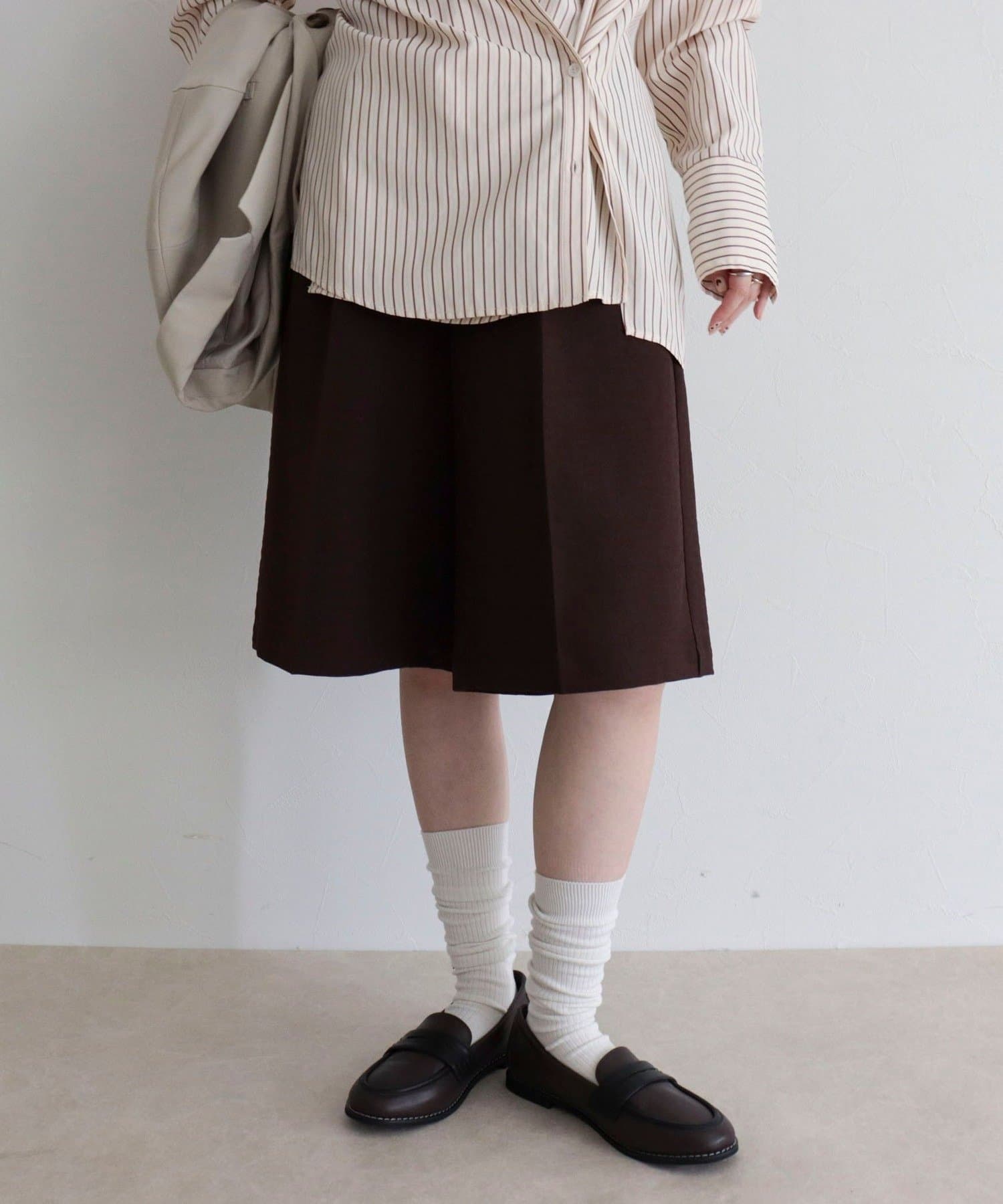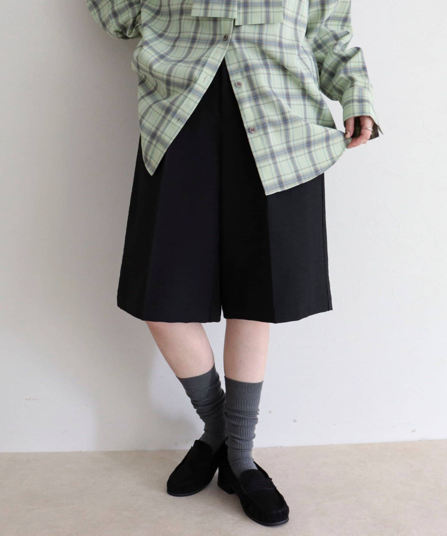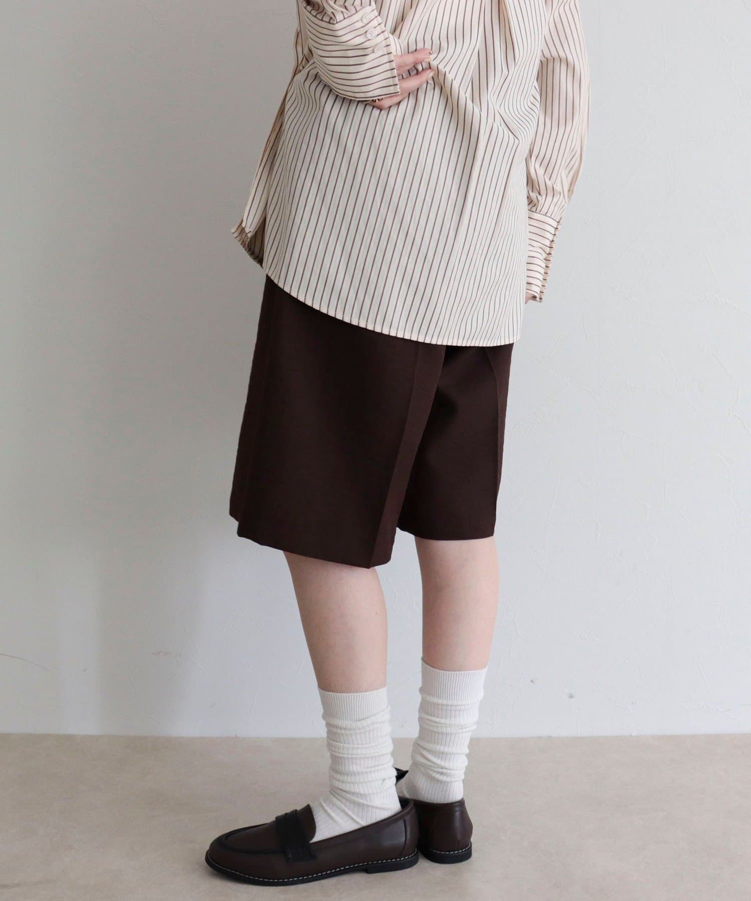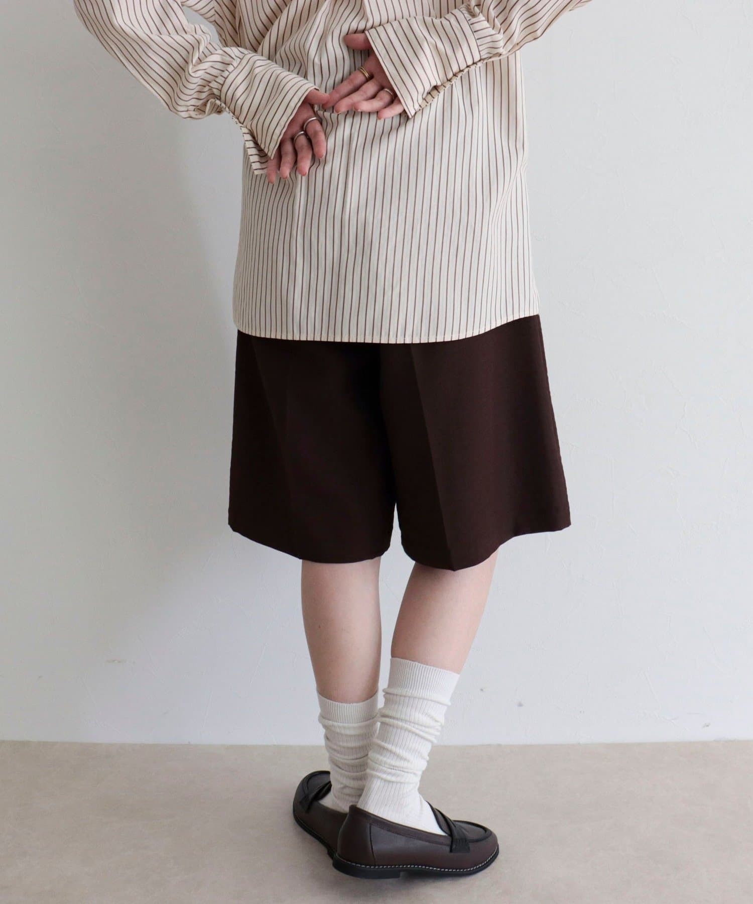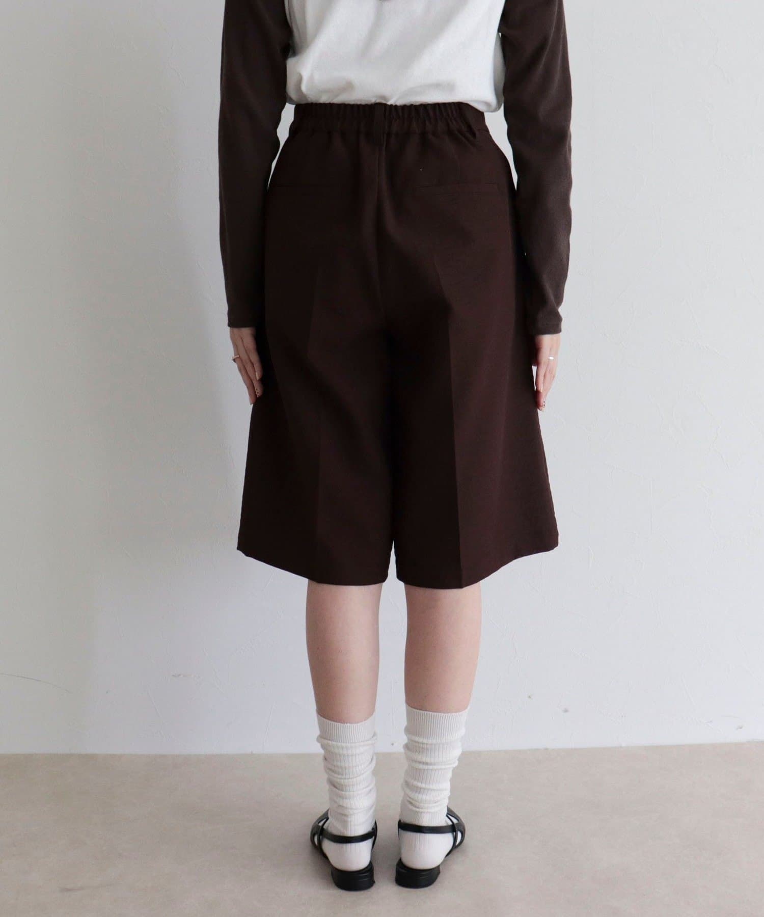 ・フロントにタックを施した、きれいめにも使えるスラックスハーフパンツ
