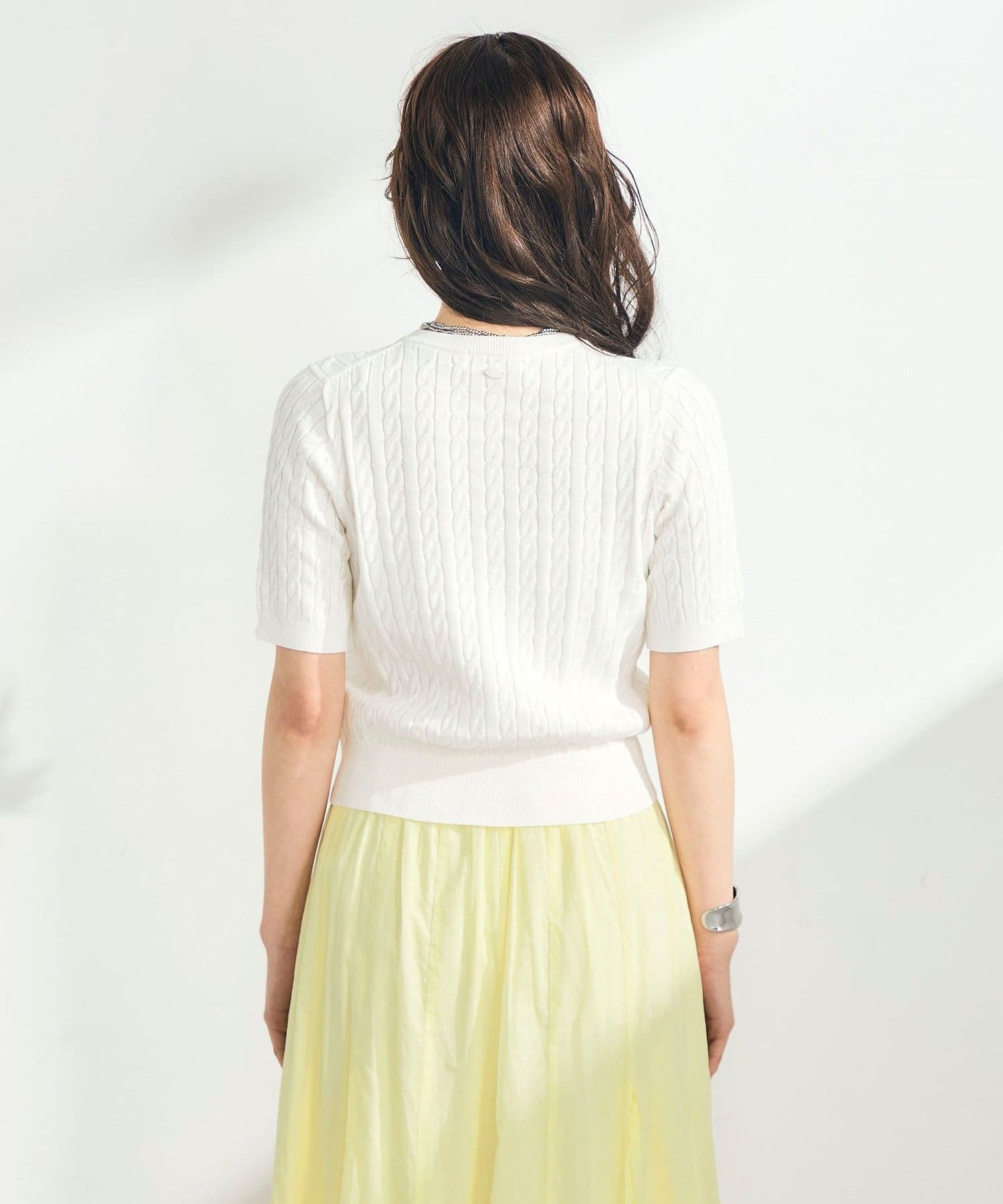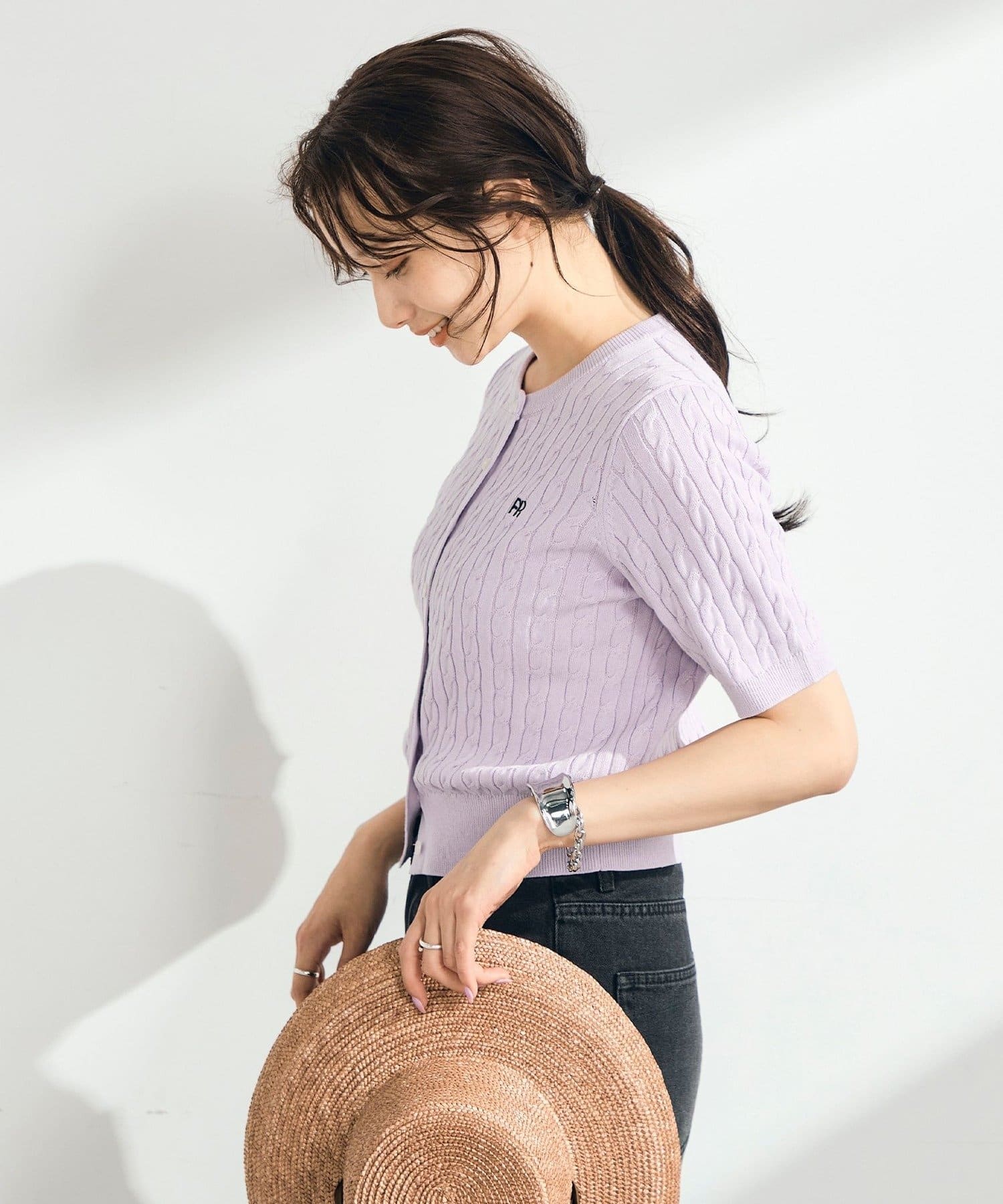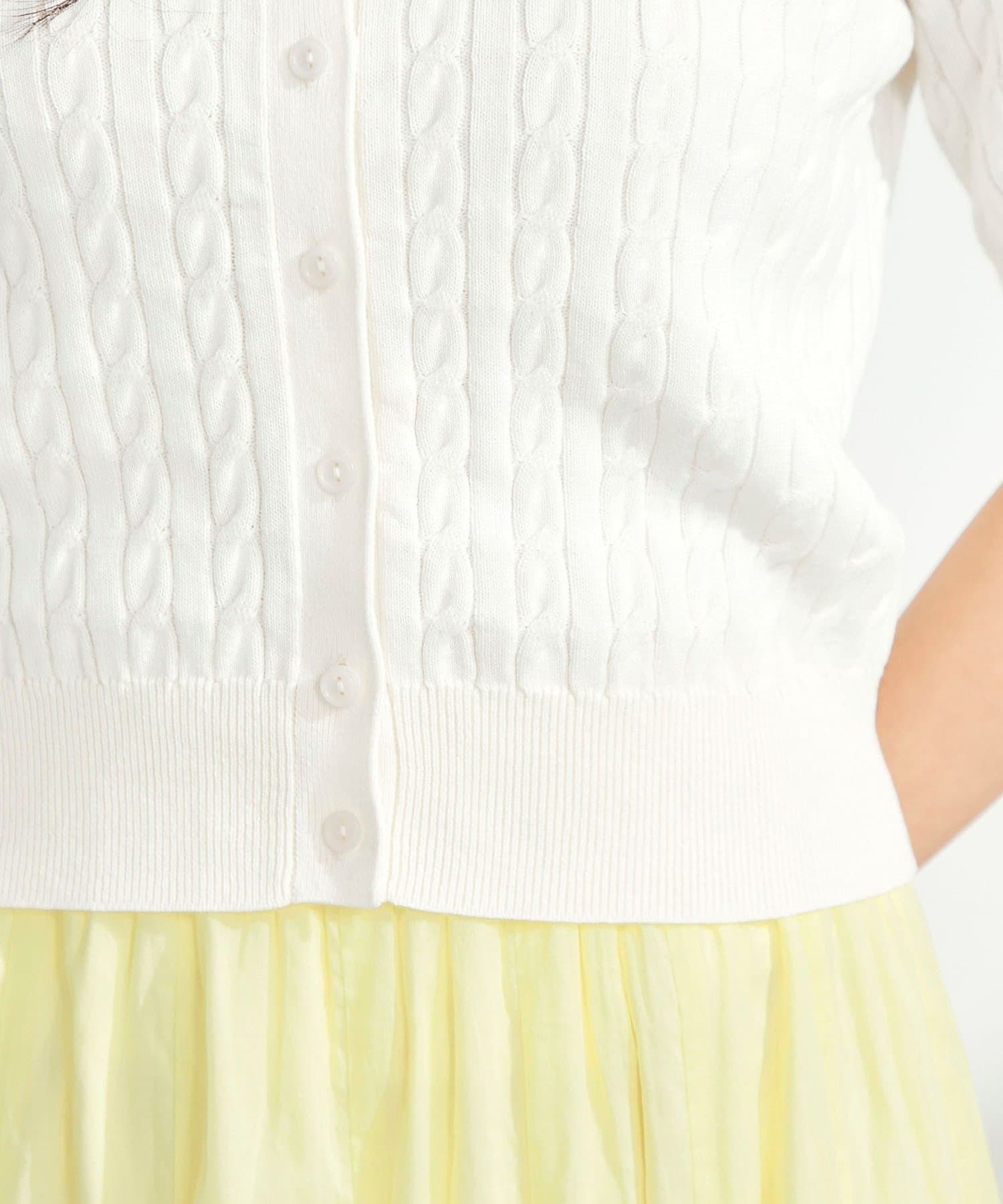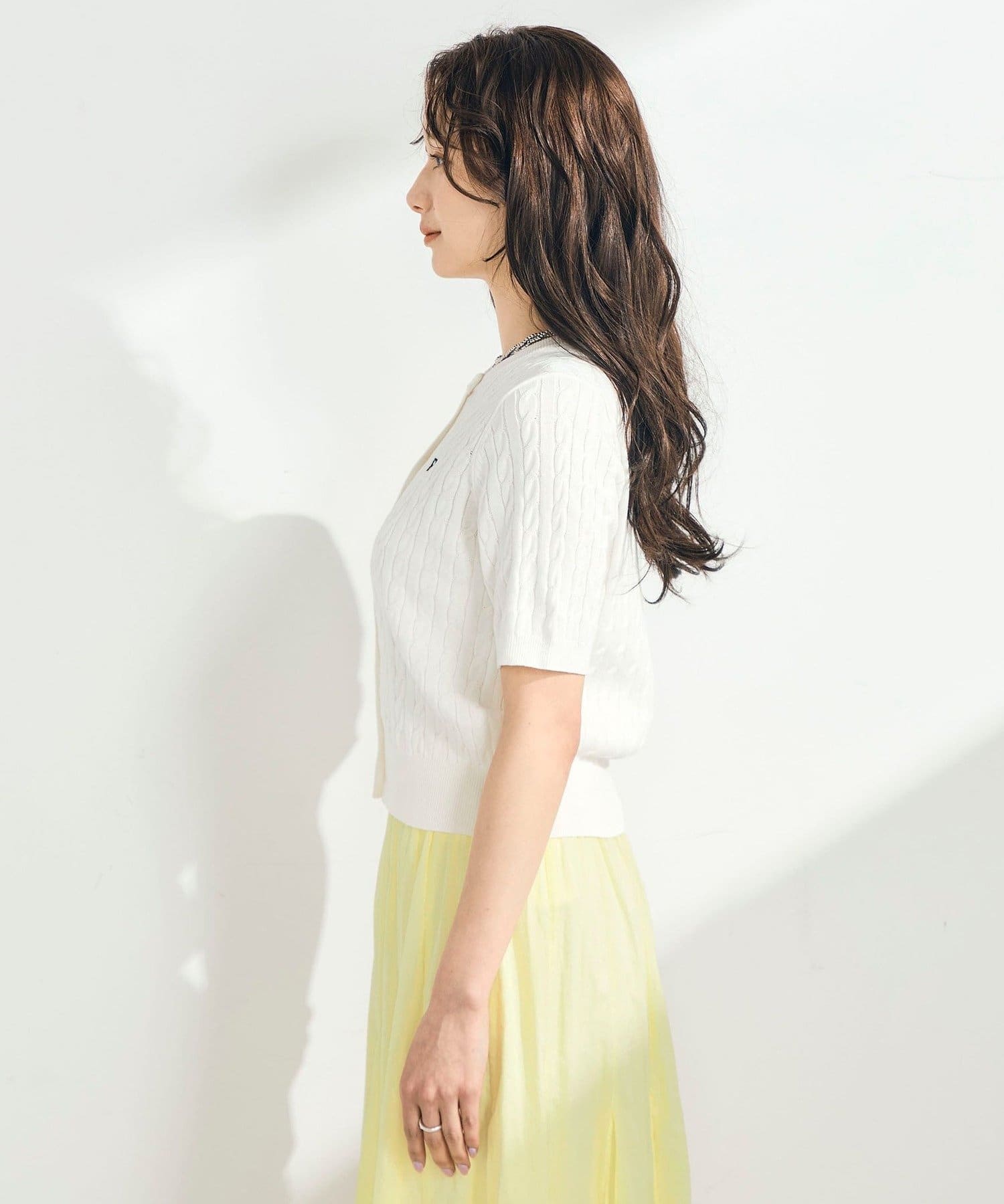 ・カラーバリエーション豊富なFR刺繍ケーブル柄半袖カーディガン
