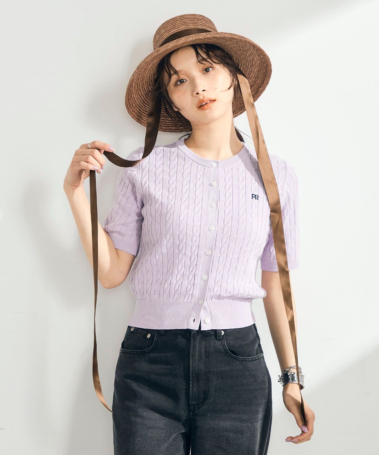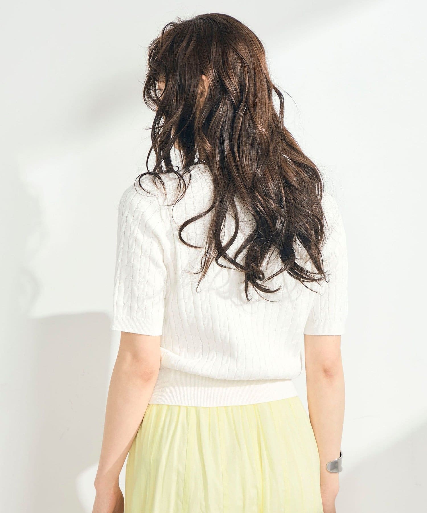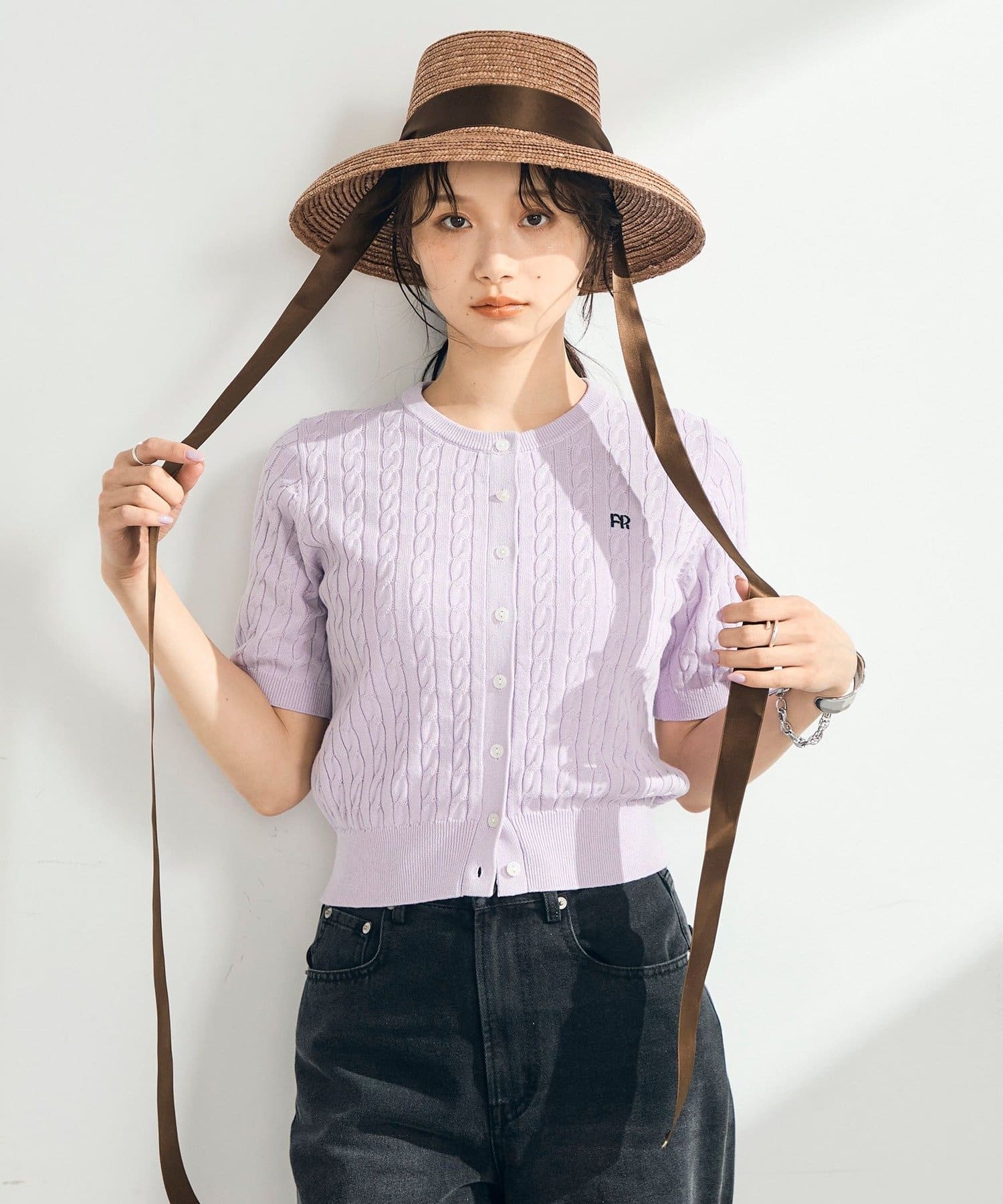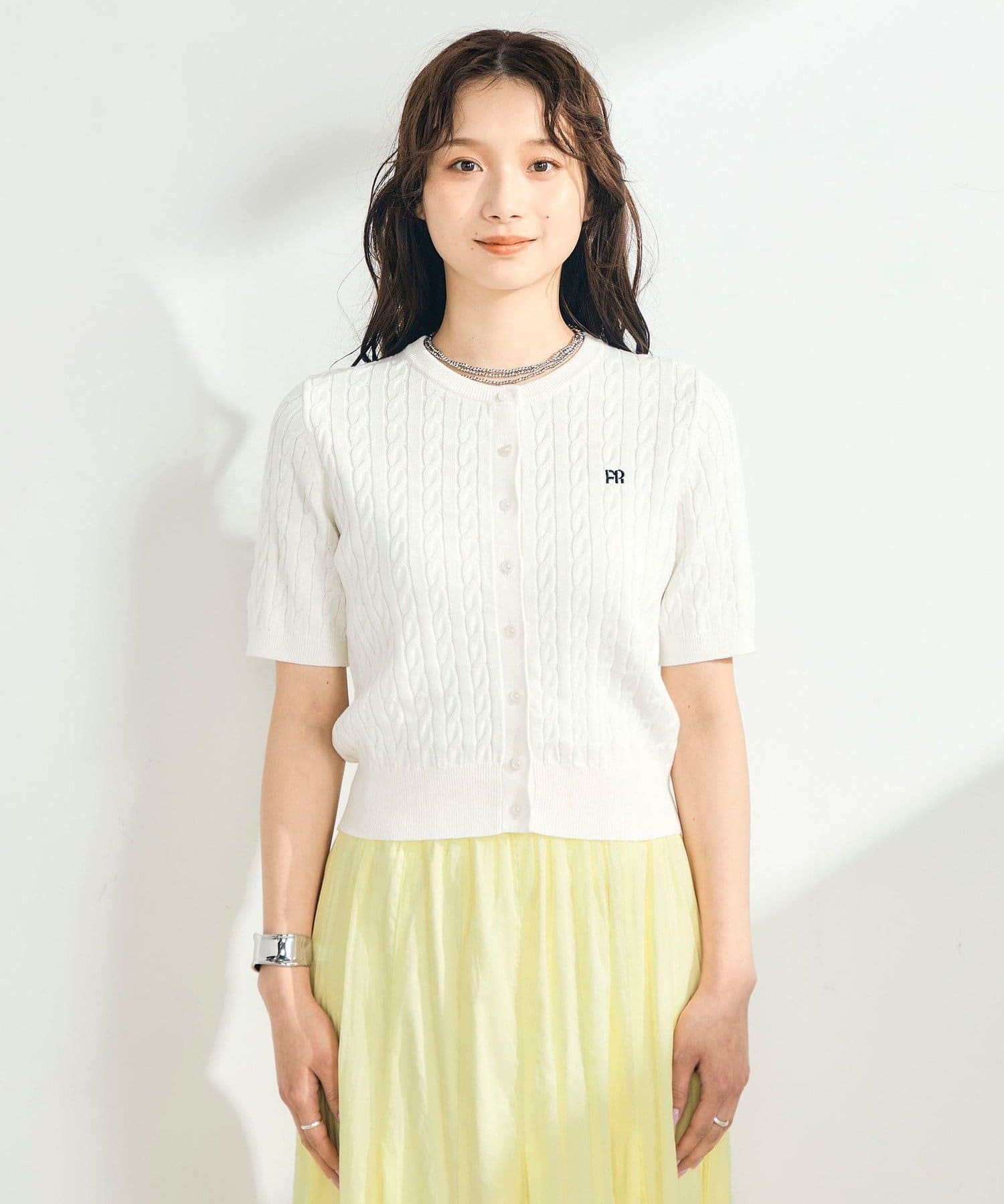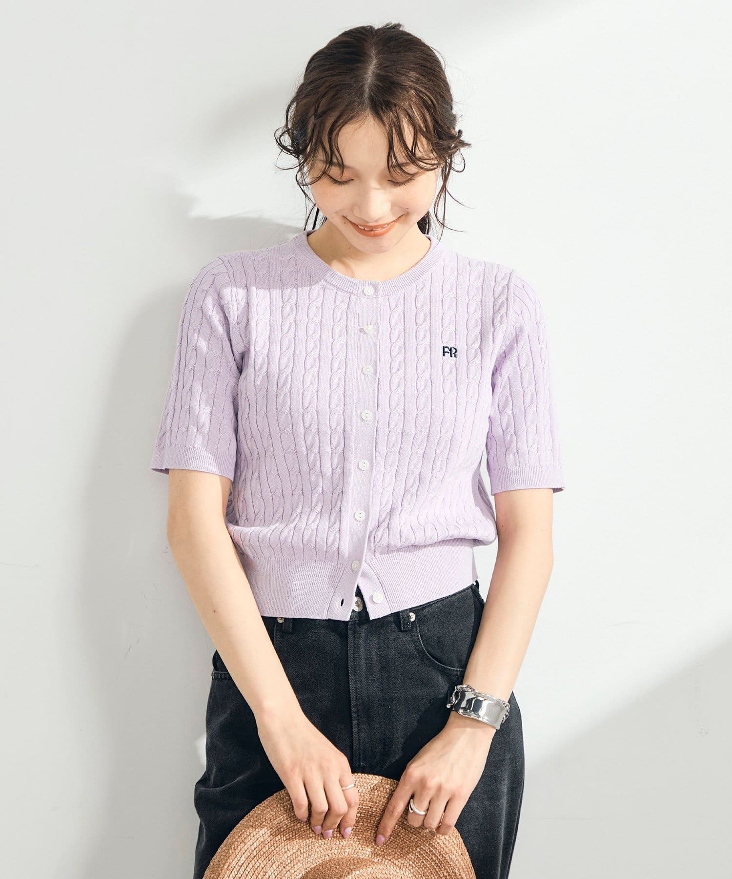 ・カラーバリエーション豊富なFR刺繍ケーブル柄半袖カーディガン