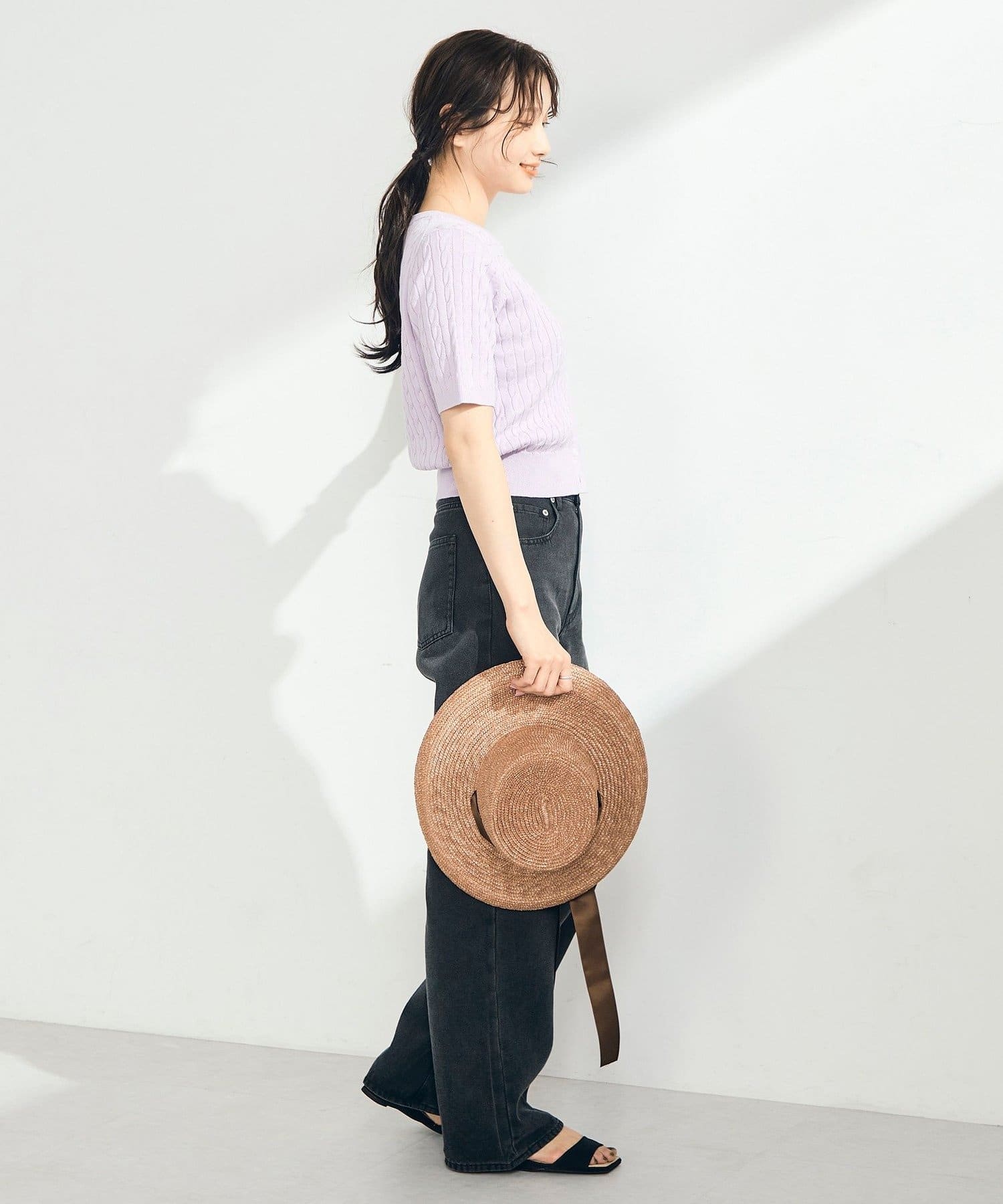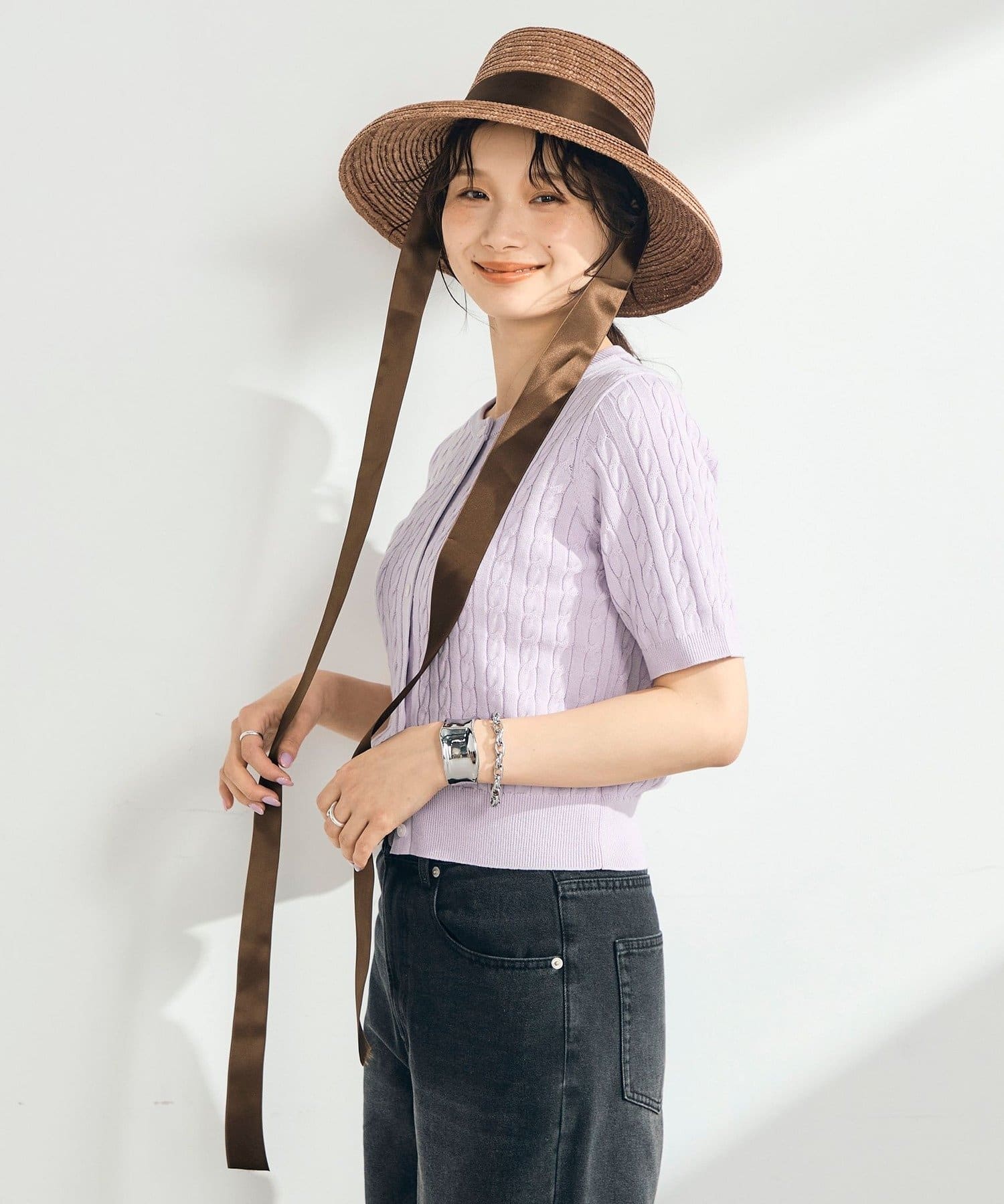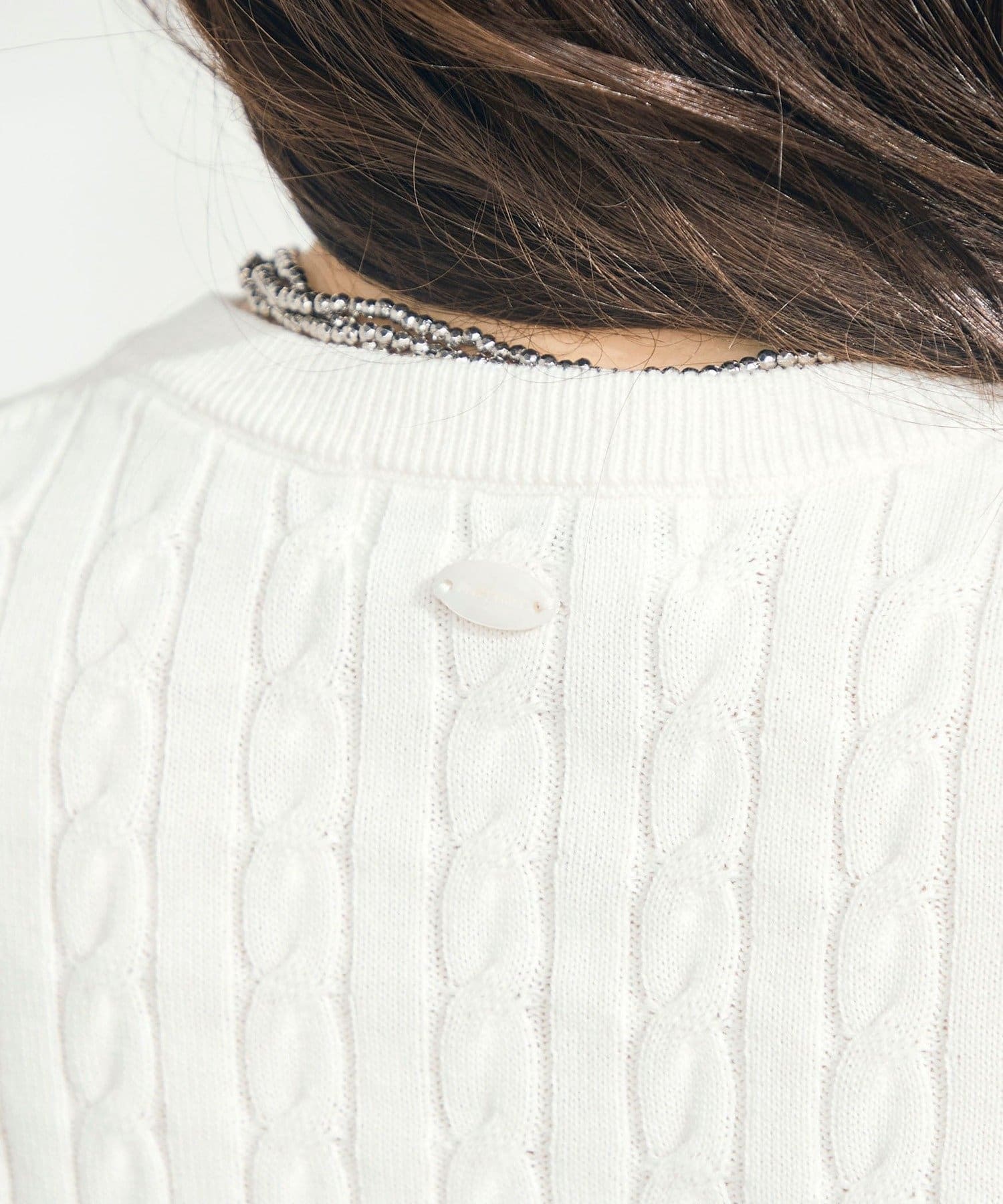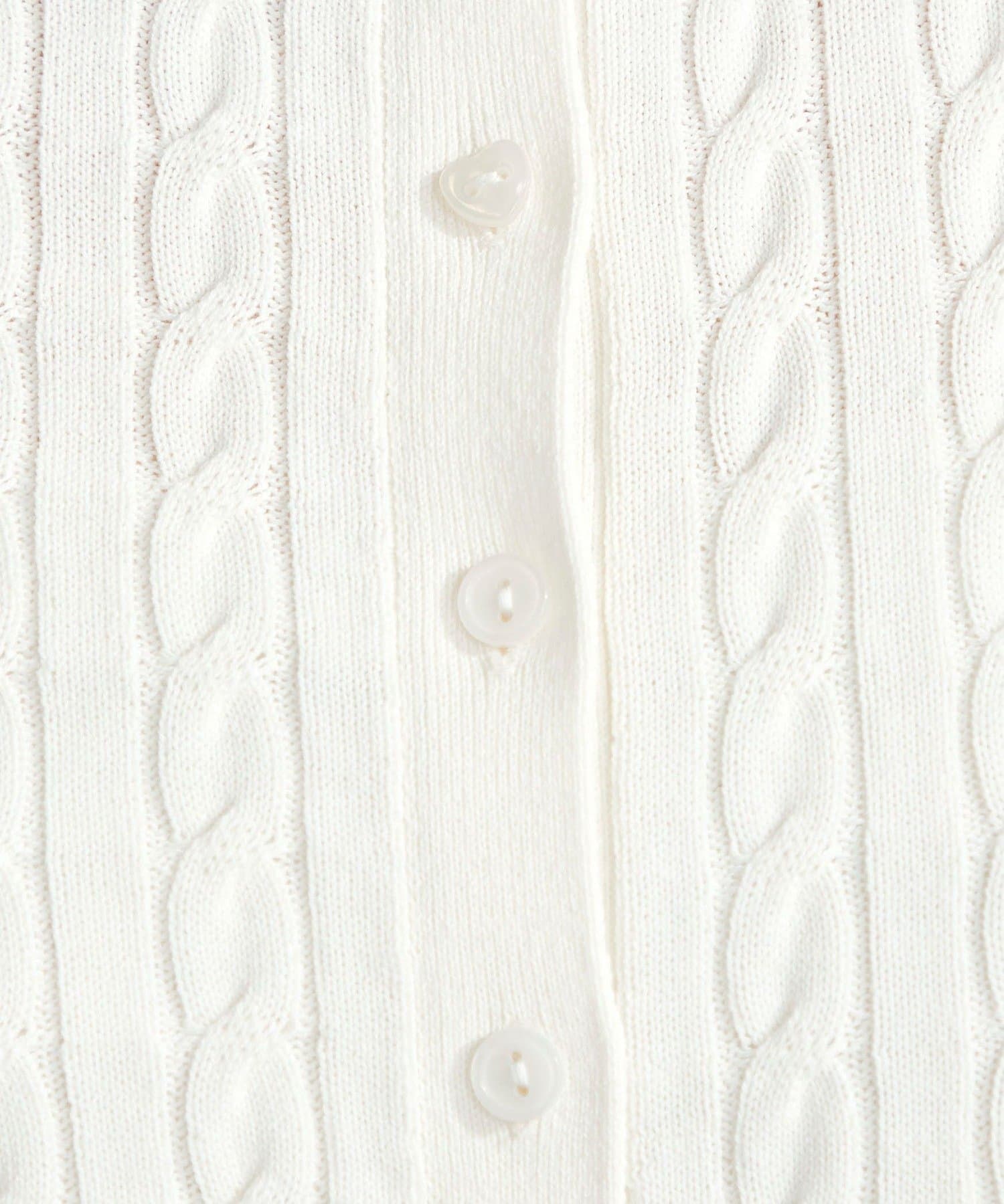 ・カラーバリエーション豊富なFR刺繍ケーブル柄半袖カーディガン