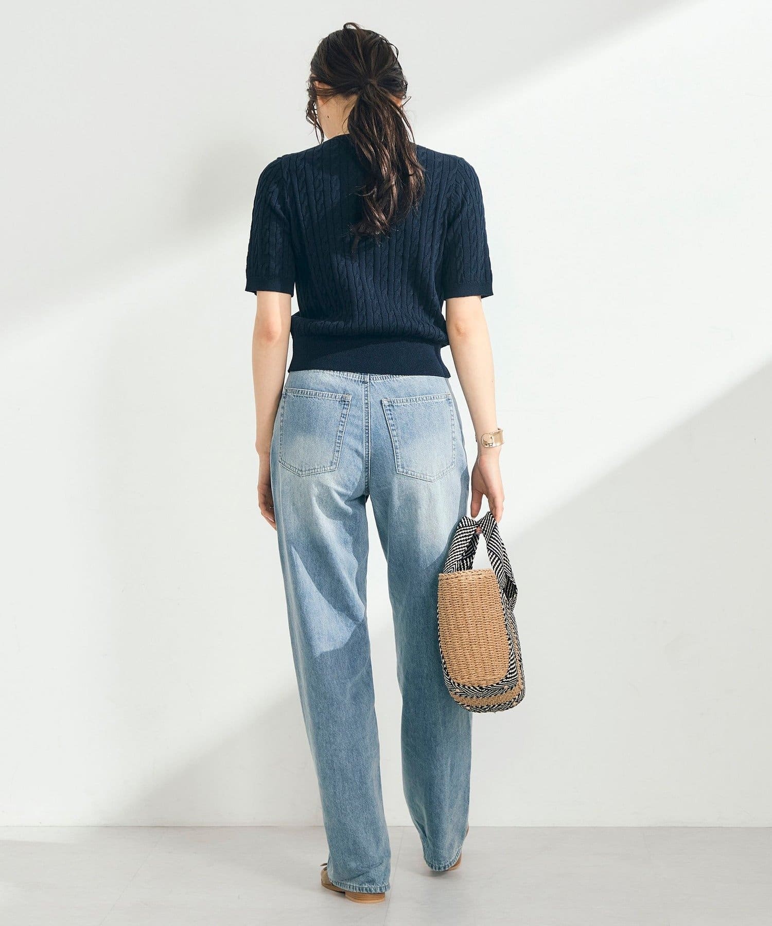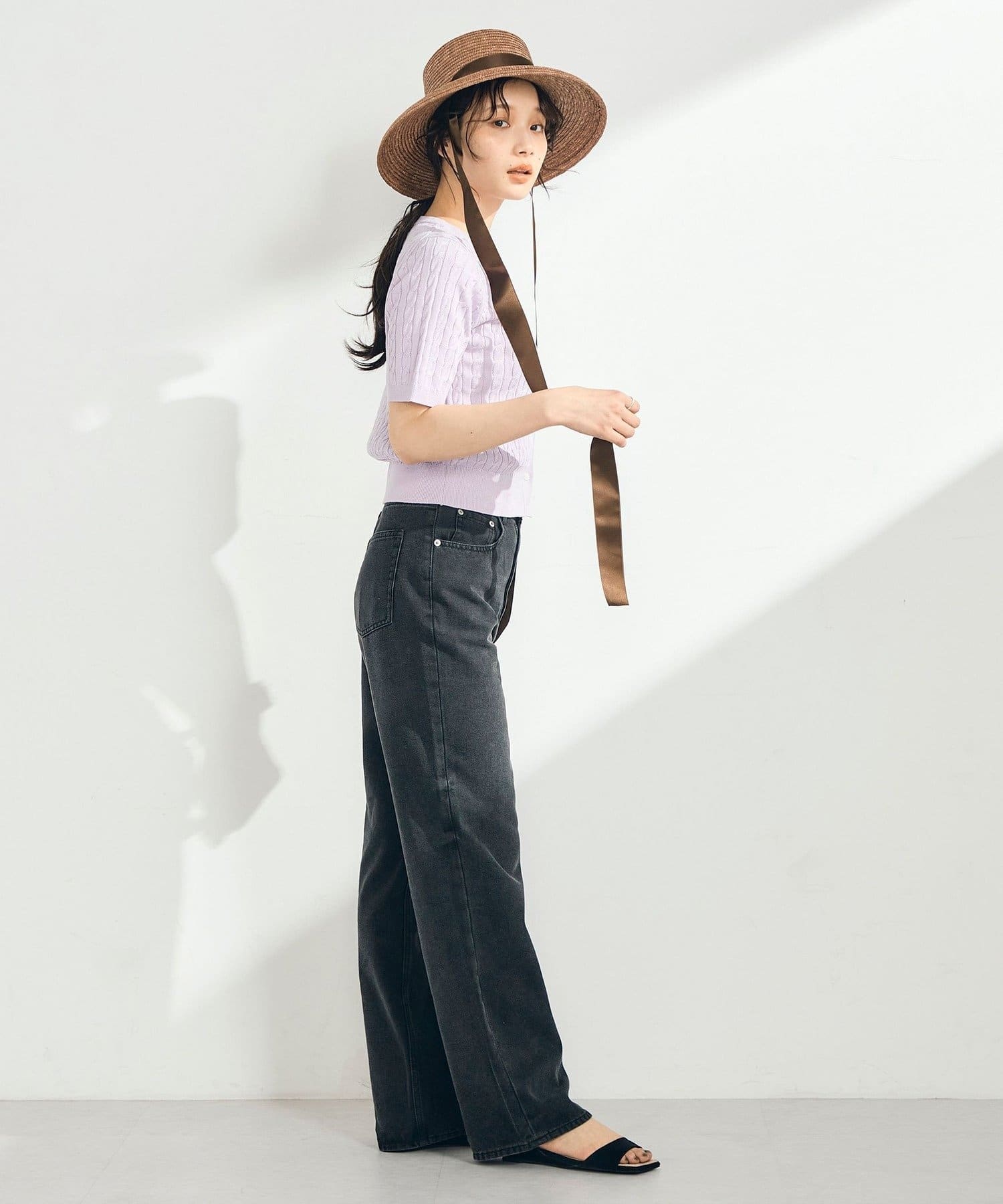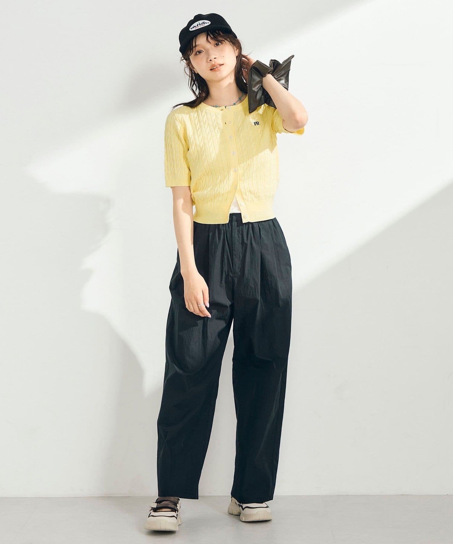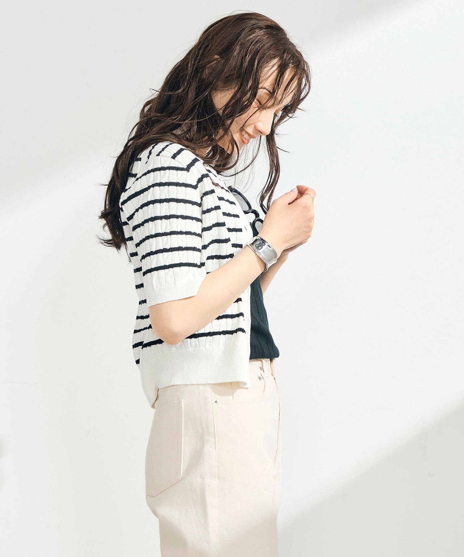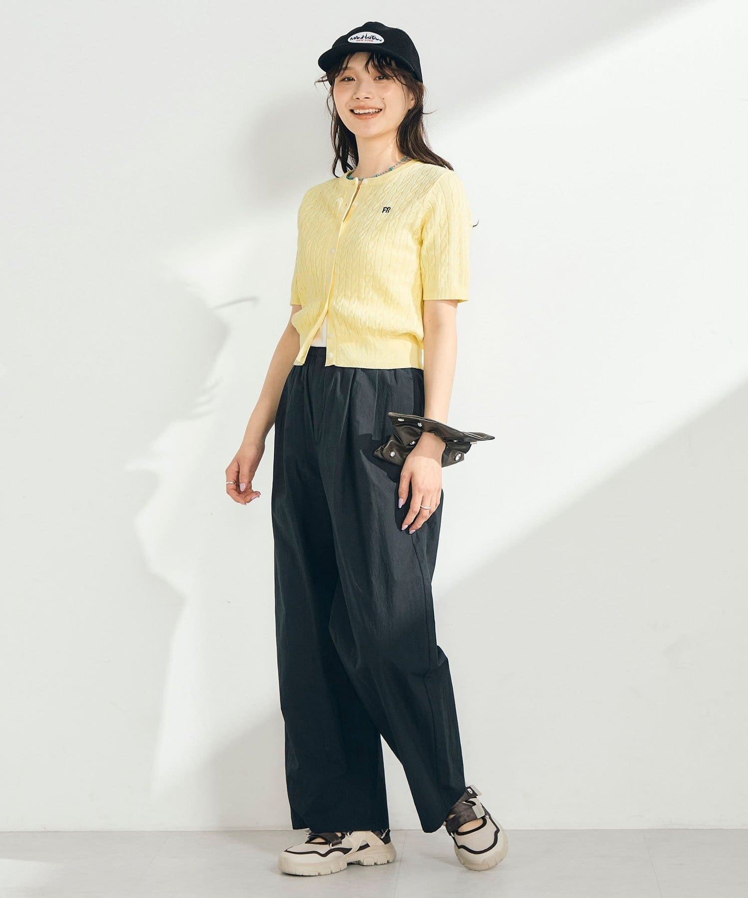 ・カラーバリエーション豊富なFR刺繍ケーブル柄半袖カーディガン