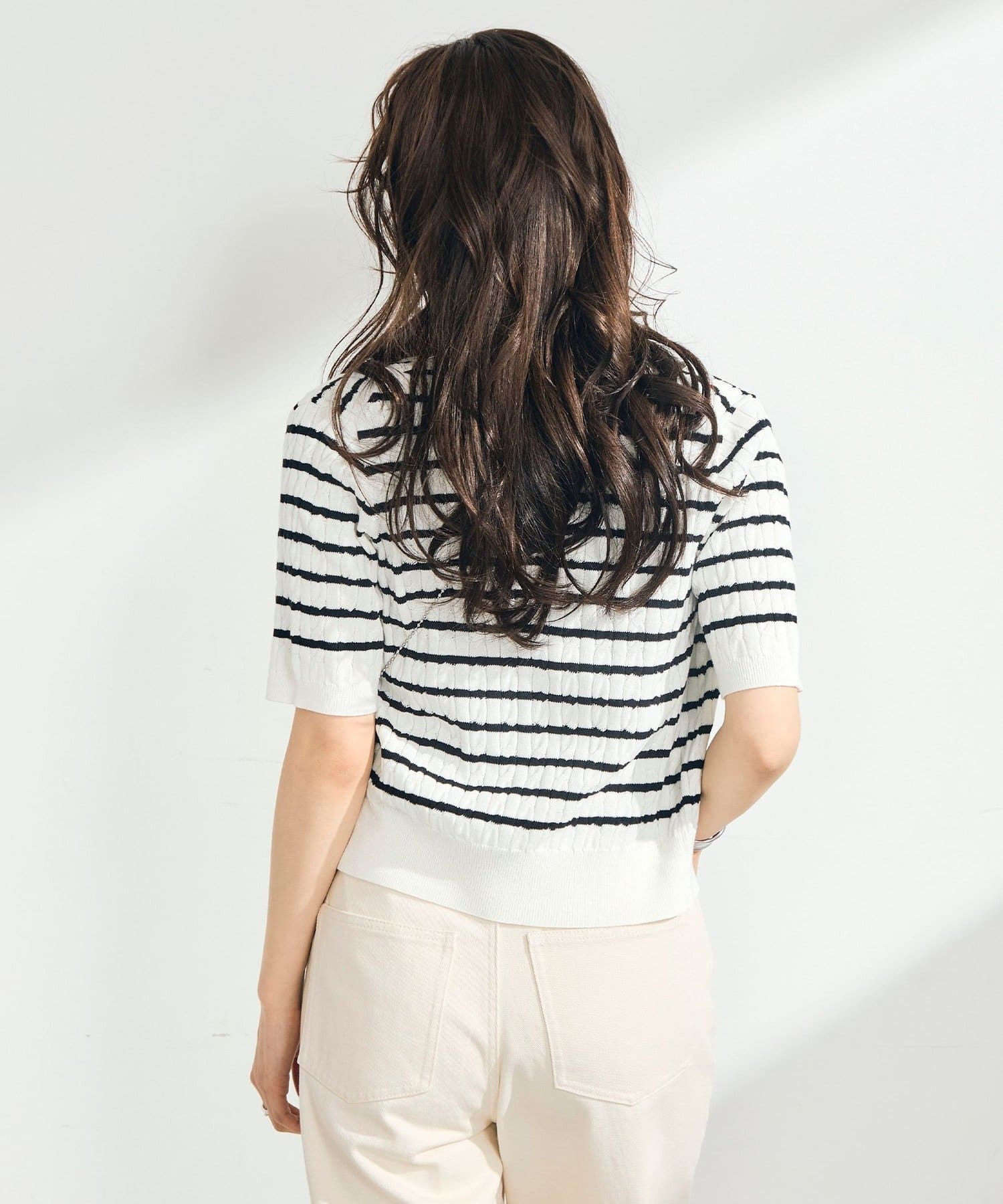 ・ボタンを閉じて1枚着としても着やすく、二の腕をカバーする長めの半袖丈◎
