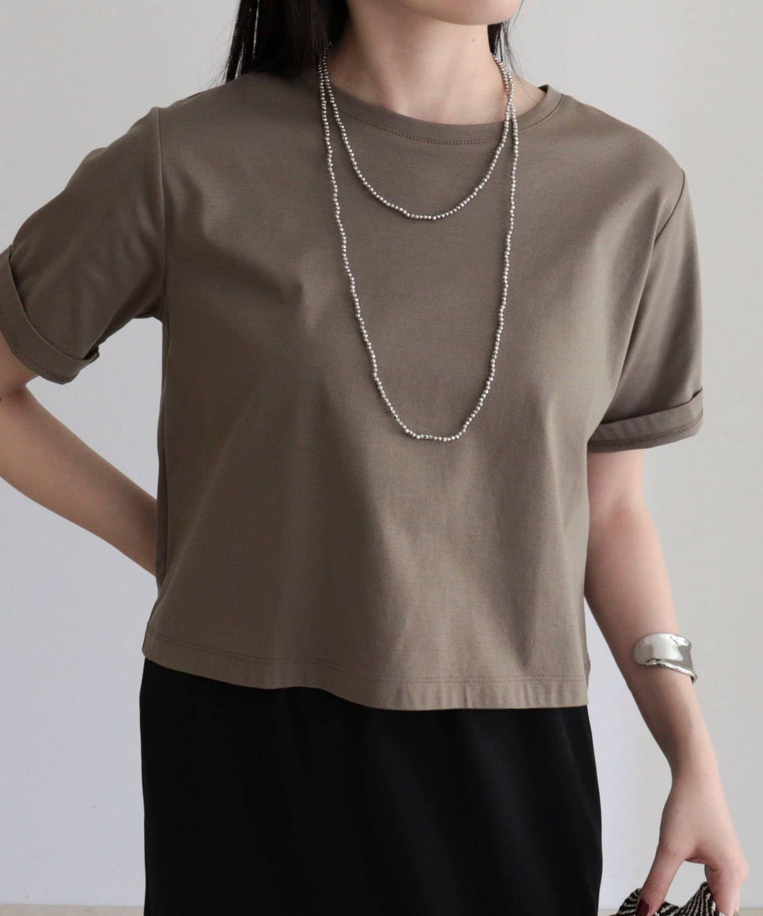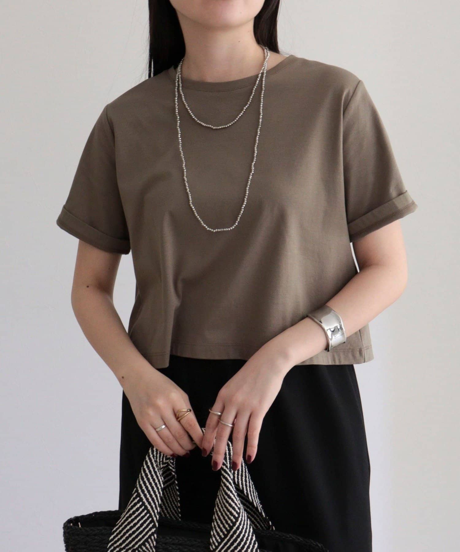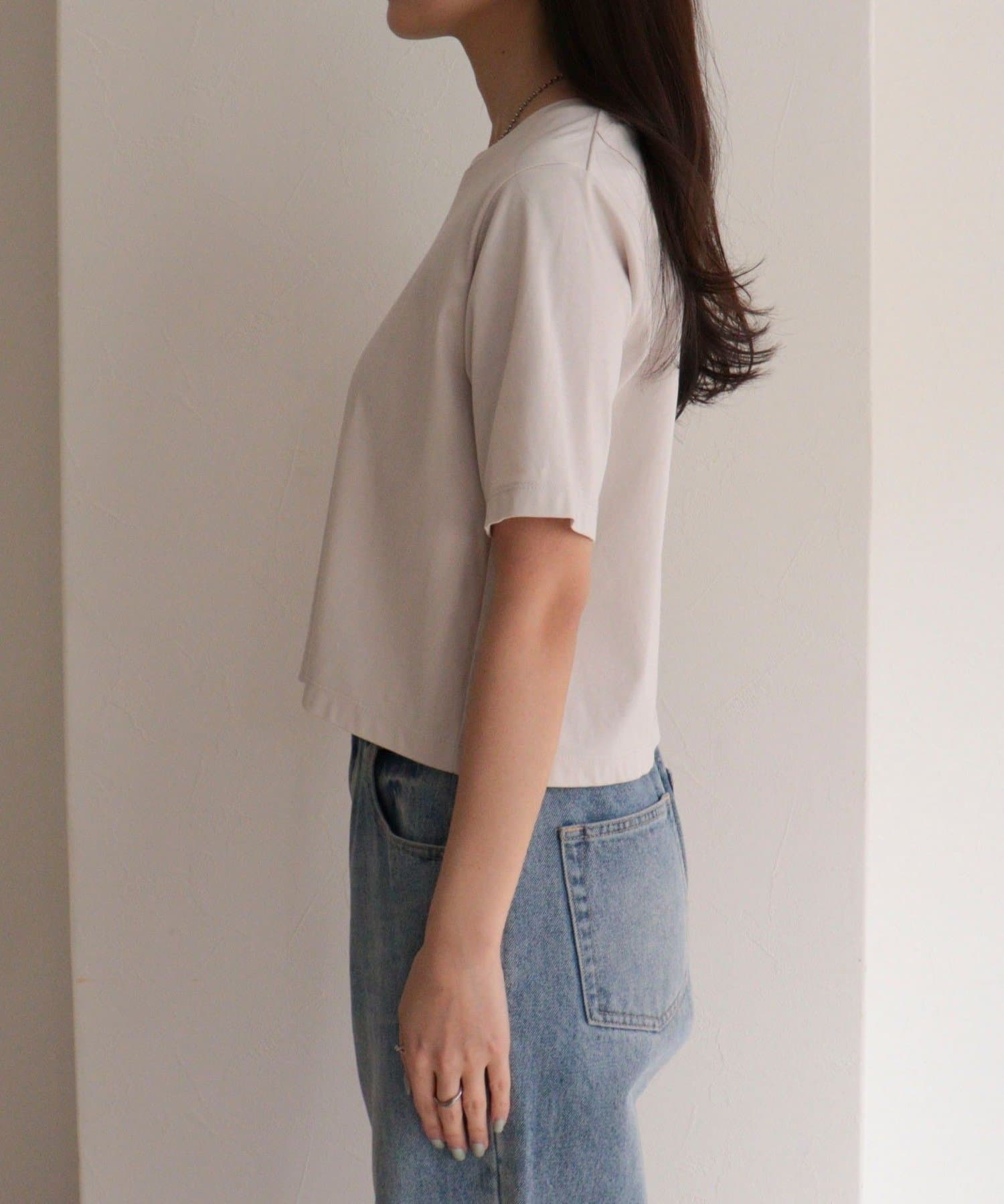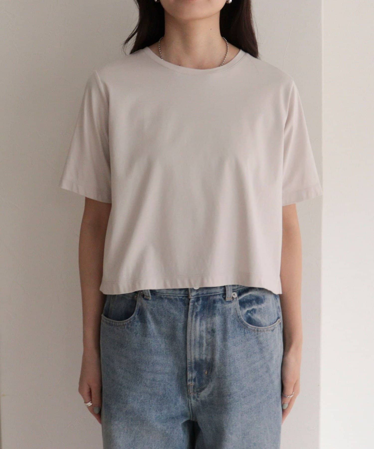 ・シルケット加工を施した、なめらかなスムース素材のクロップドTシャツ
