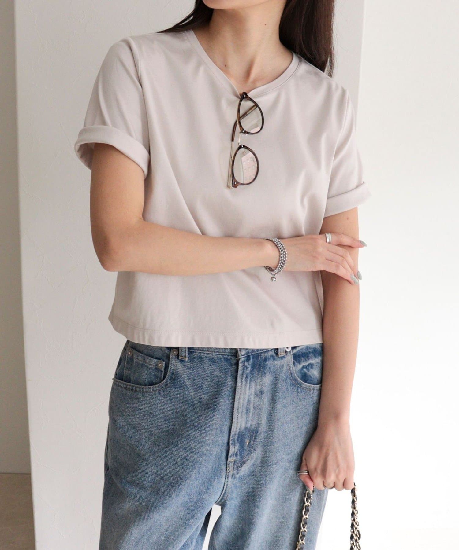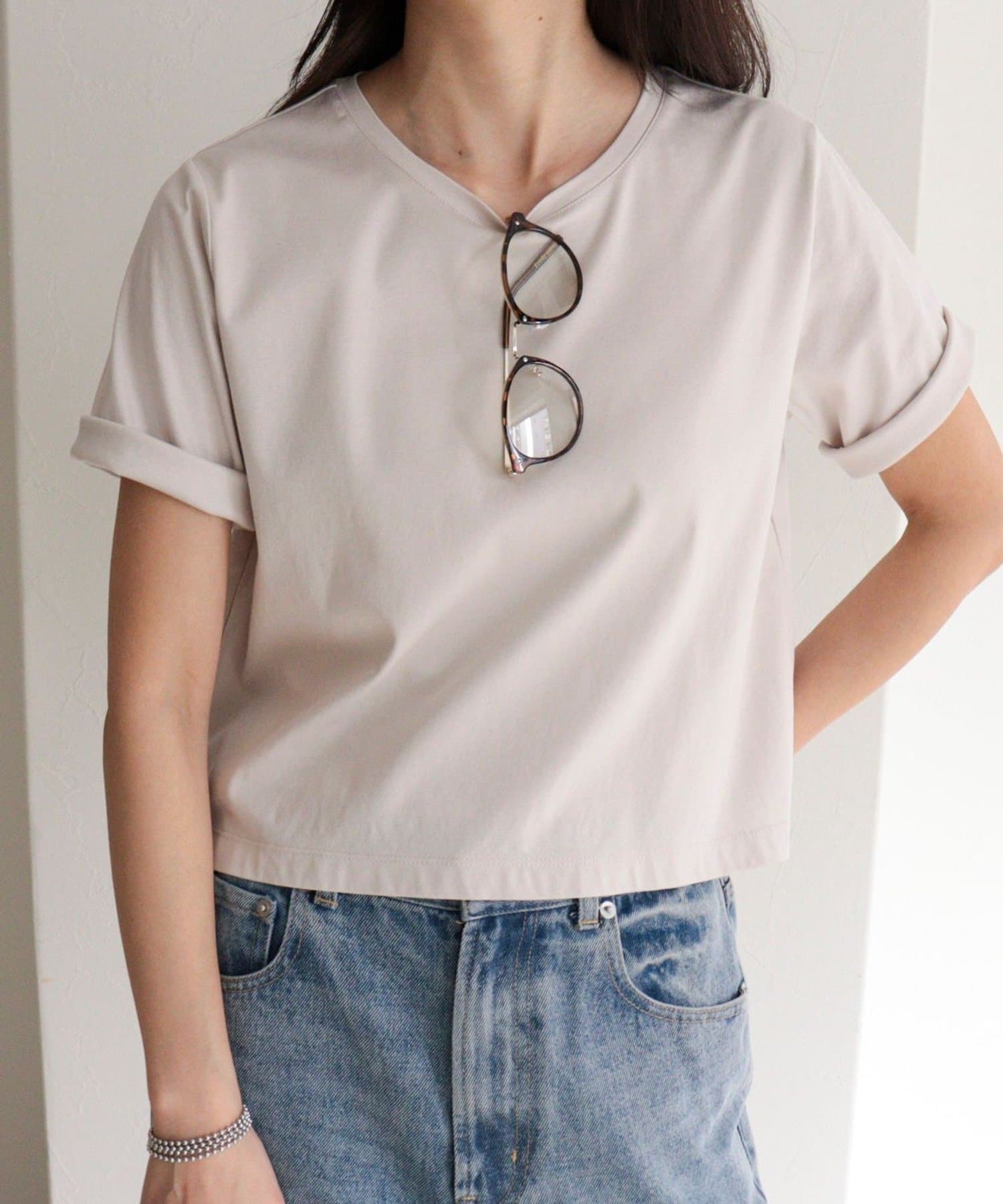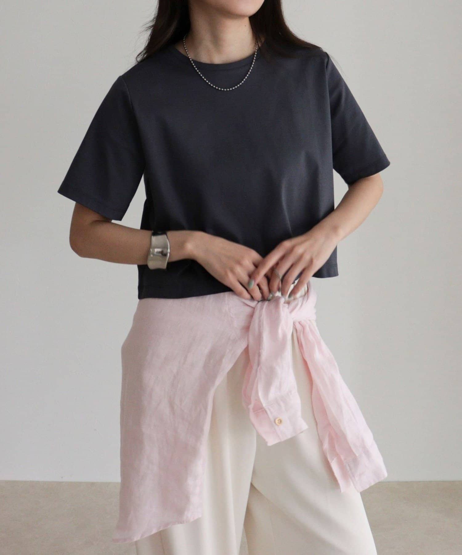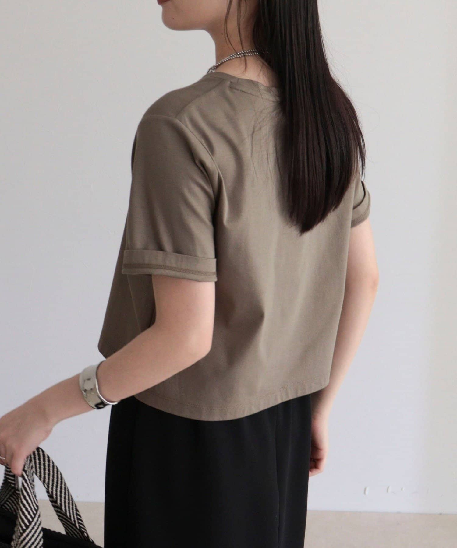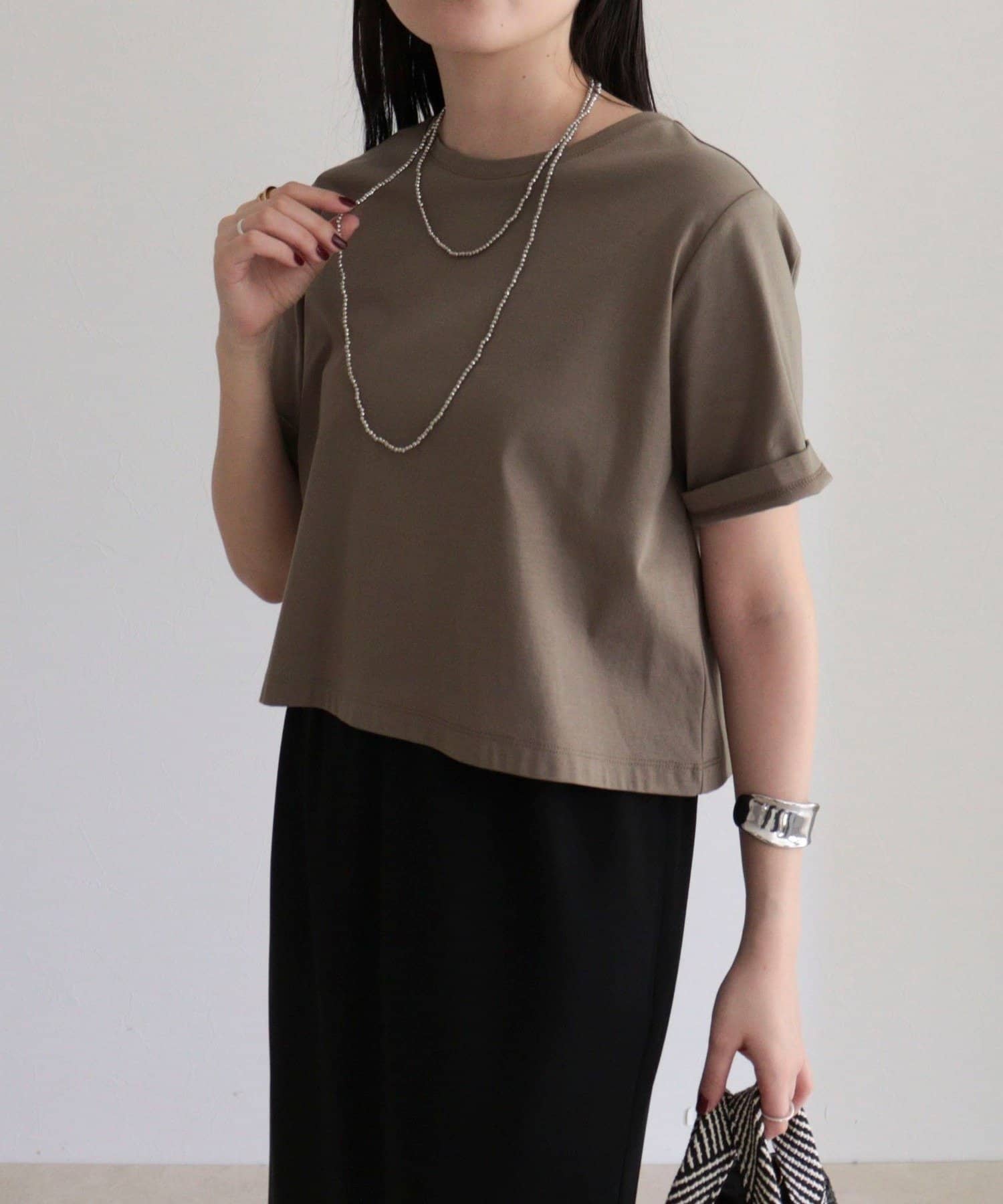 ・シルケット加工を施した、なめらかなスムース素材のクロップドTシャツ