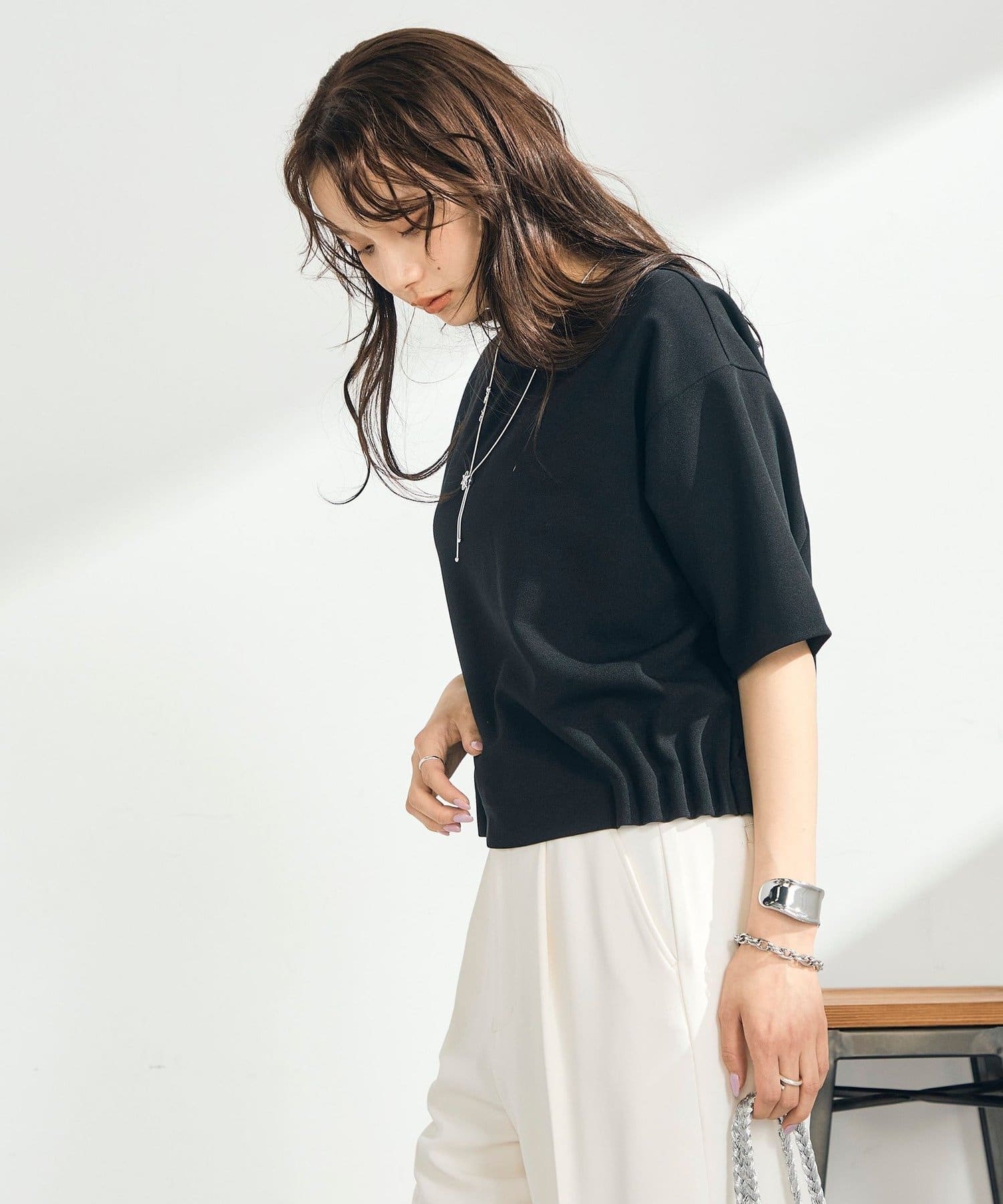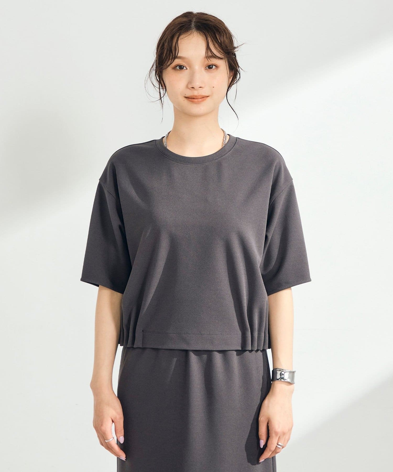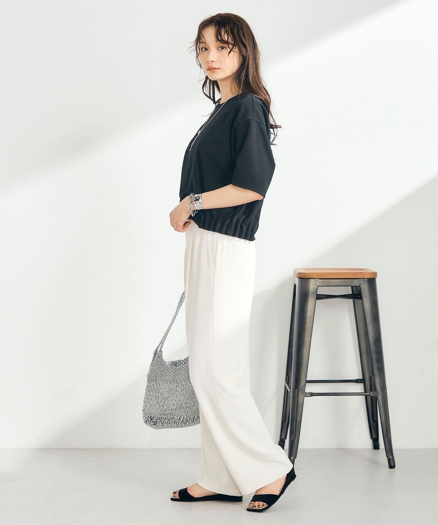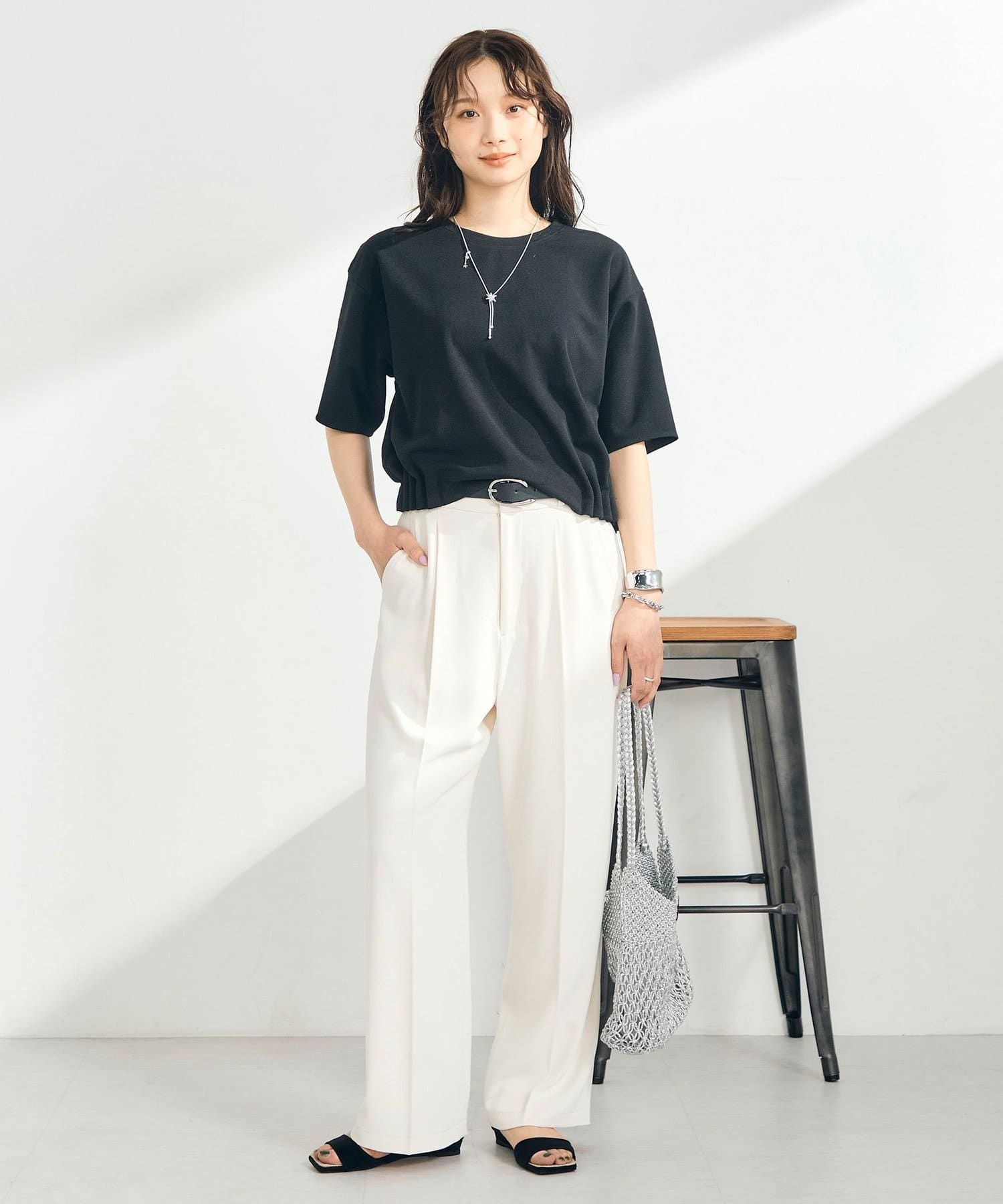 ・裾にゴムを入れた立体的なシルエットで体のラインを拾いにくくすっきりとした印象に仕上げました