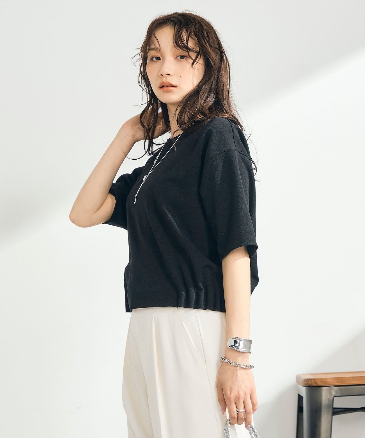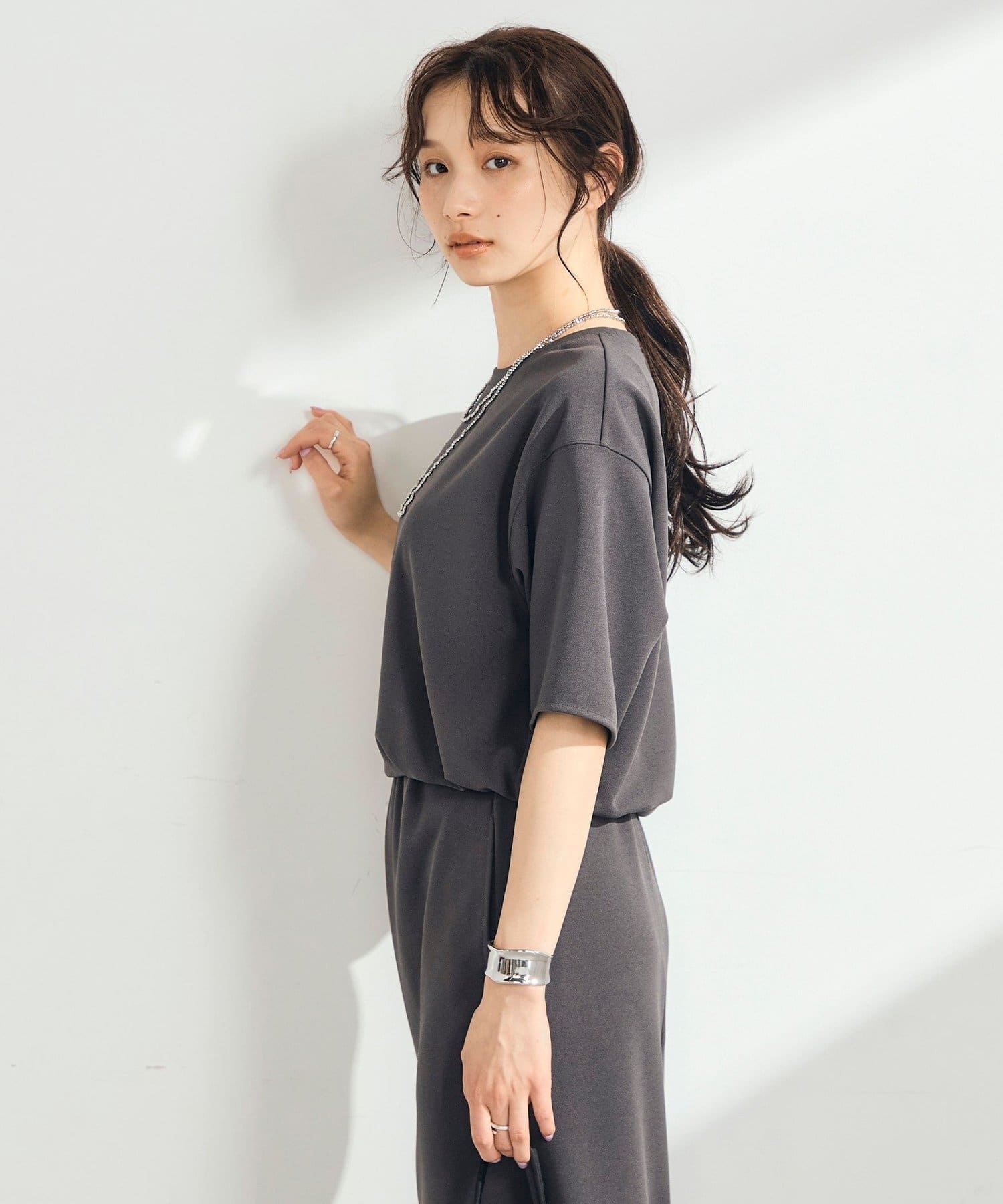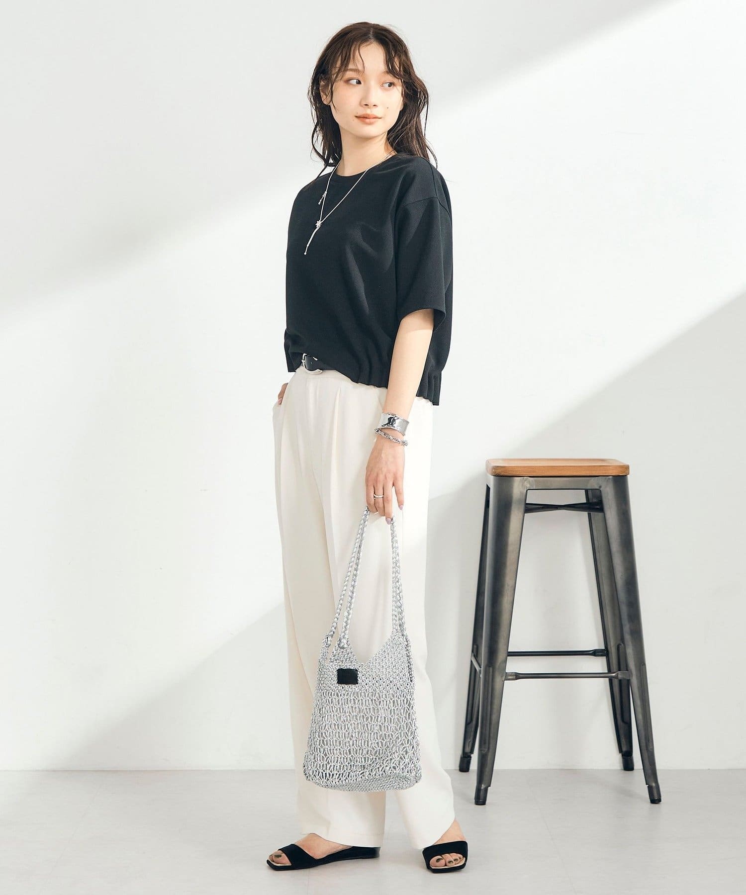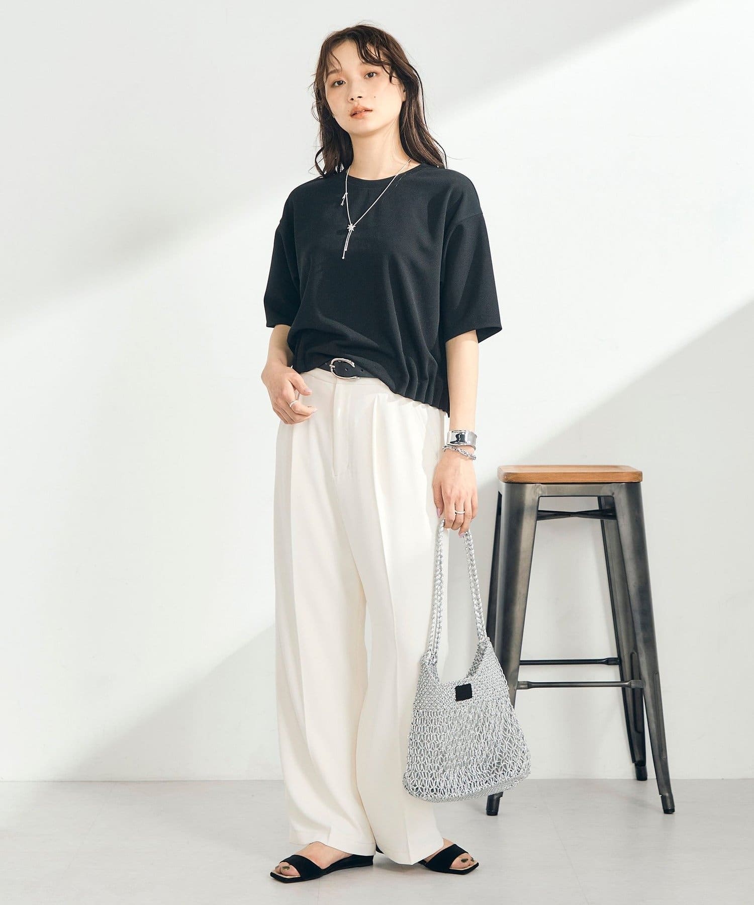 ・裾にゴムを入れた立体的なシルエットで体のラインを拾いにくくすっきりとした印象に仕上げました