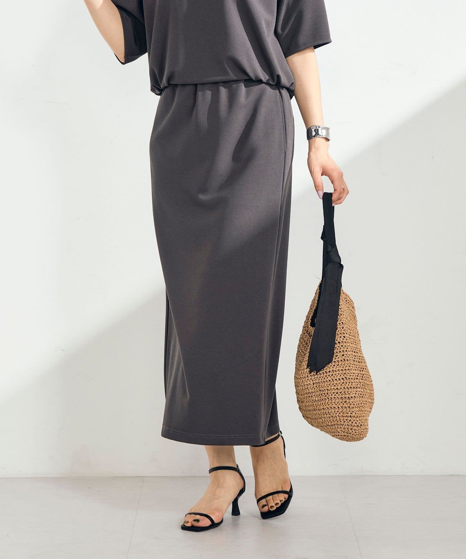 ・上品な表面感が魅力のカットジョーゼット素材を使用したタイトスカート