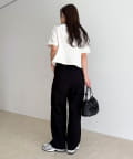 *この製品は、生地の特性上引っかかると糸が飛び出しやすい傾向があります。着用時にはベルトやバック、周囲の壁など表面の粗いものとの摩擦や引っかかりにご注意ください。