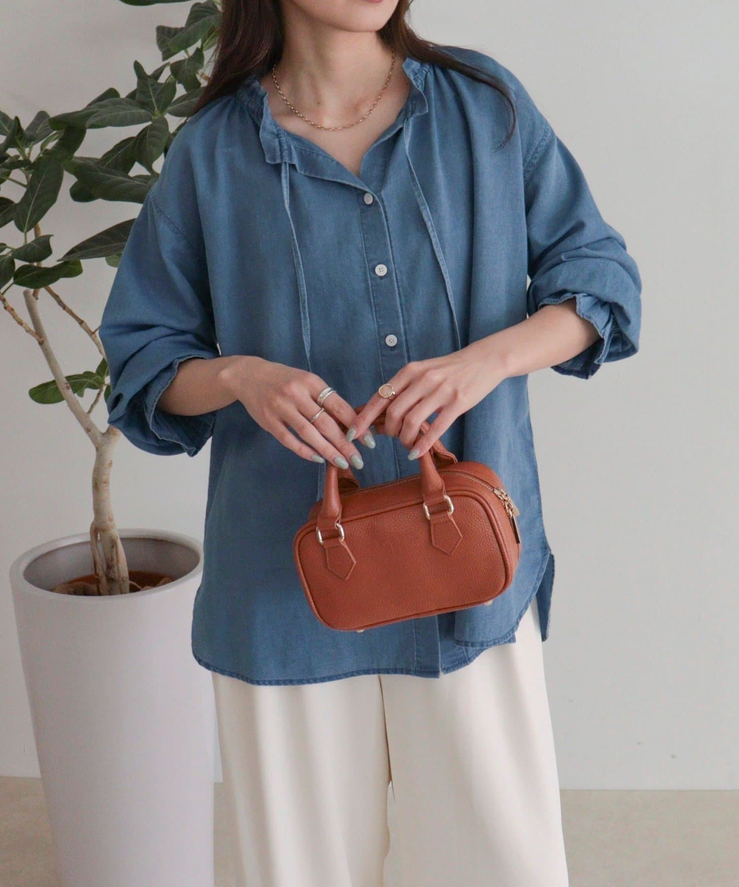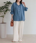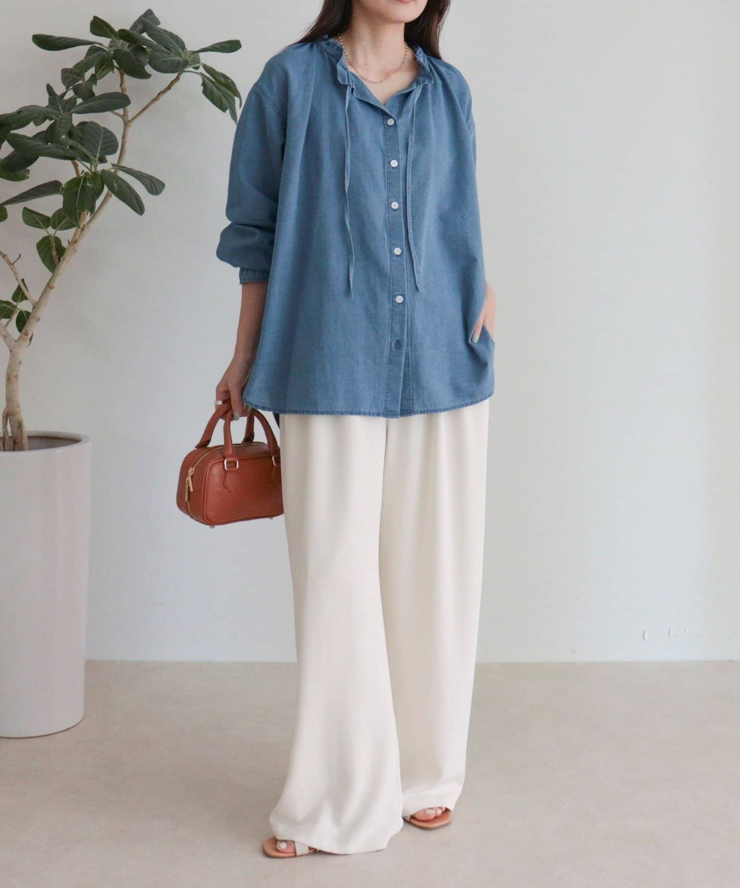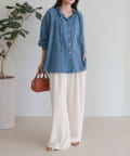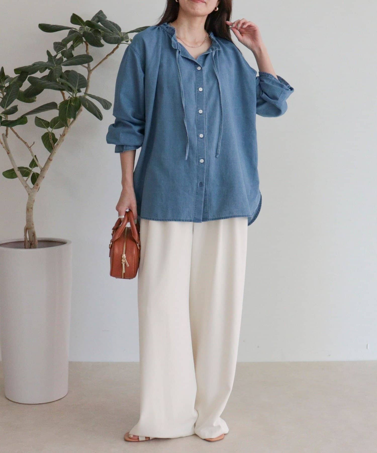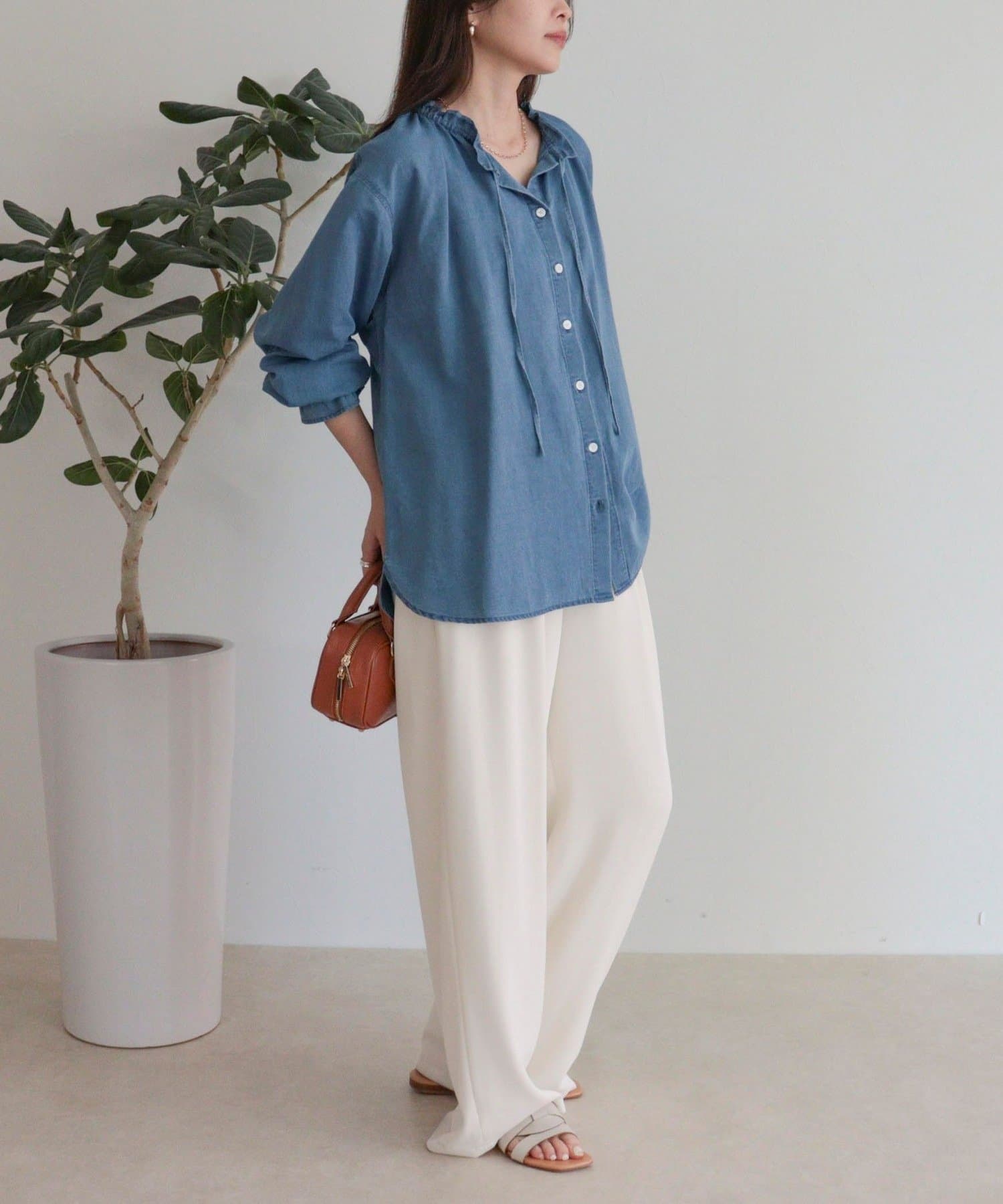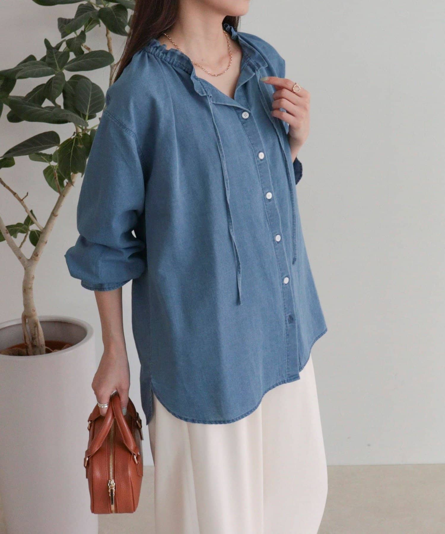 フリルカラーが大人可愛いデニムブラウス
