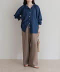 ・ゆったりとした身幅と腰回りが隠れる丈感で、トップスイン・アウトどちらでもバランスよく決まり、体型カバーも◎