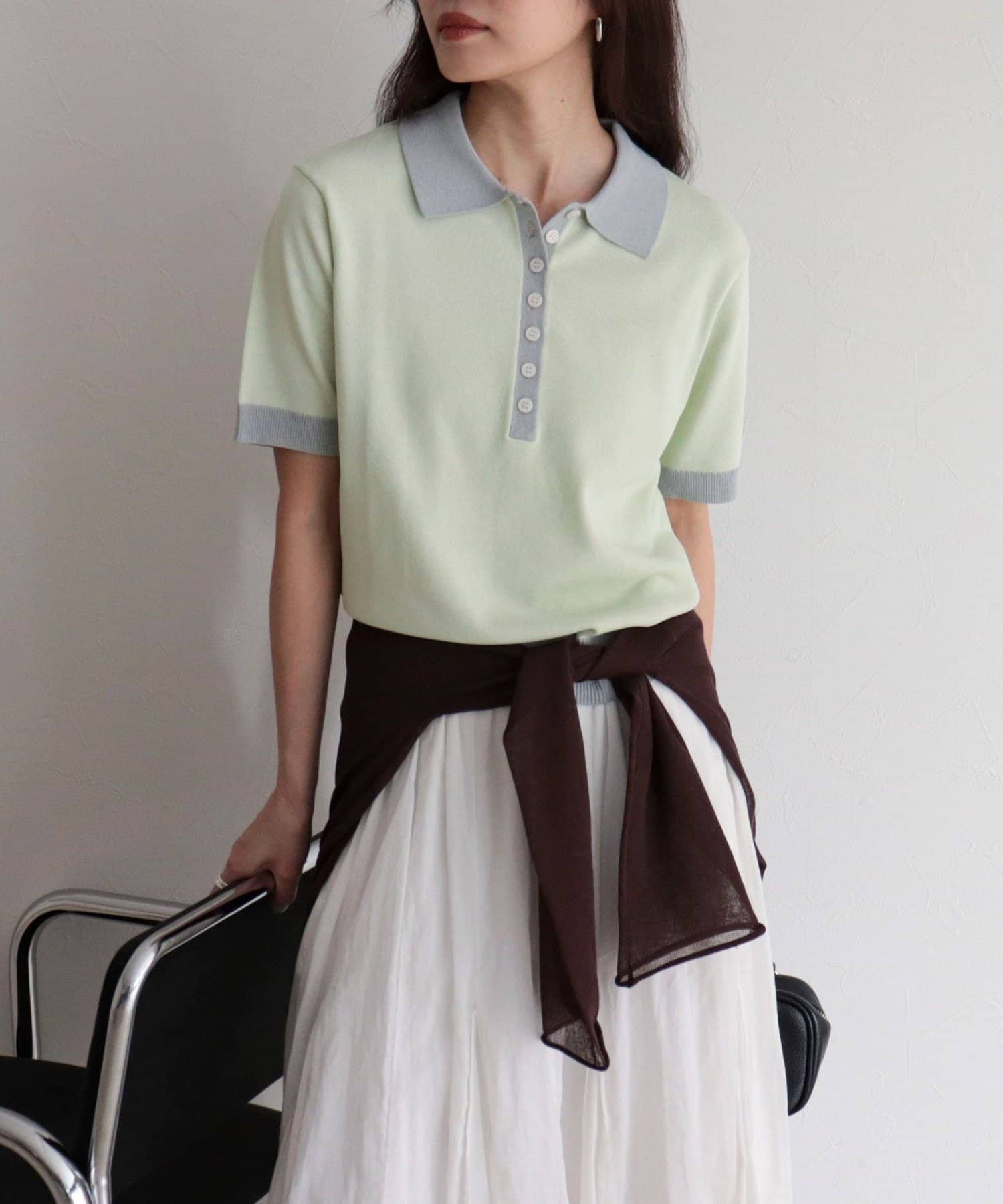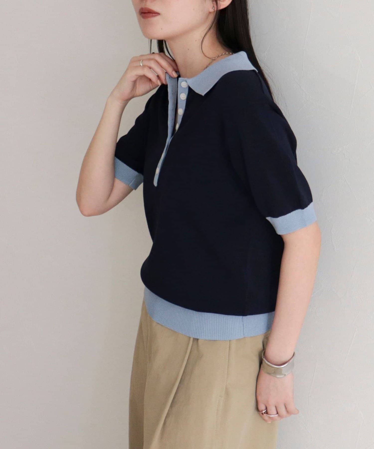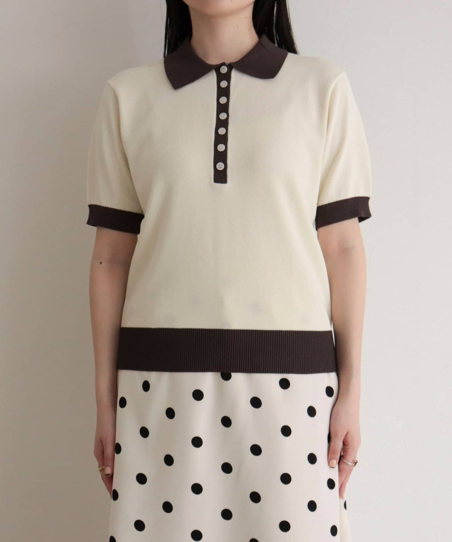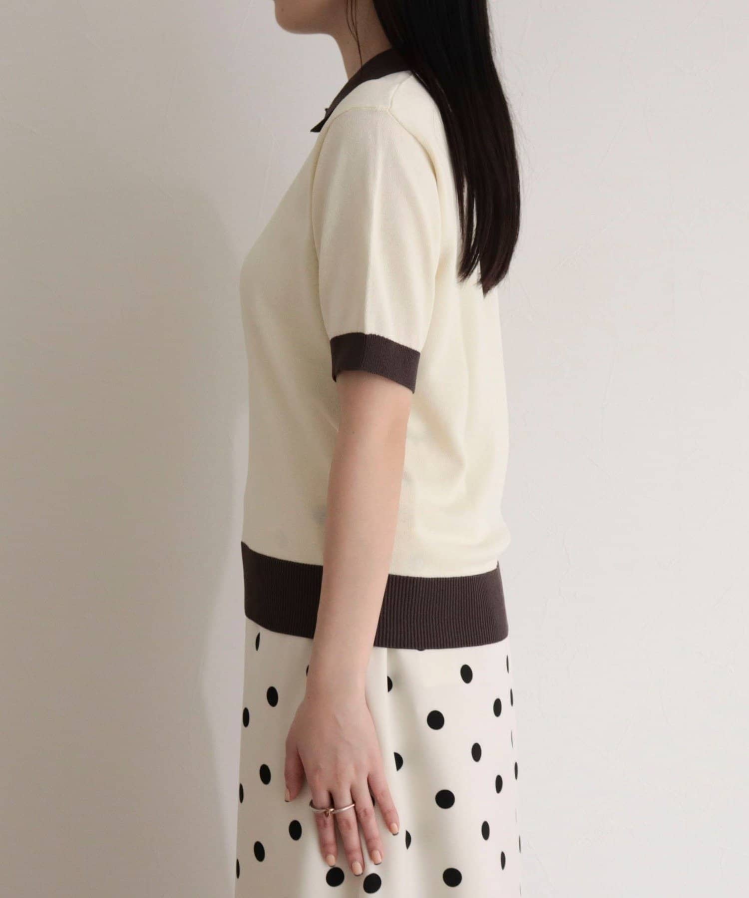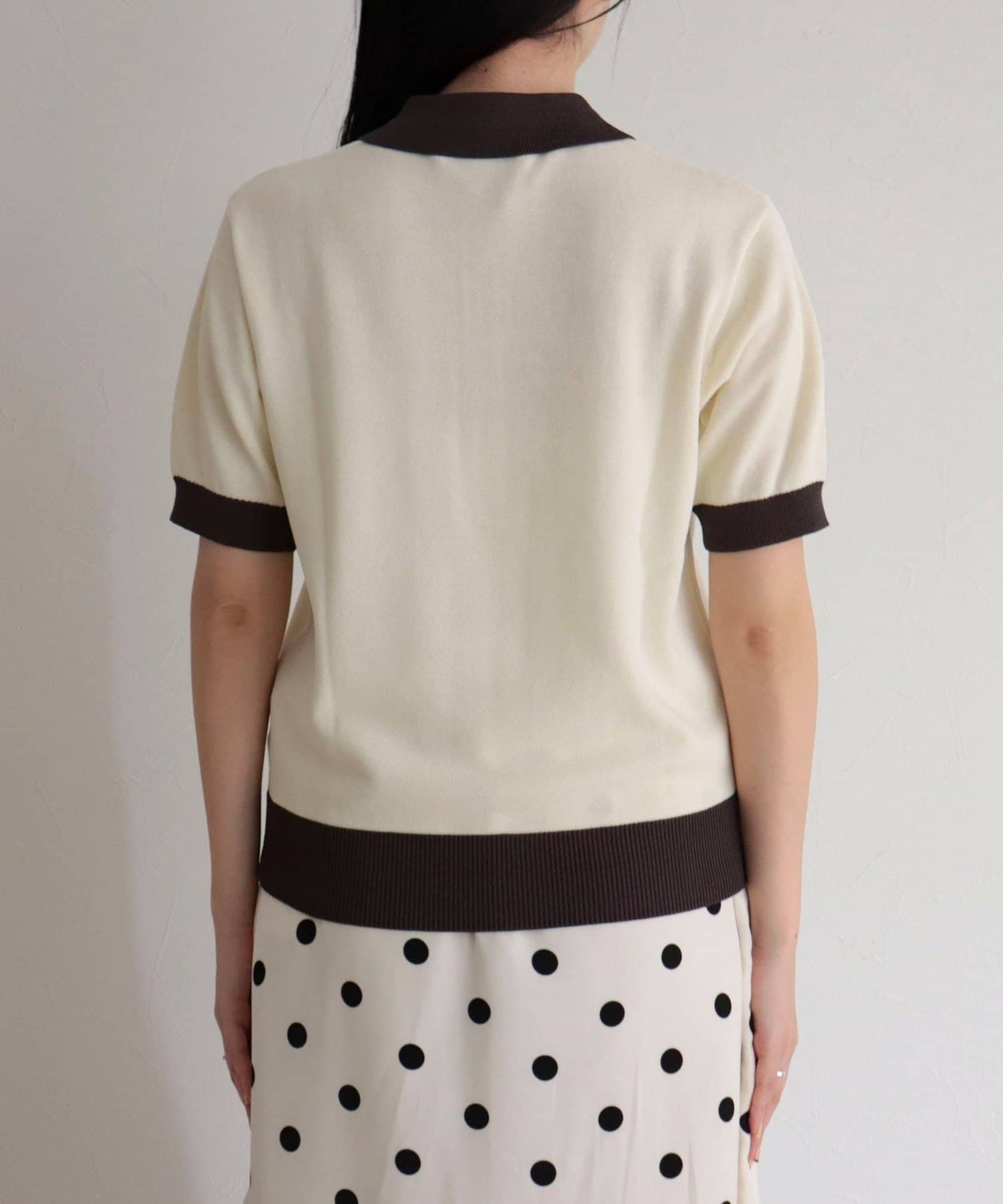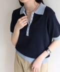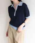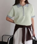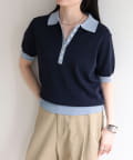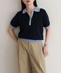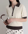 TOP > FREDY & GLOSTER > レディース > トップス > ニット/セーター > 【接触冷感】配色ポロ衿半袖ニットプルオーバー