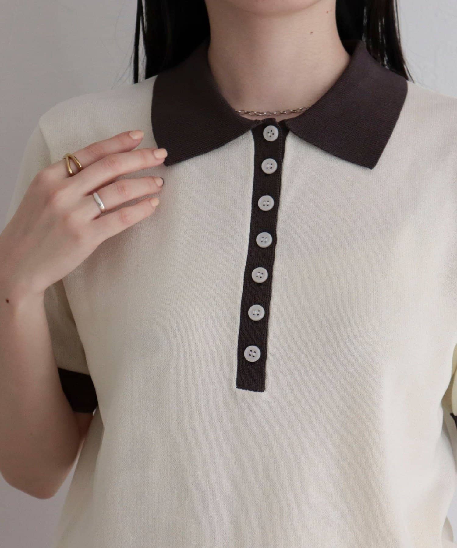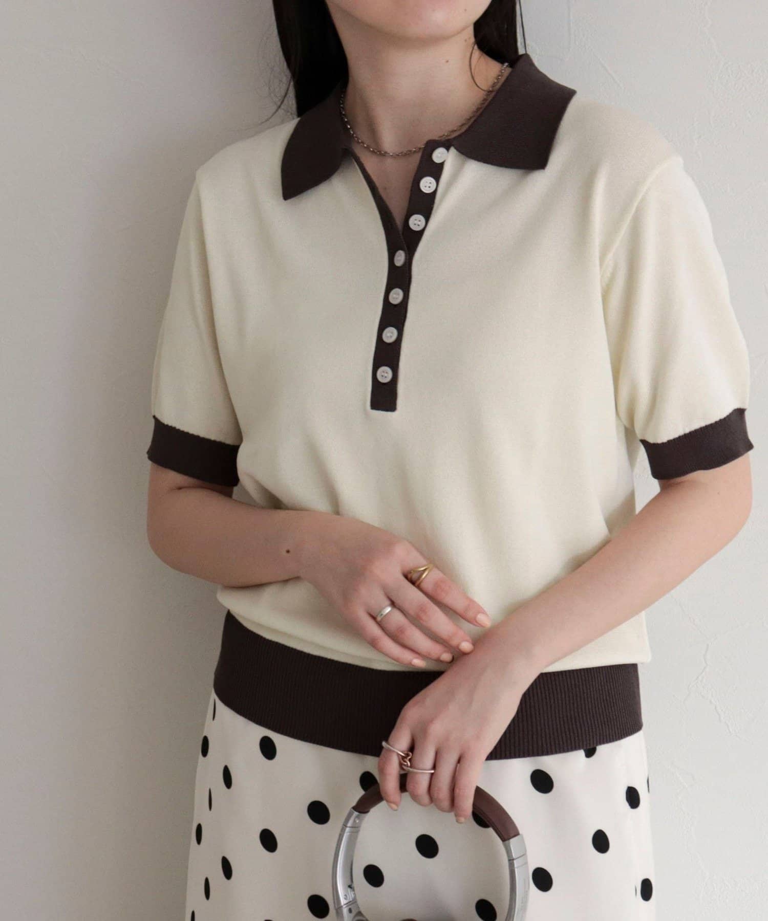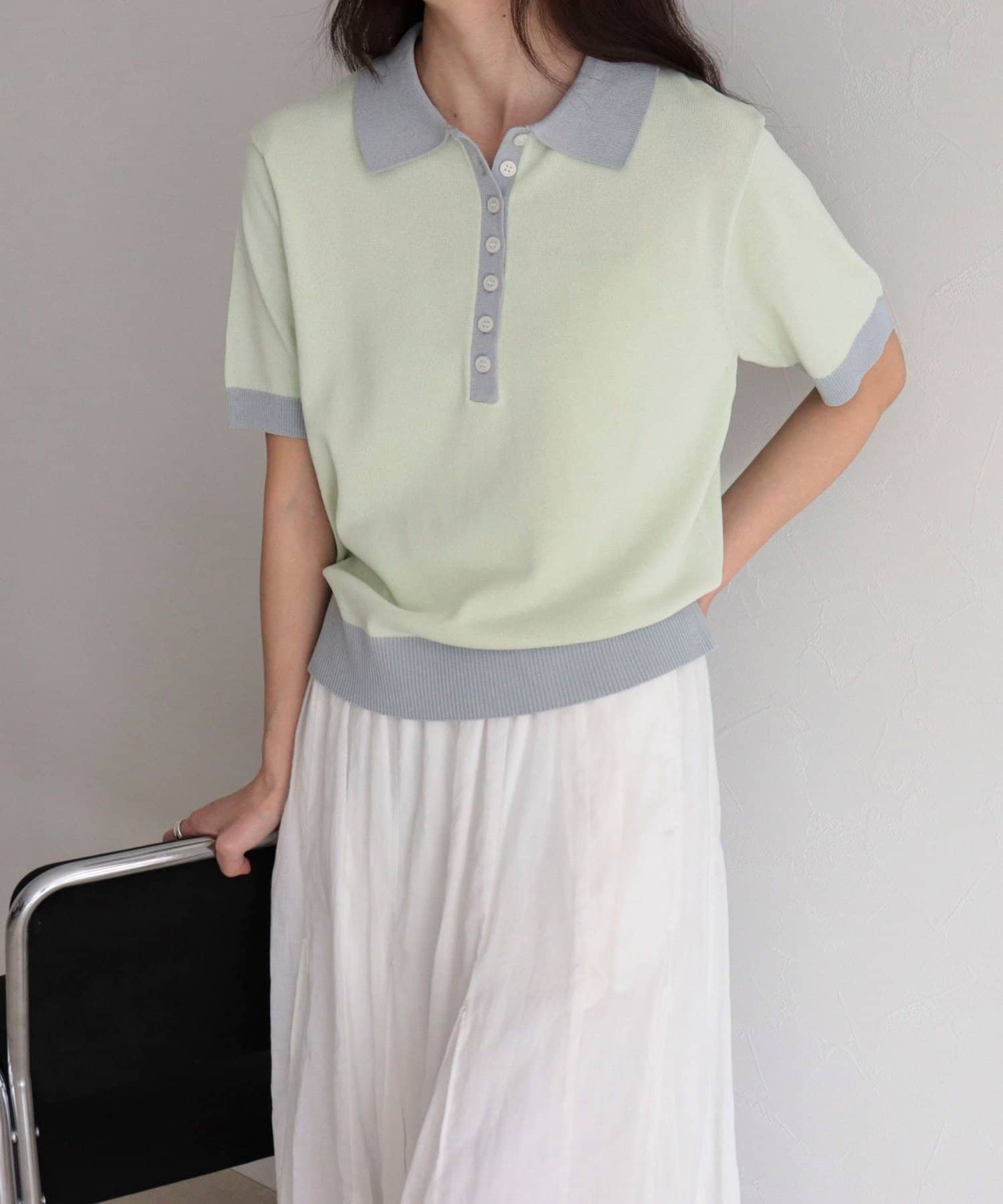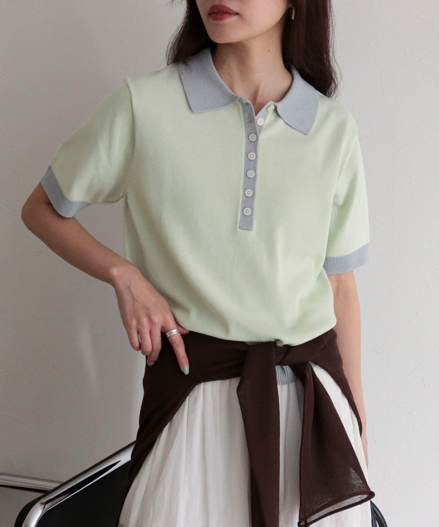 TOP > FREDY & GLOSTER > レディース > トップス > ニット/セーター > 【接触冷感】配色ポロ衿半袖ニットプルオーバー