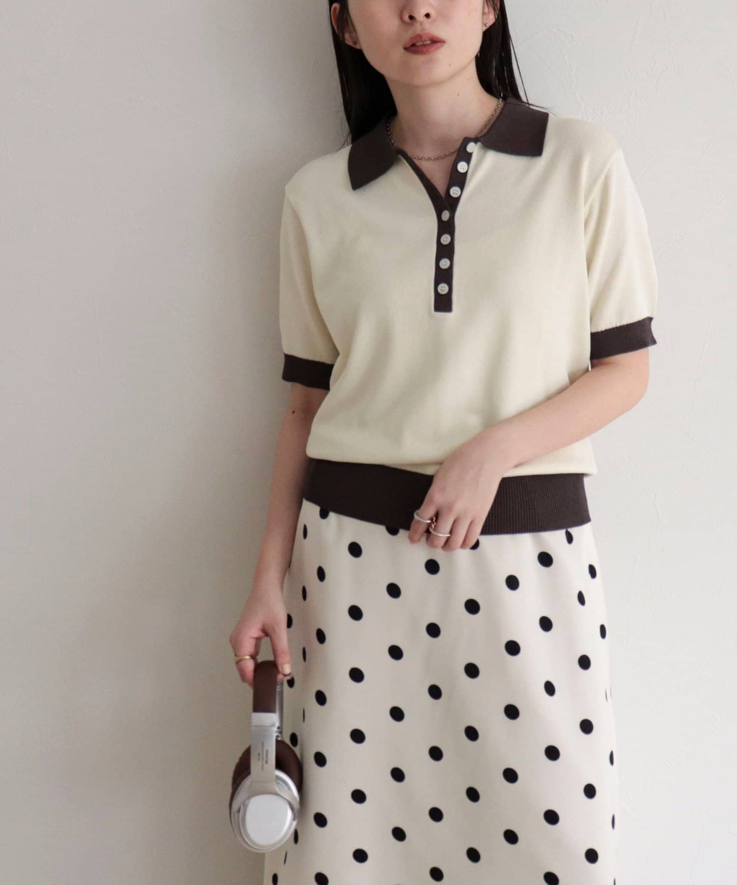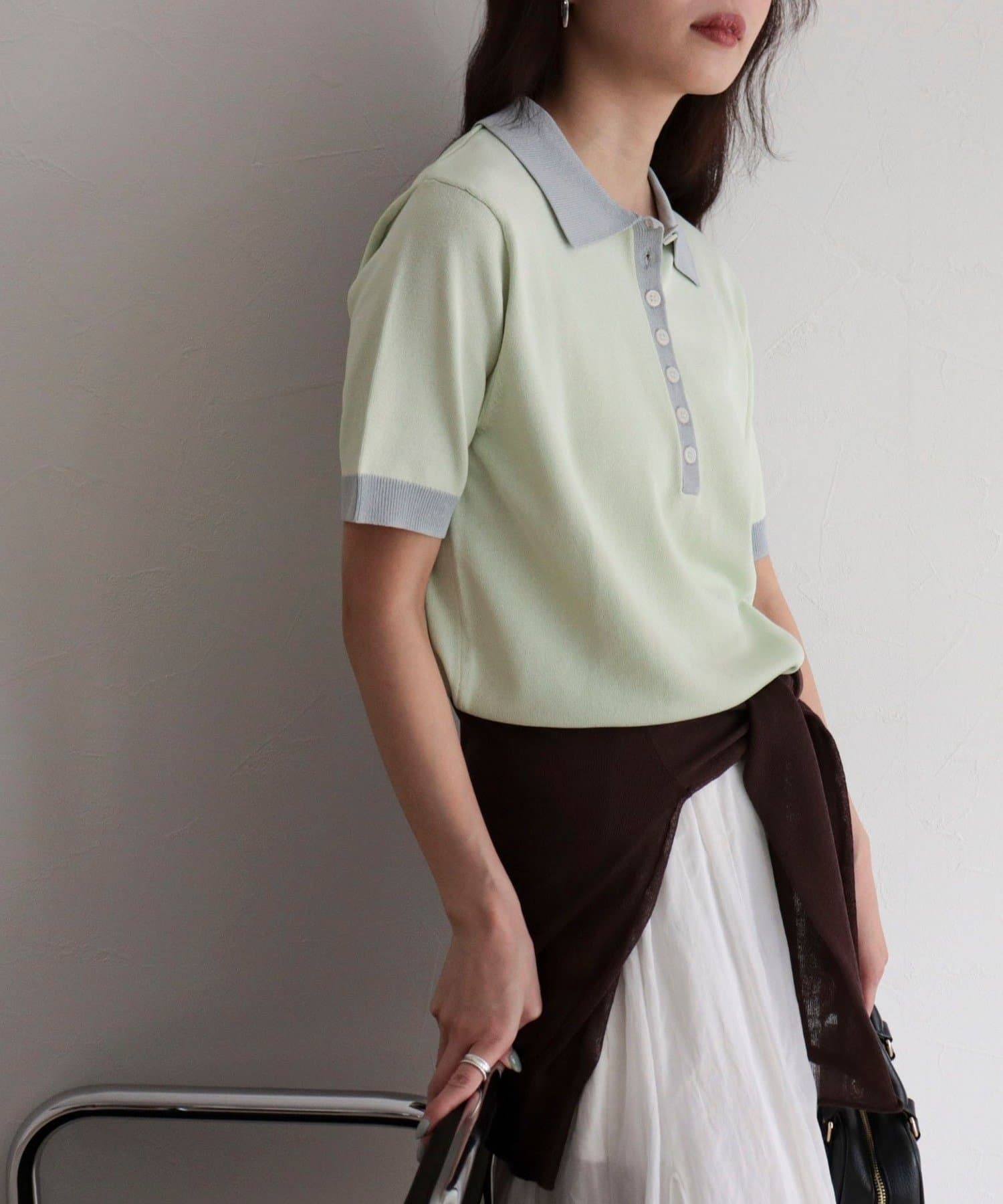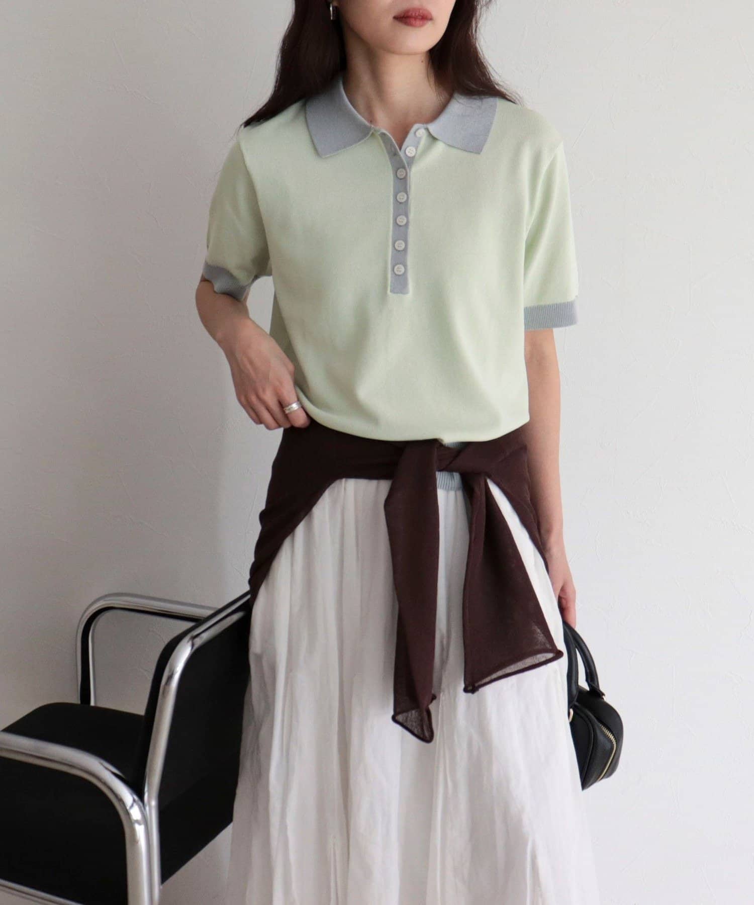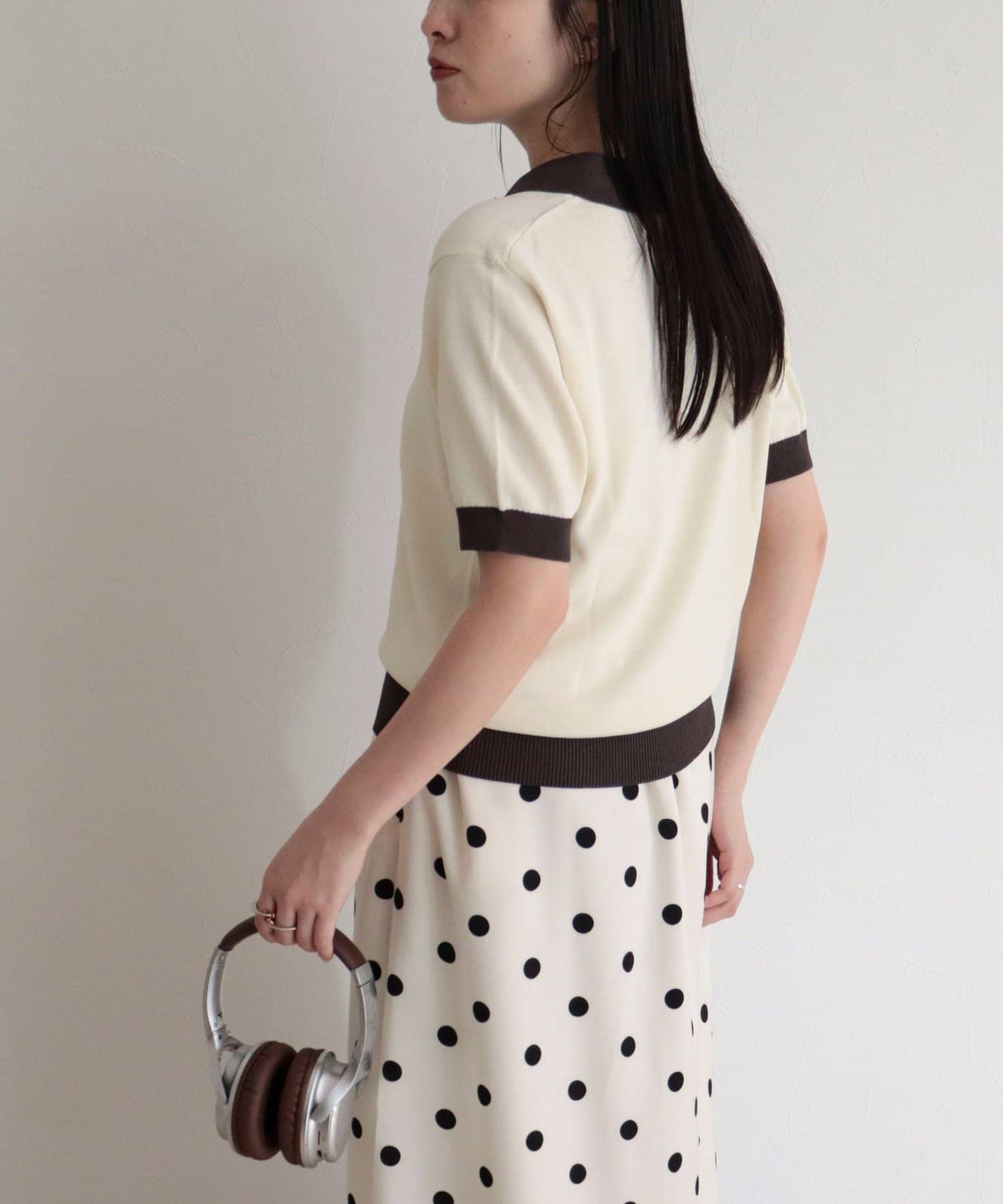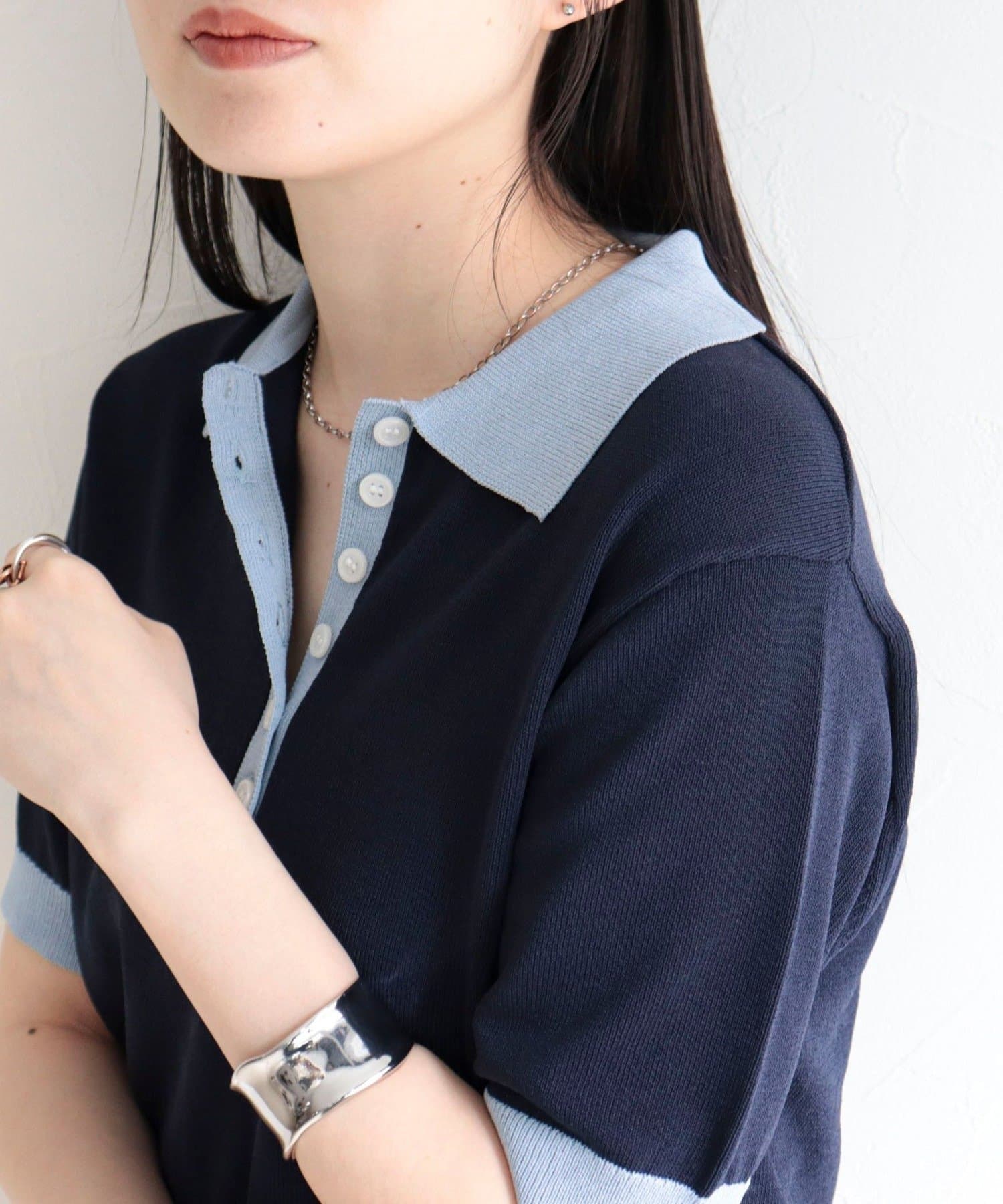 TOP > FREDY & GLOSTER > レディース > トップス > ニット/セーター > 【接触冷感】配色ポロ衿半袖ニットプルオーバー