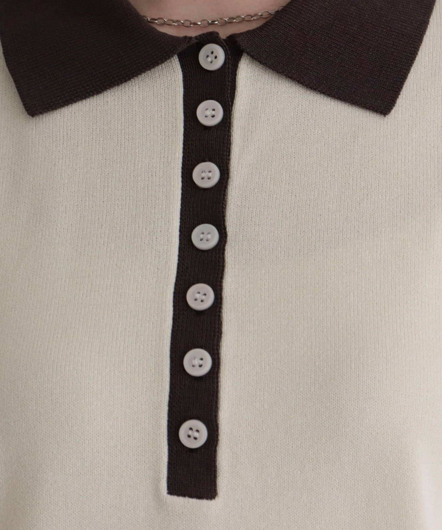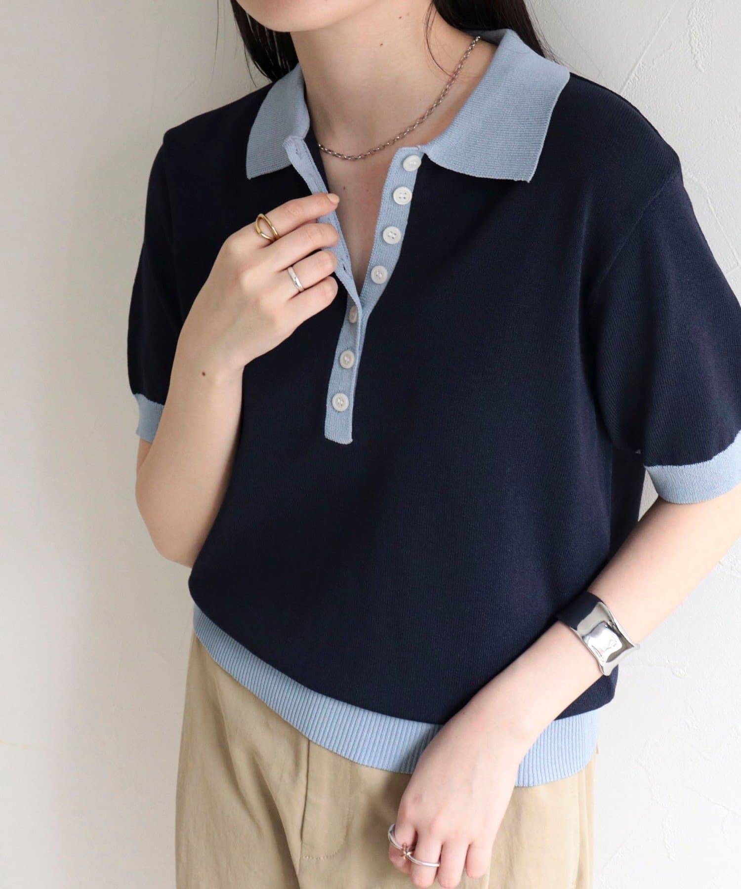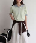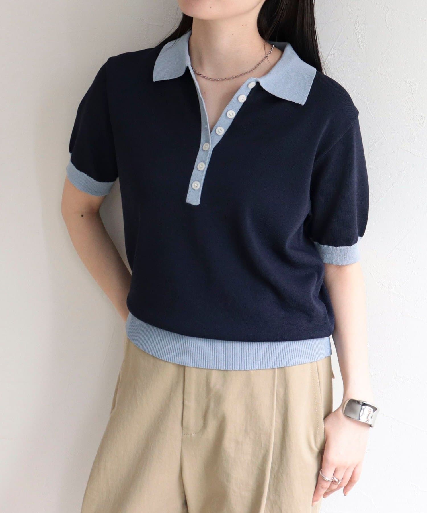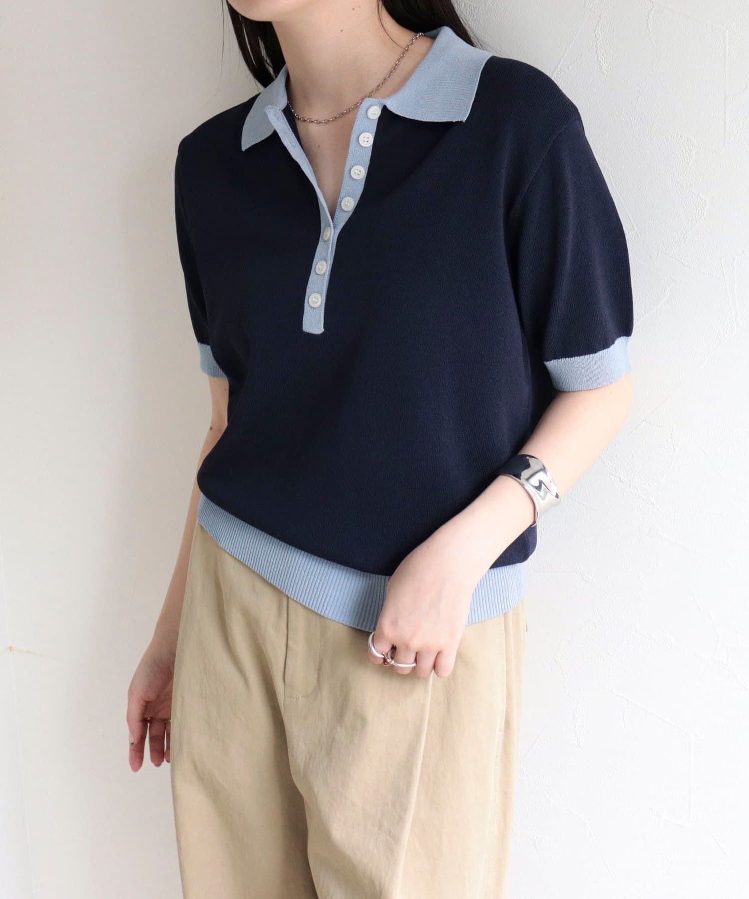 【接触冷感】配色ポロ衿半袖ニットプルオーバー