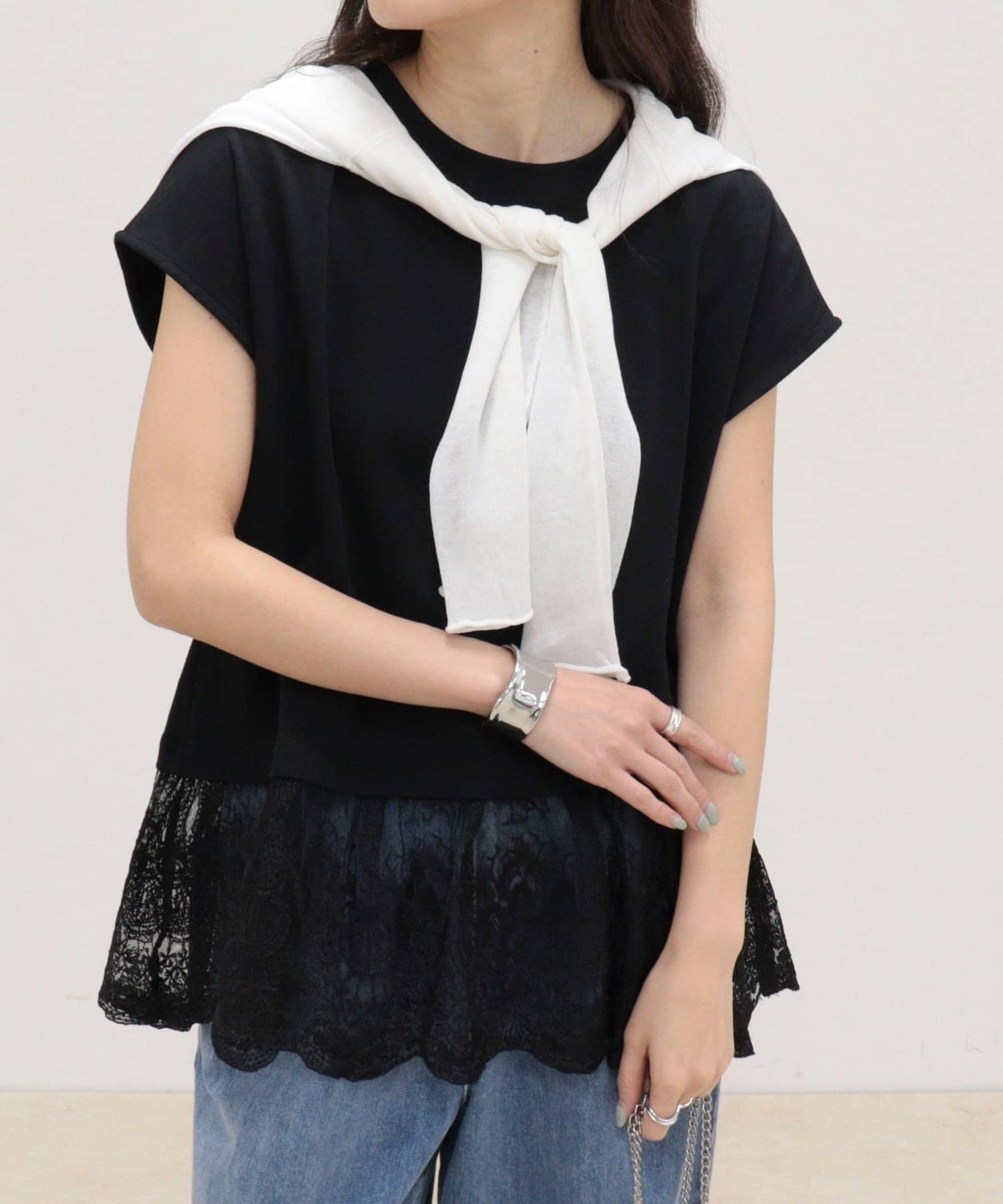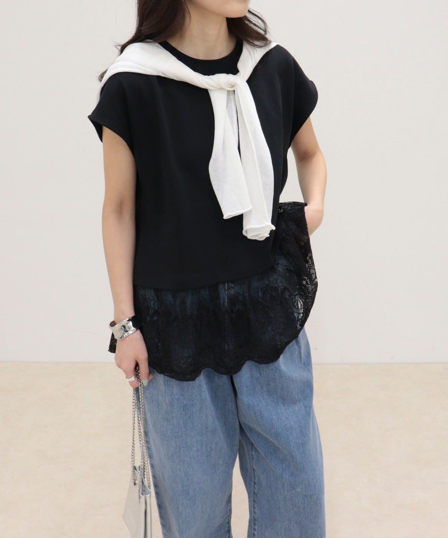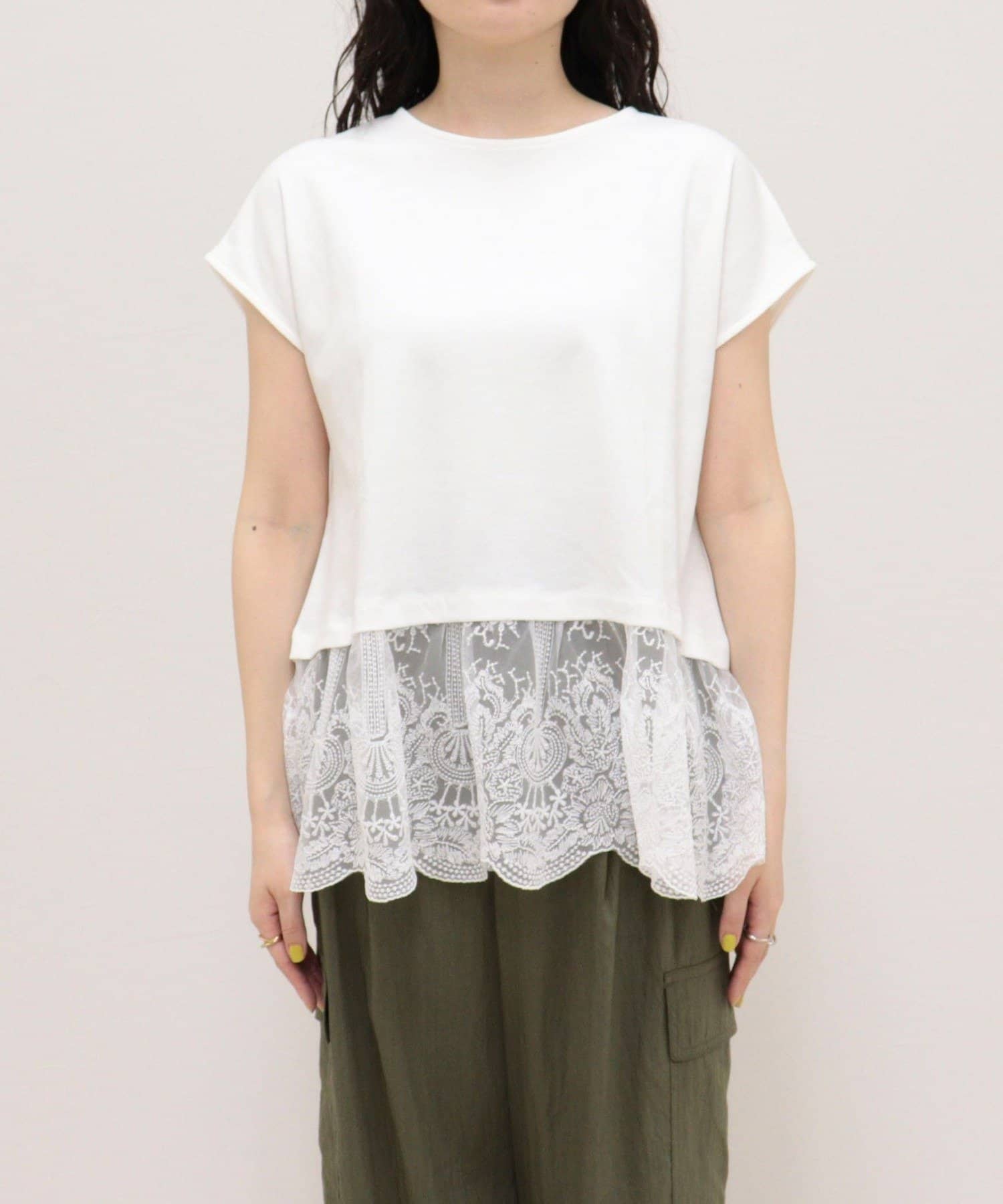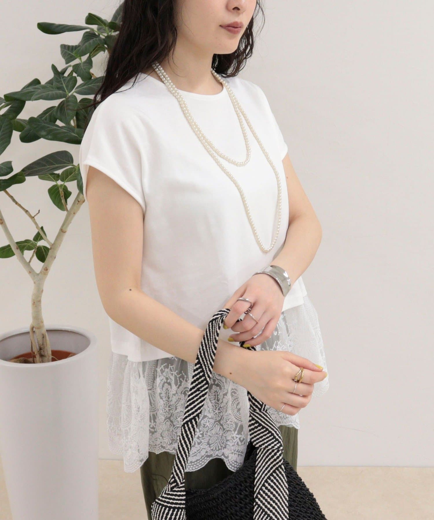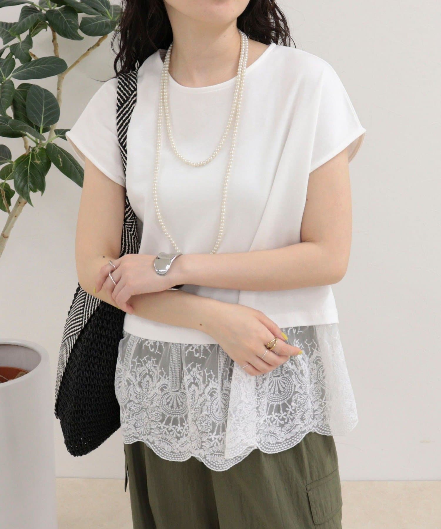 TOP > FREDY & GLOSTER > レディース > トップス > Tシャツ/カットソー > レースドッキングフレンチプルオーバーカットソー
