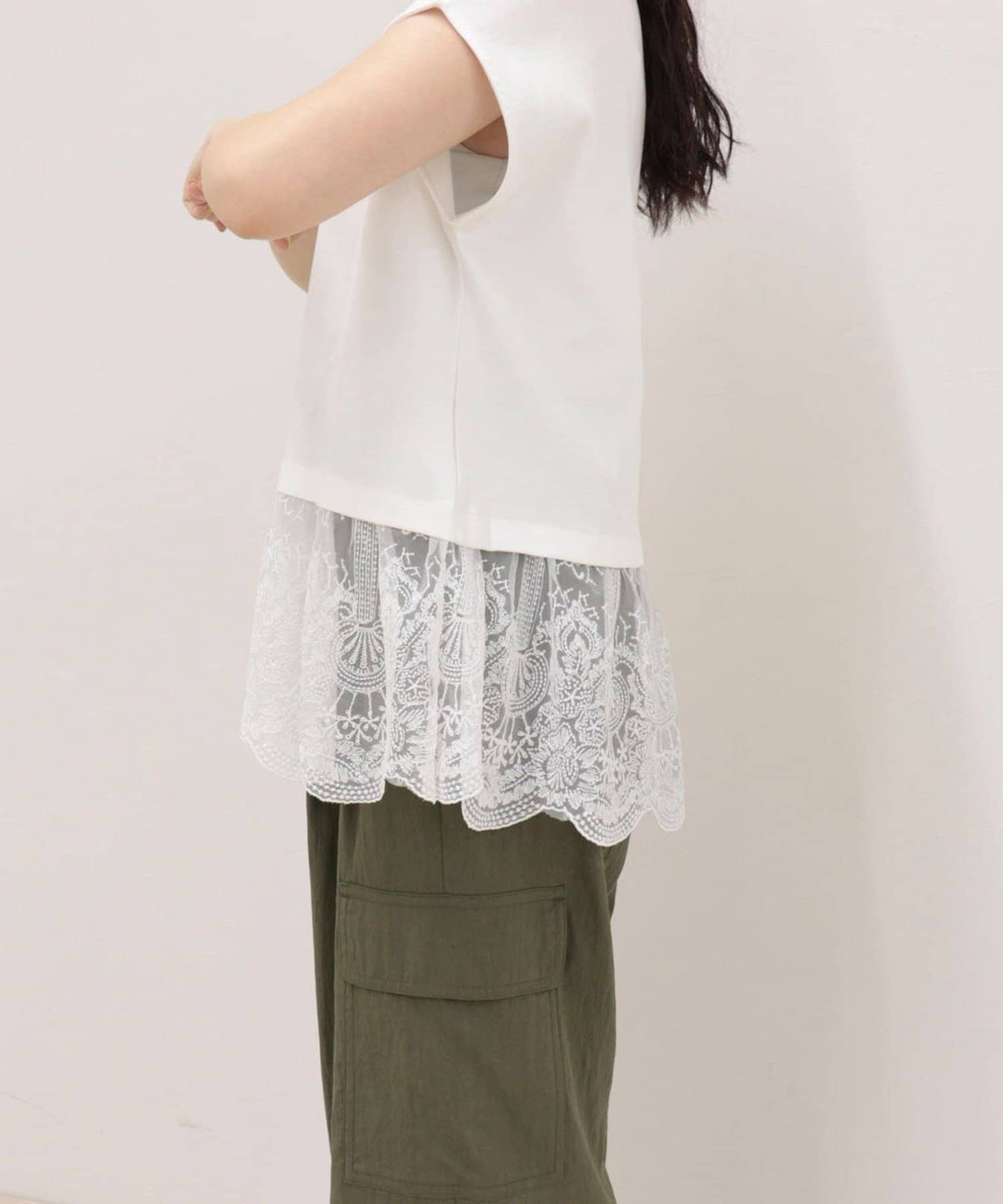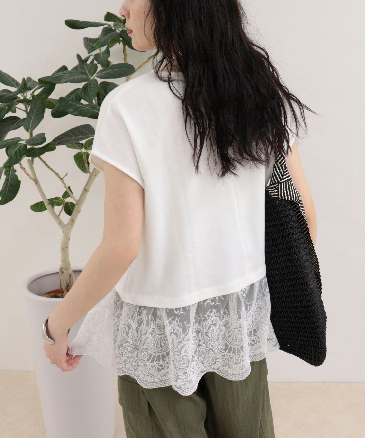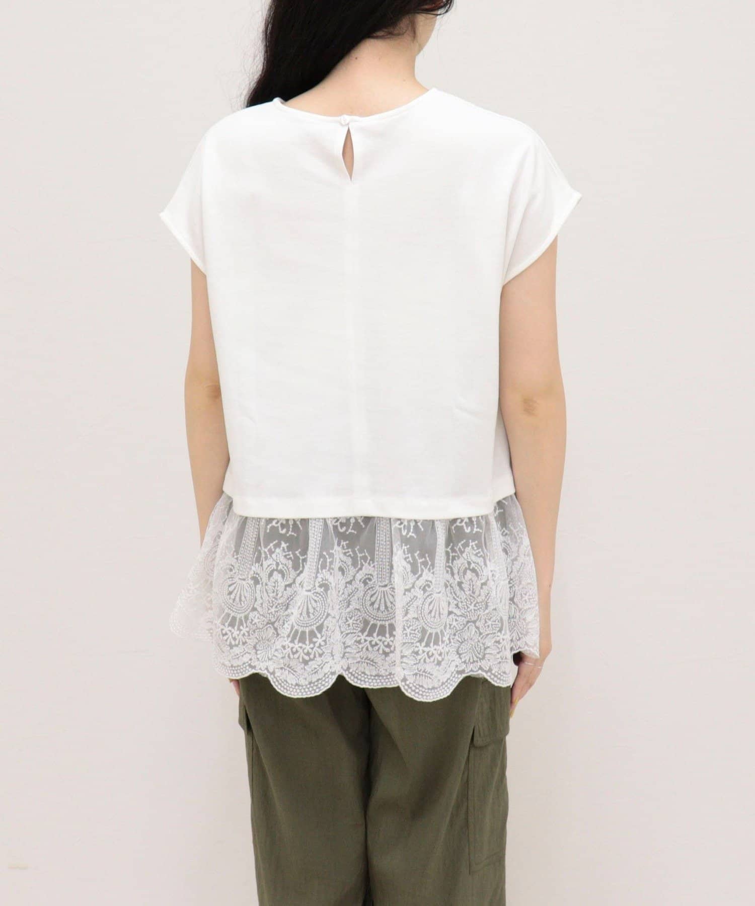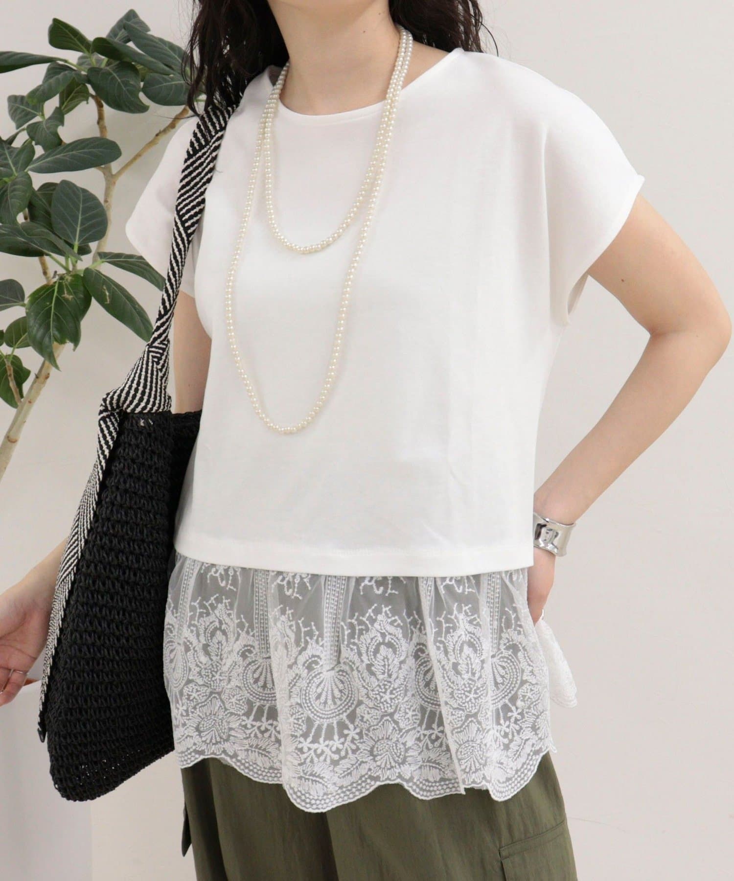 TOP > FREDY & GLOSTER > レディース > トップス > Tシャツ/カットソー > レースドッキングフレンチプルオーバーカットソー