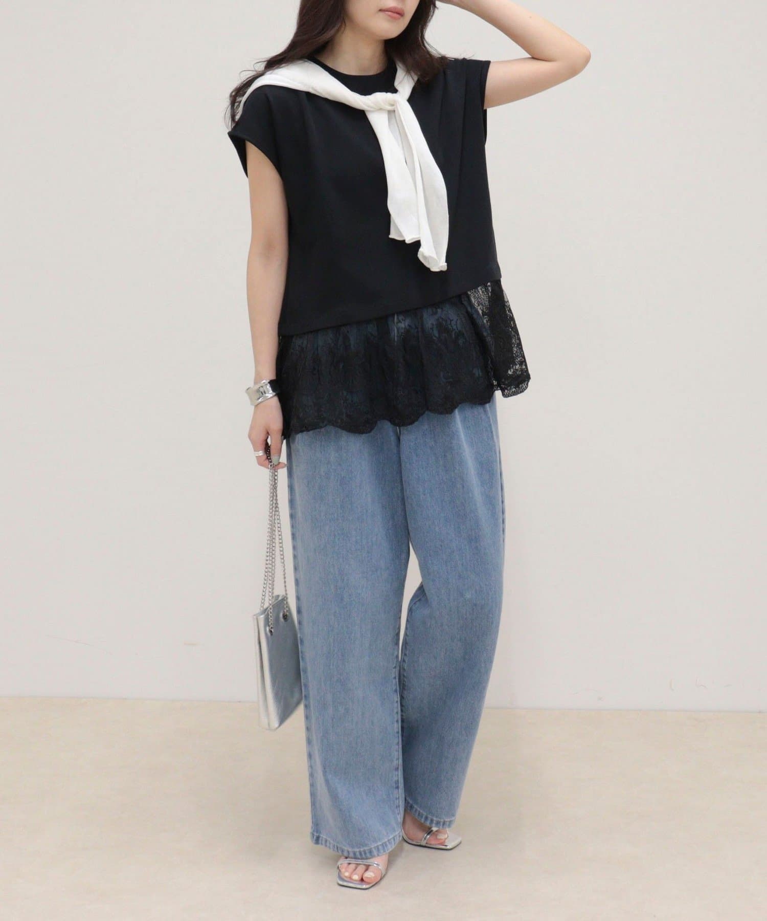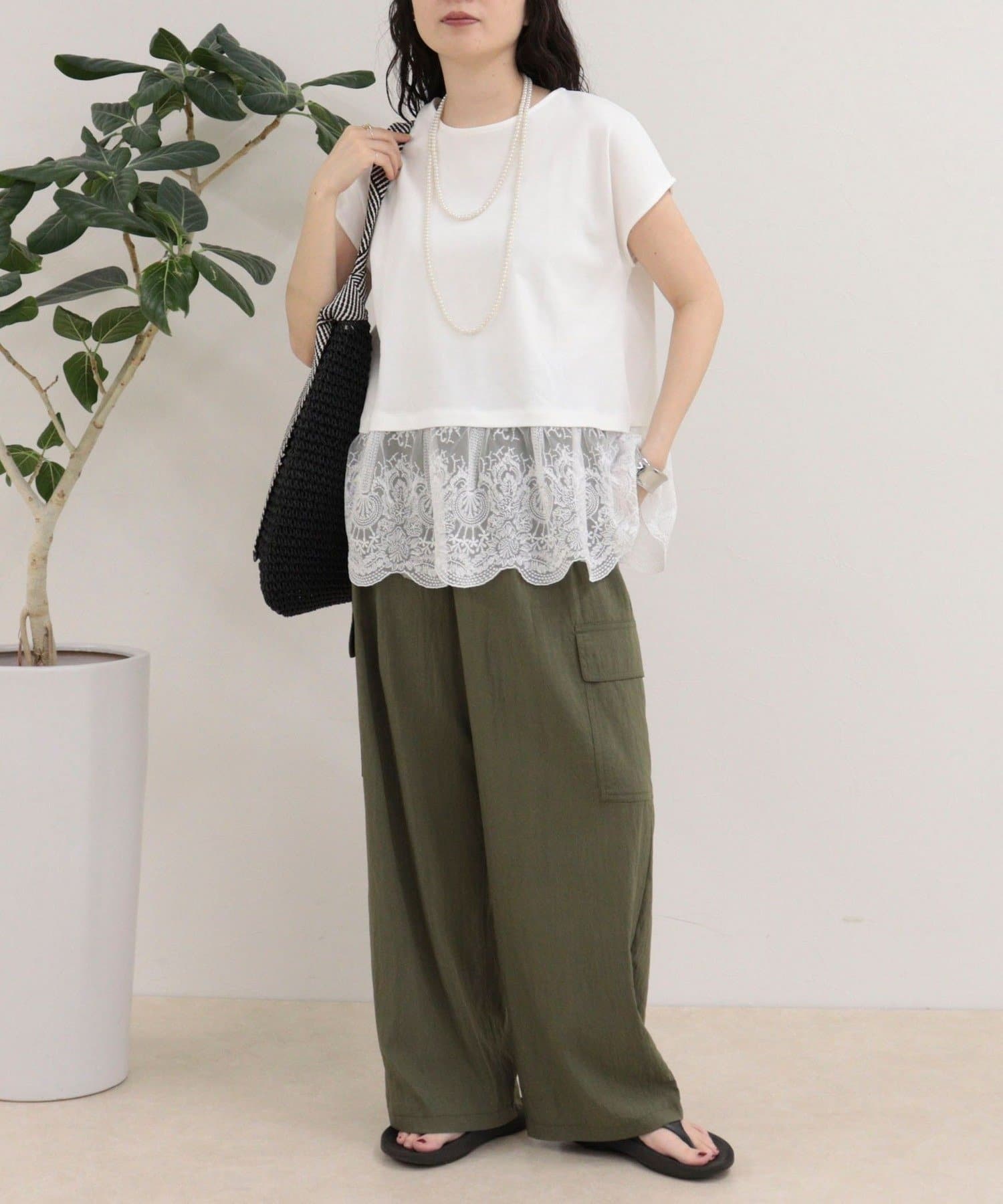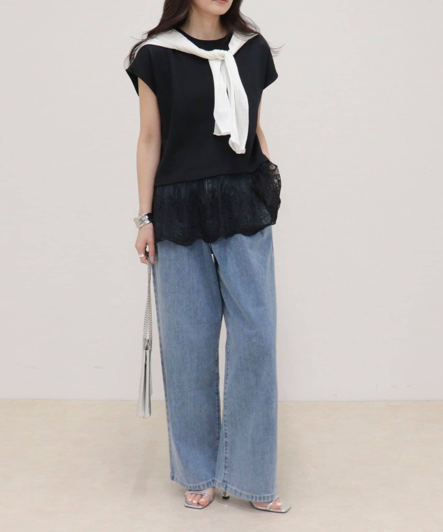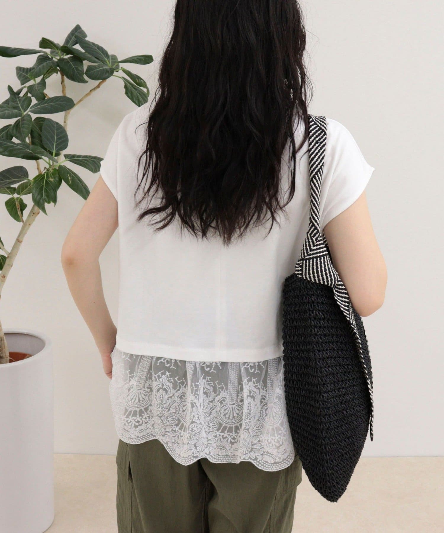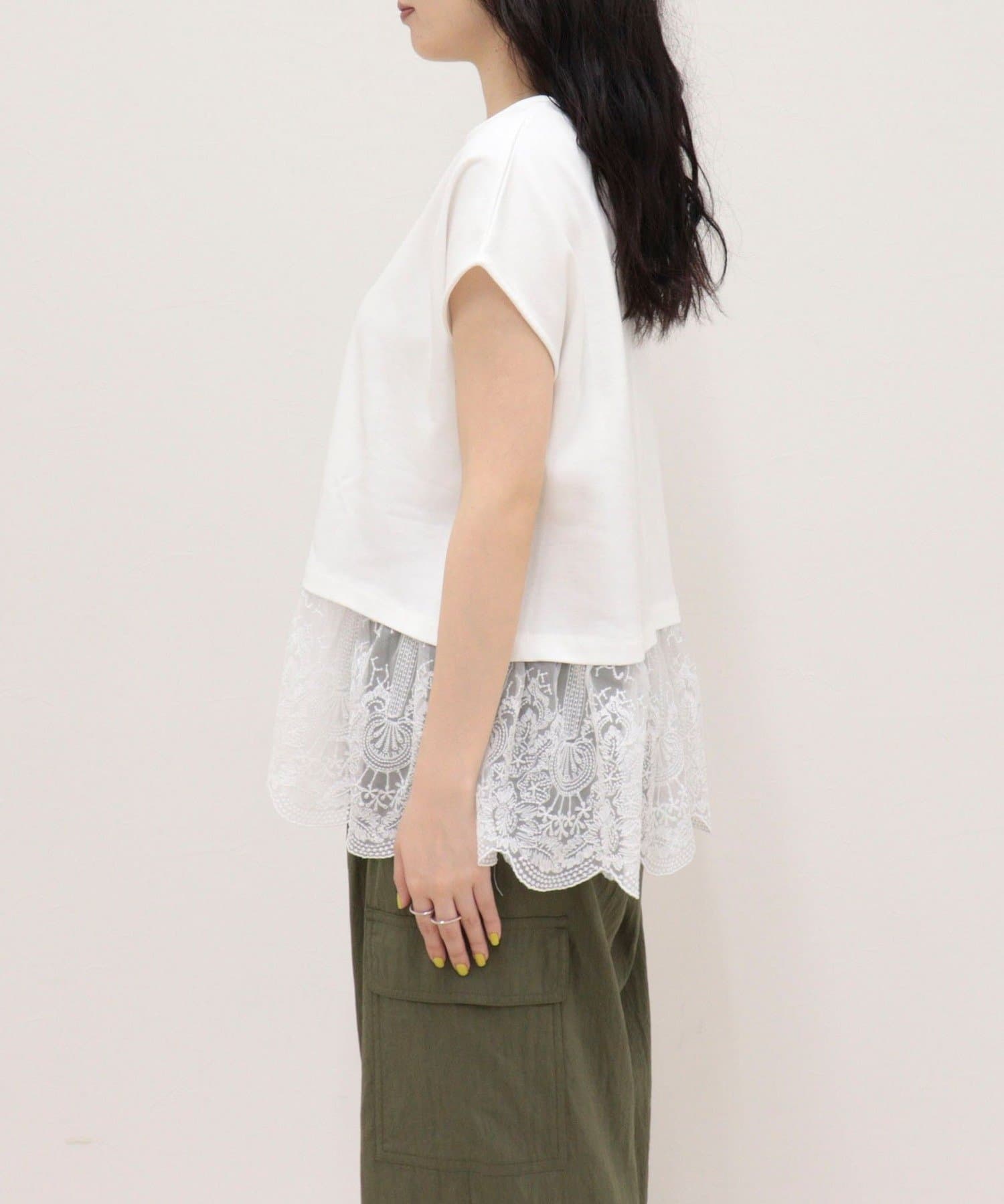 TOP > FREDY & GLOSTER > レディース > トップス > Tシャツ/カットソー > レースドッキングフレンチプルオーバーカットソー