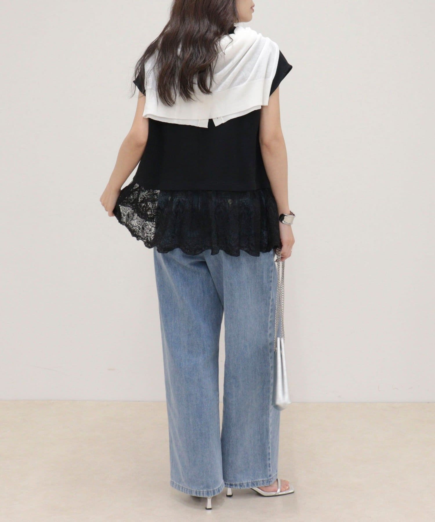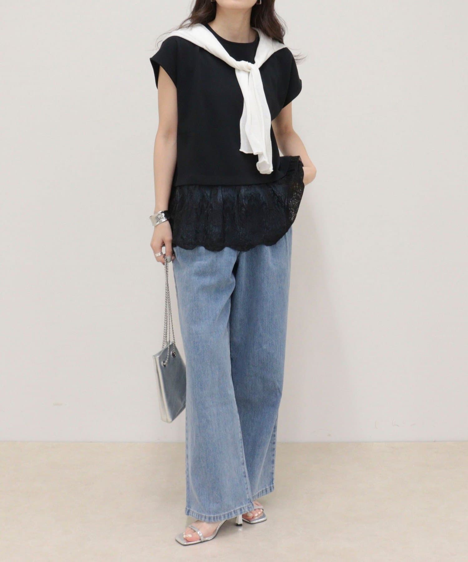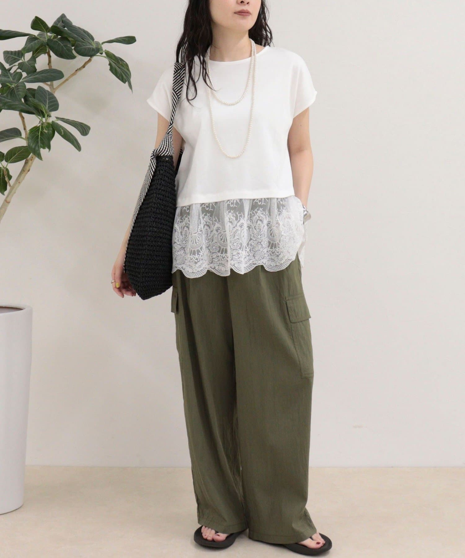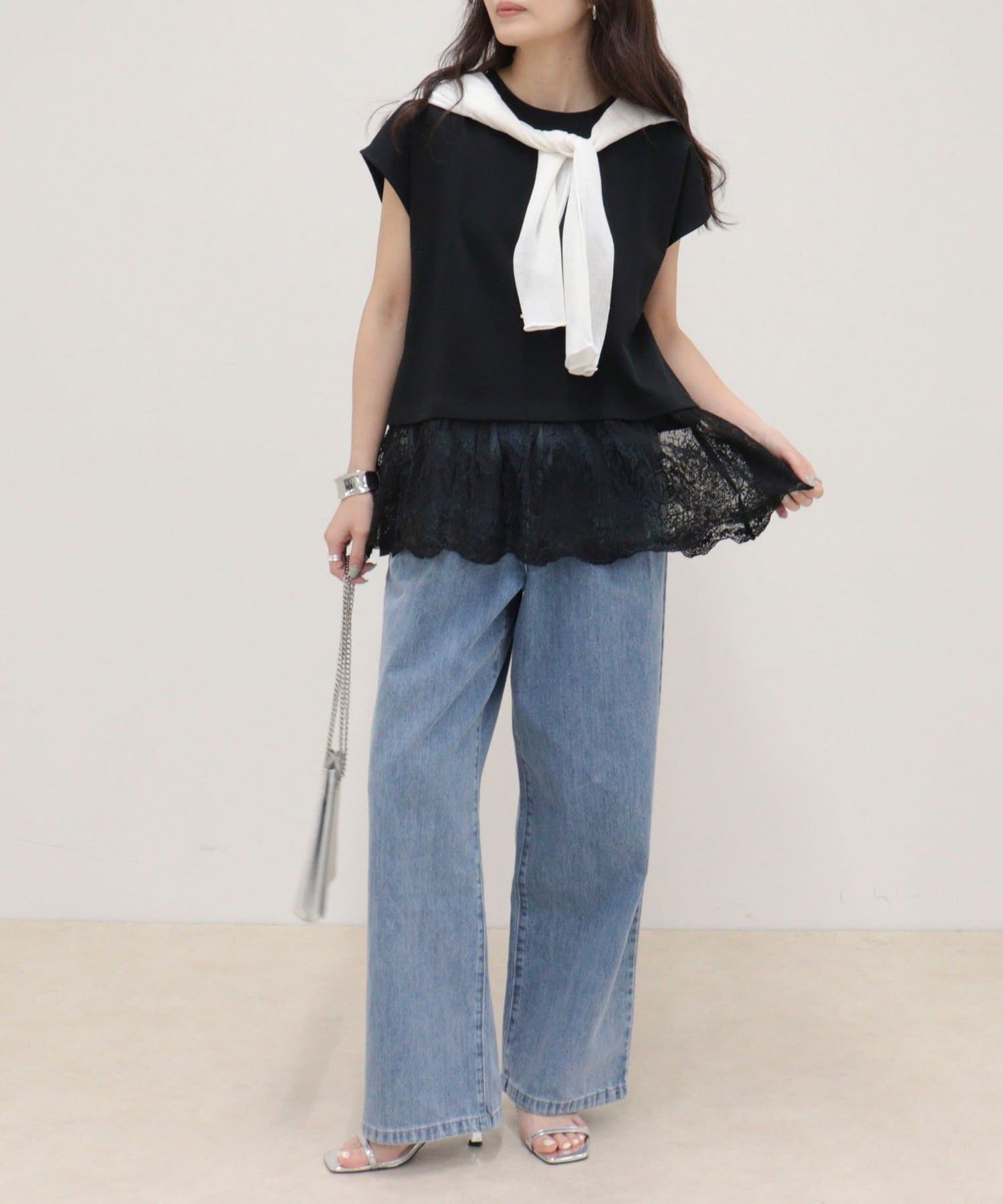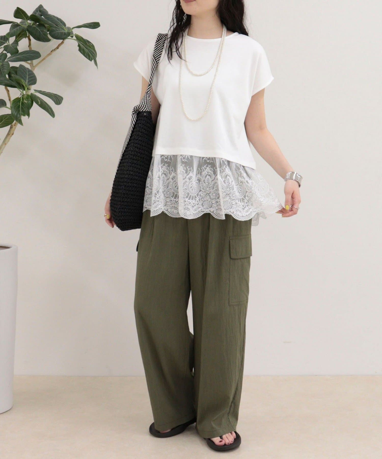 TOP > FREDY & GLOSTER > レディース > トップス > Tシャツ/カットソー > レースドッキングフレンチプルオーバーカットソー
