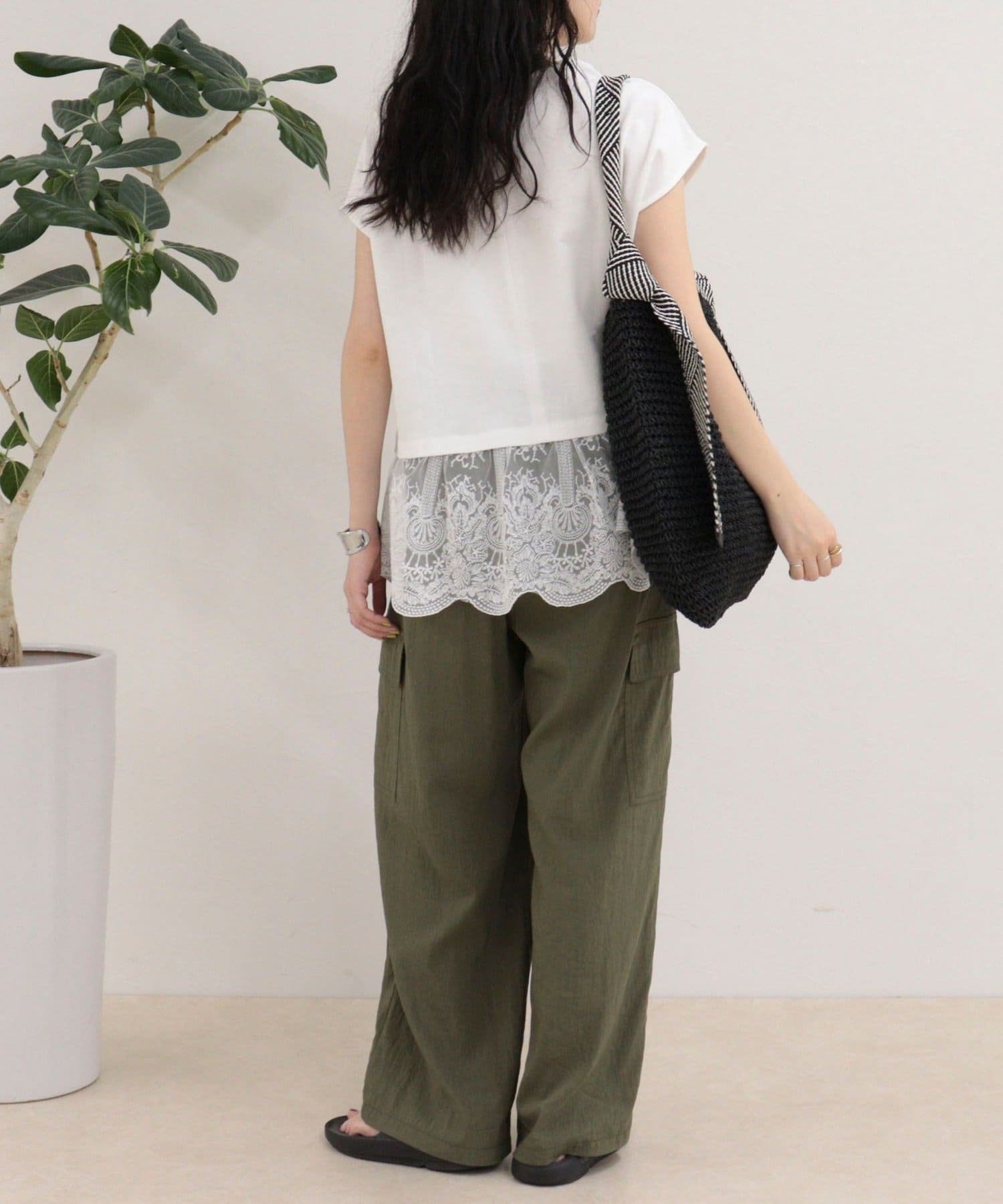 ・サラッとした素材感ながら、透け感が気になりにくい程よい肉感の生地を使用