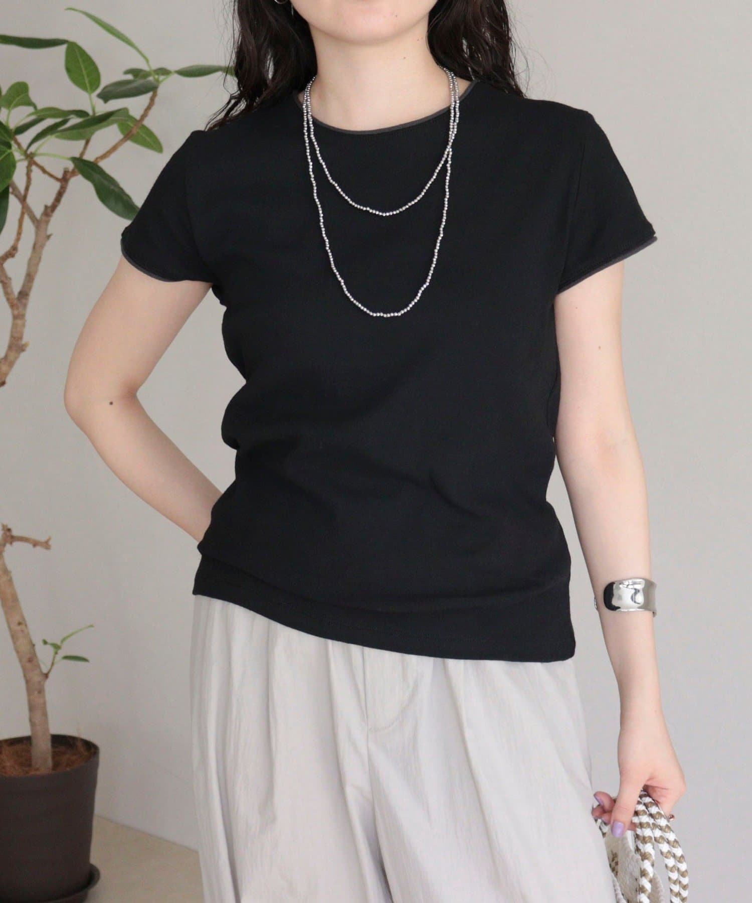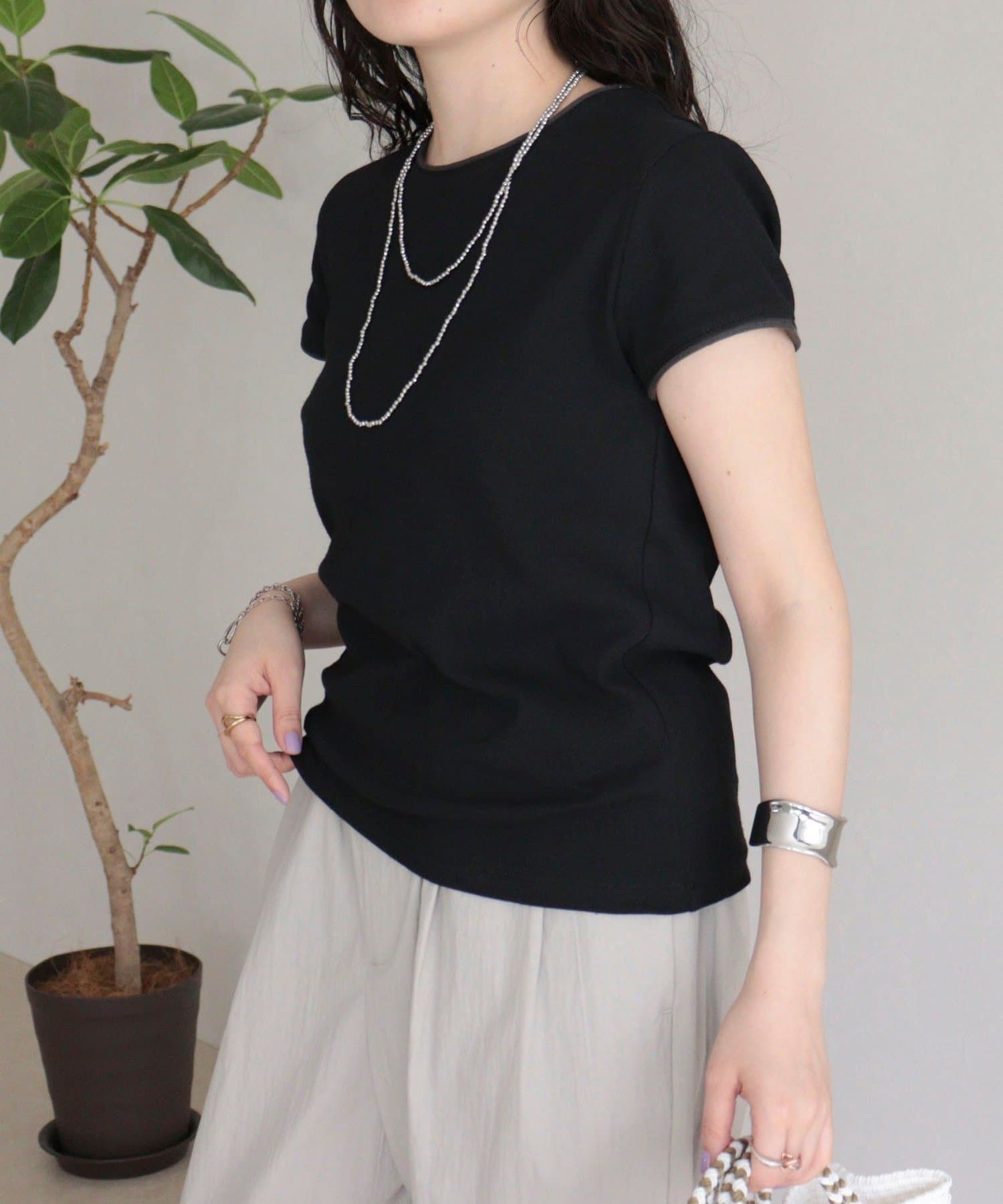 夏の着回しに重宝するリンガー配色Tシャツ