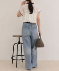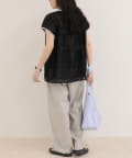 ・肩まわりをやさしくカバーするフレンチスリーブと程よくゆとりのあるシルエットでリラックス感のある着心地も魅力