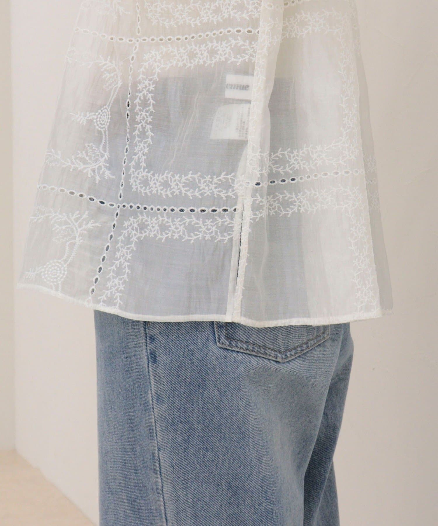 • FREDY & GLOSTER(フレディ アンド グロスター) 刺しゅうレースフレンチスリーブブラウス